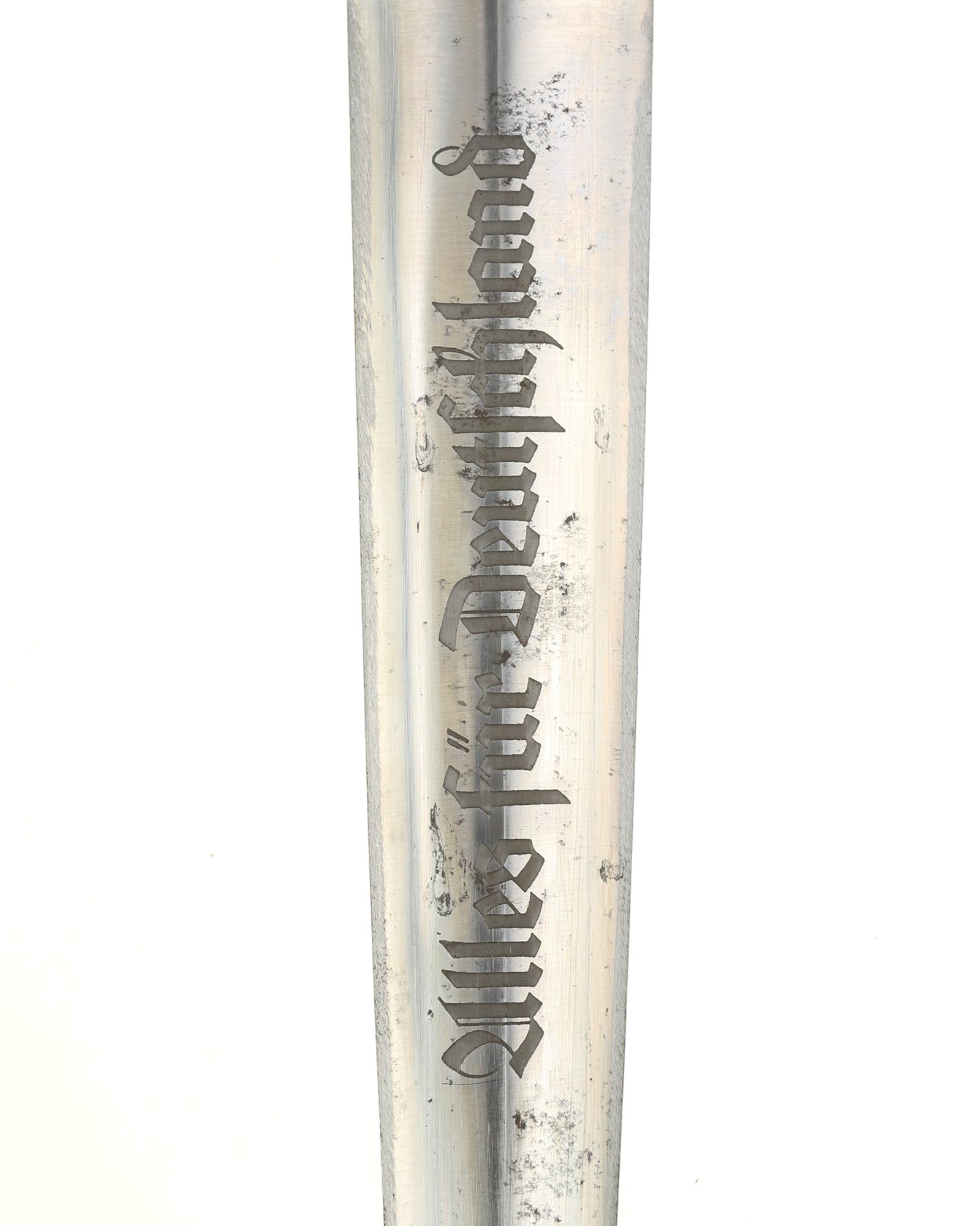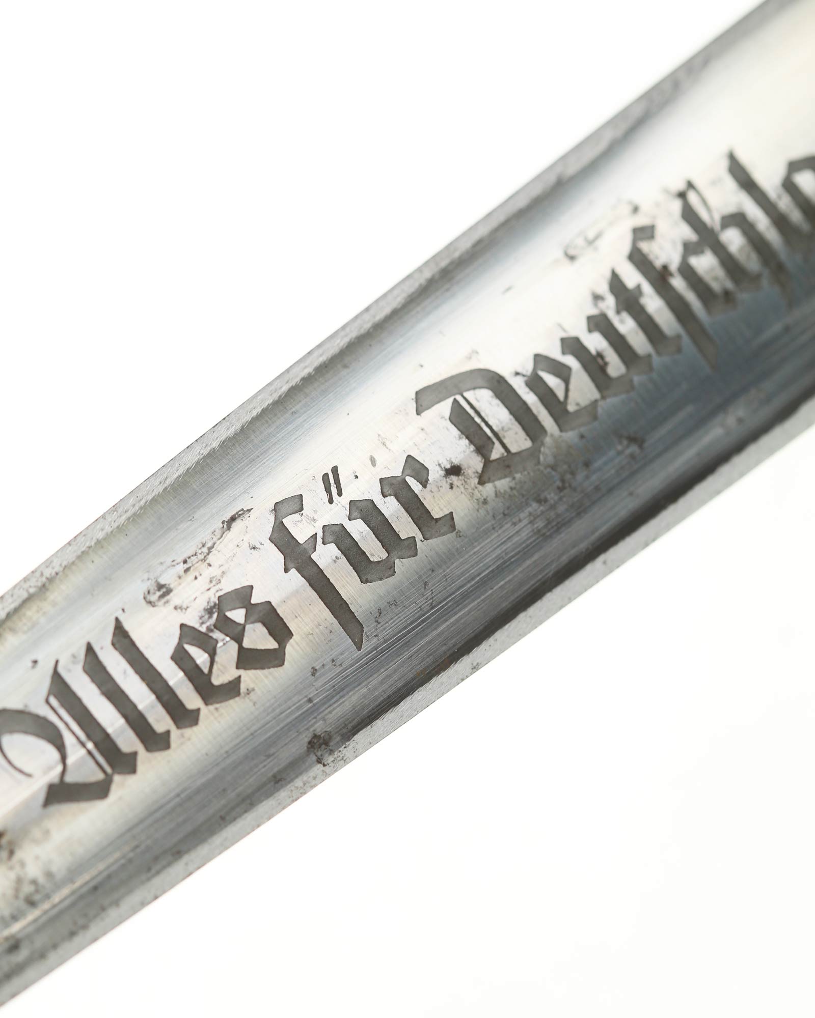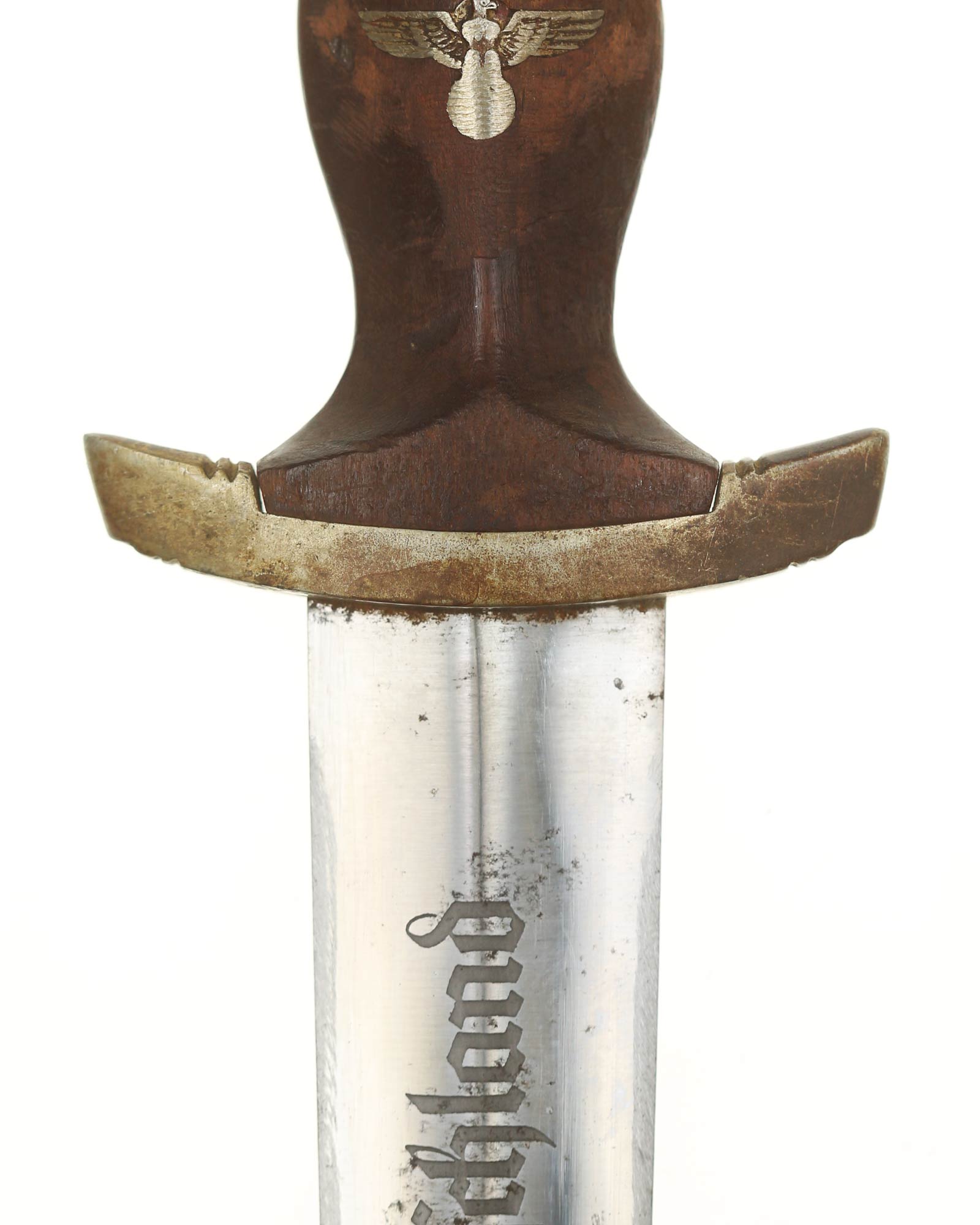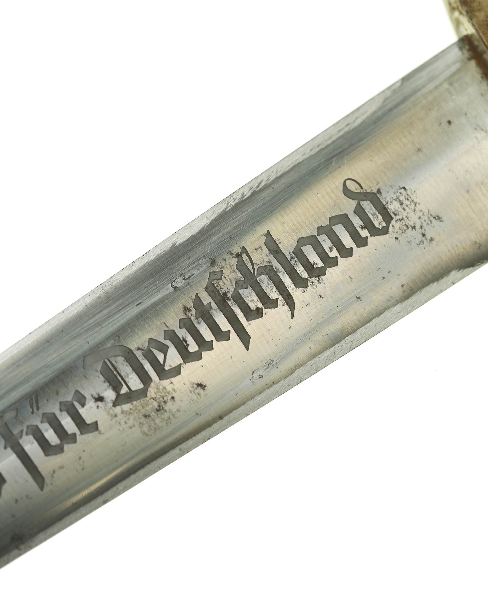 Клинок: Клинок кинжала прямой, стальной, двулезвийный, кинжального типа, с выраженным центральным ребром. На одной стороне клинка методом травления нанесен девиз СА «Всё для Германии» (Alles für Deutchland). Клинок на оборотной стороне у основания стоит клеймо производителя Friedrich Dick Esslingen (Дик Фридрих Есслинген).