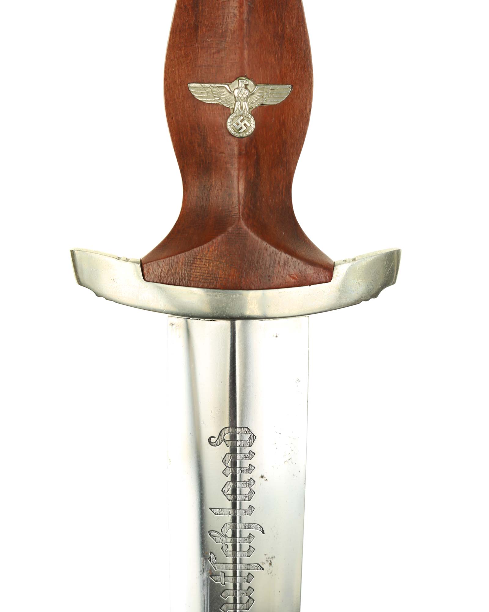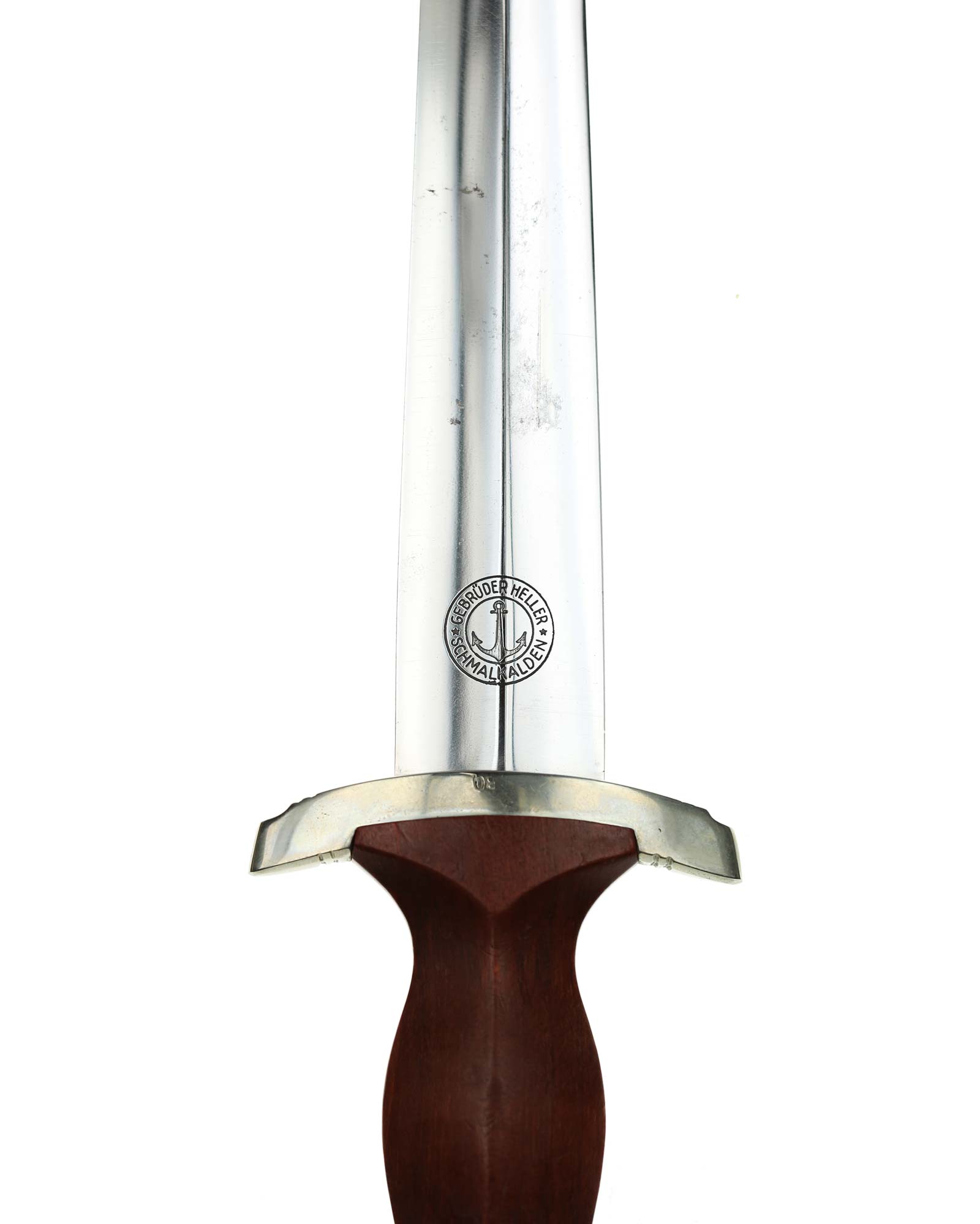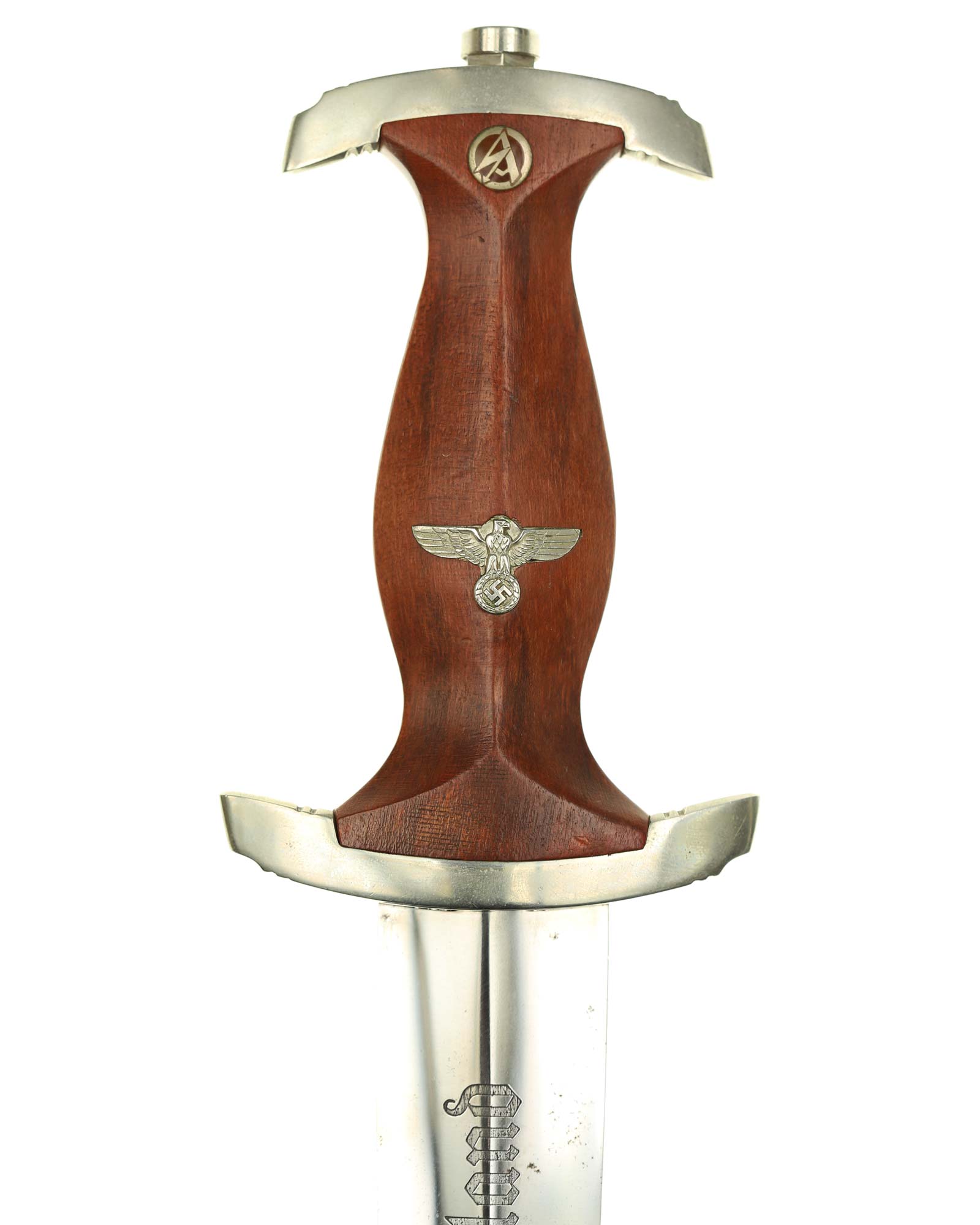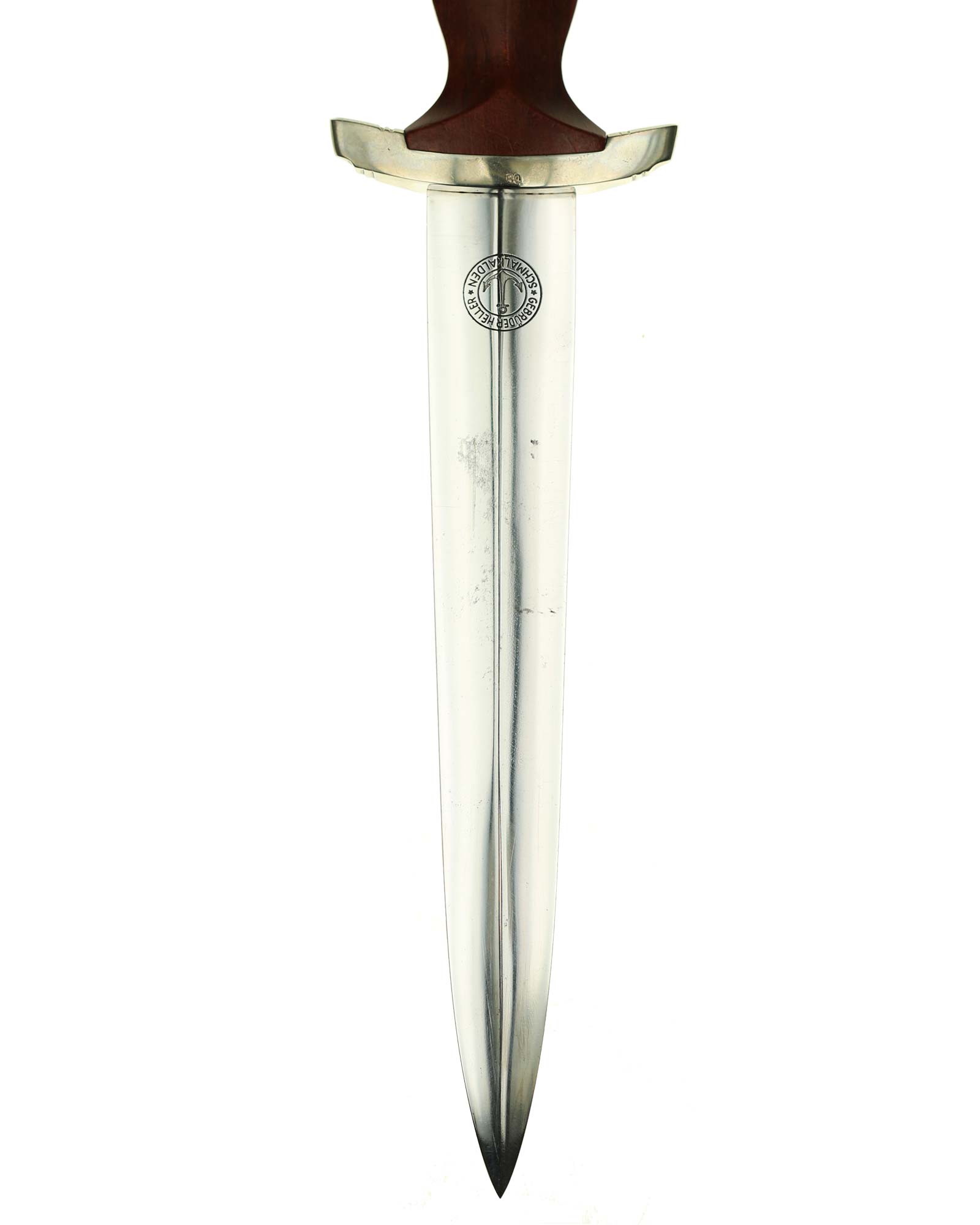 Клинок: Клинок кинжала прямой, стальной, двулезвийный, кинжального типа, с выраженным центральным ребром. На одной стороне клинка методом травления нанесен девиз СА «Всё для Германии» (Alles für Deutschland). Клинок на оборотной стороне у основания стоит клеймо производителя Братья Хеллер Шмалькальден (Geb. Heller Schmalkalden).