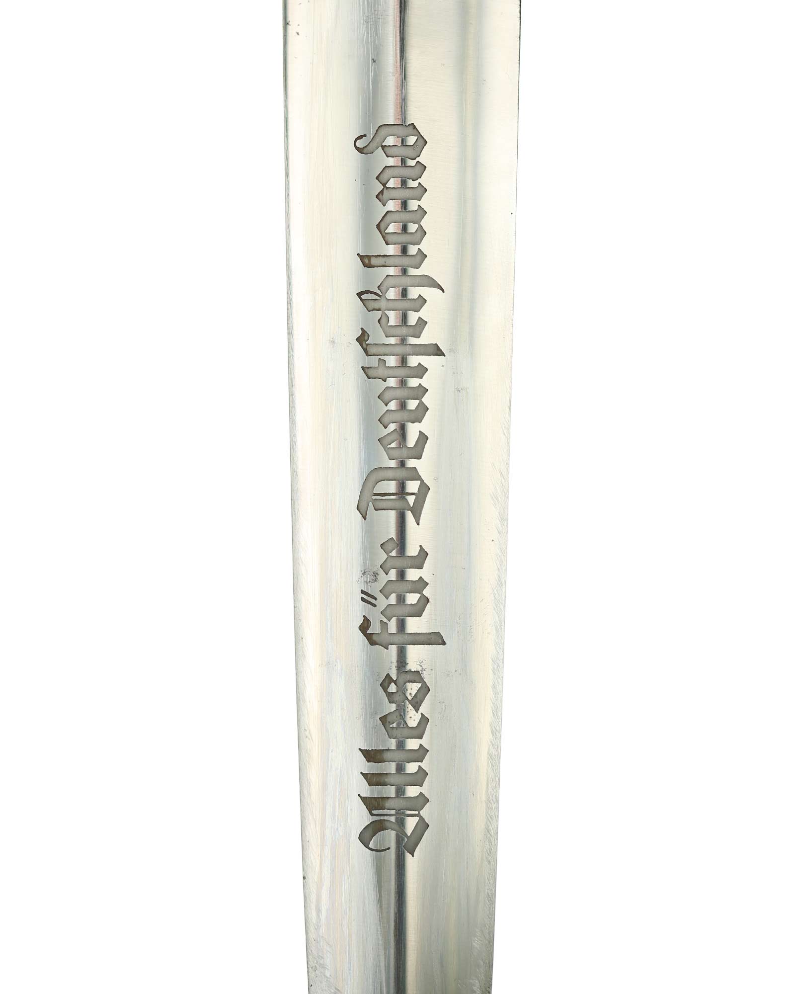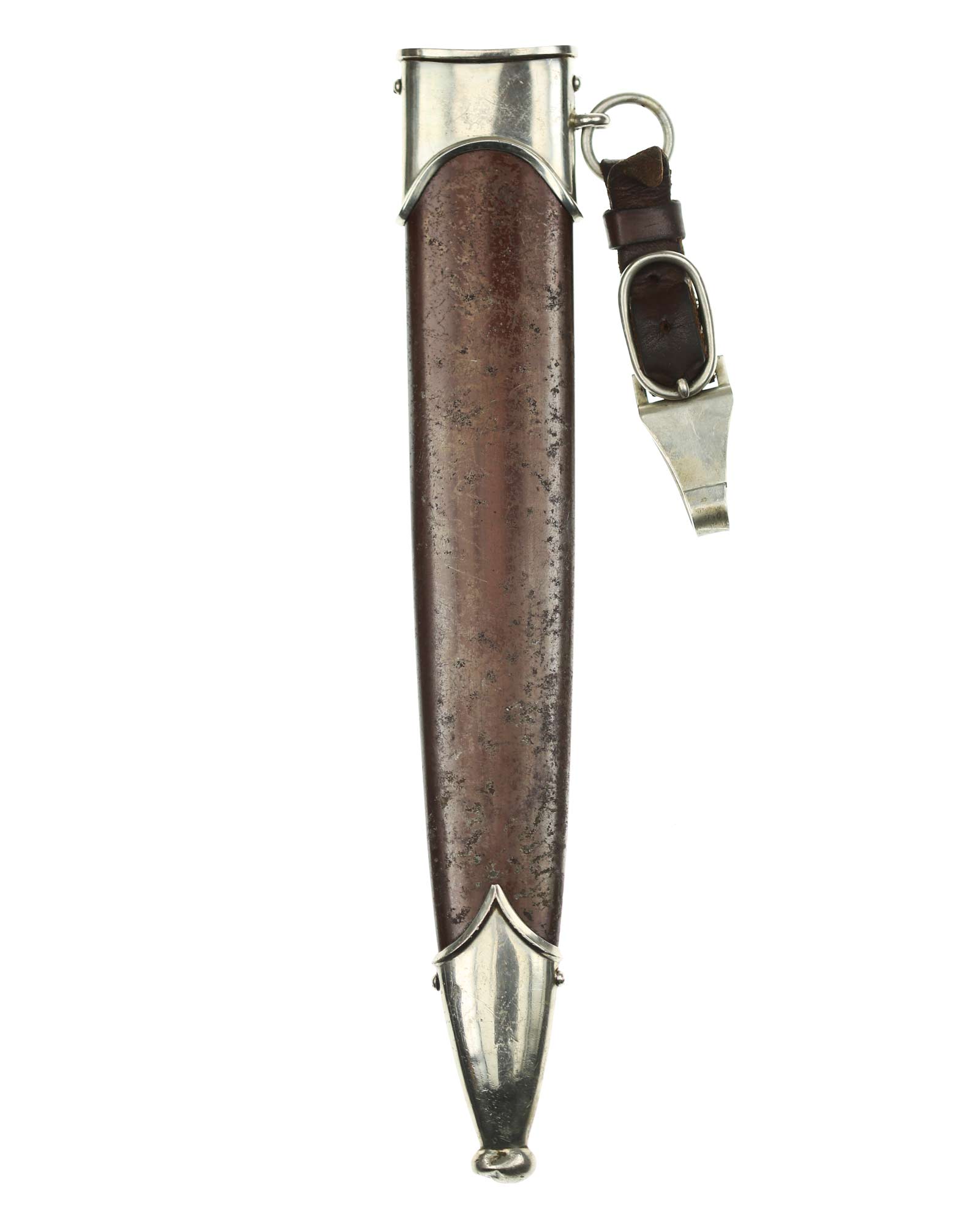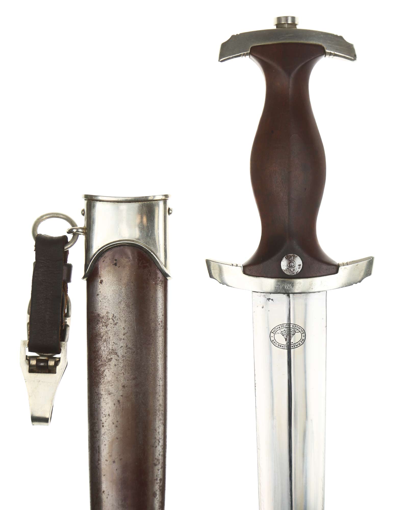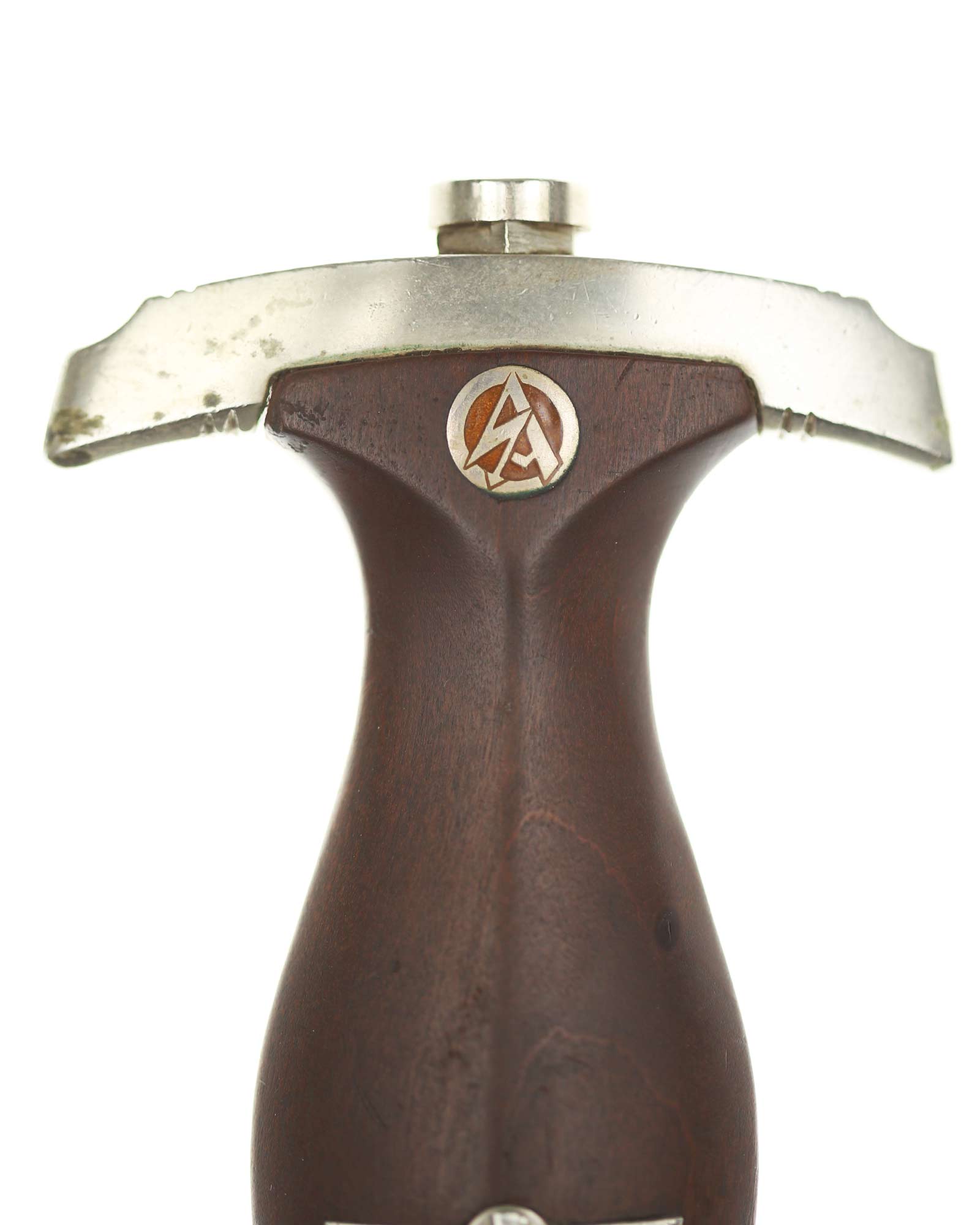 Клинок: Клинок кинжала прямой, стальной, двулезвийный, кинжального типа, с выраженным центральным ребром. На одной стороне клинка методом травления нанесен девиз СА «Всё для Германии» (Alles für Deutchland). Клинок на оборотной стороне у основания стоит клеймо производителя Герман Шнайдер Золинген (Hermann Schneider Solingen).