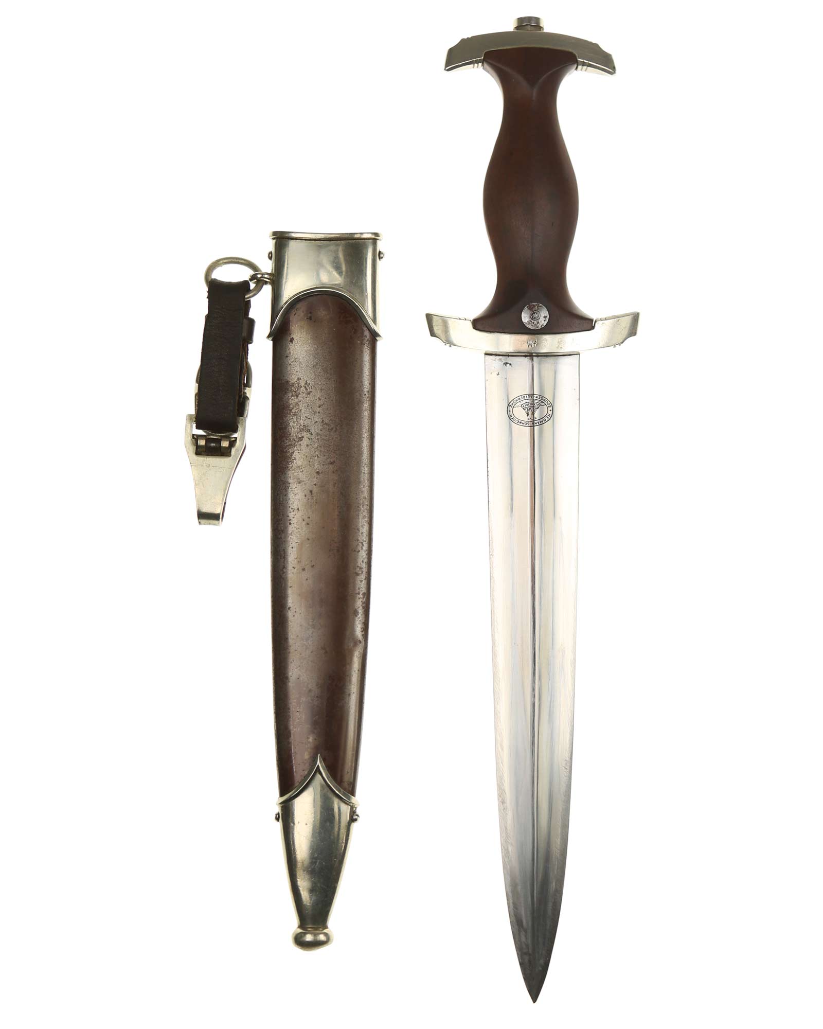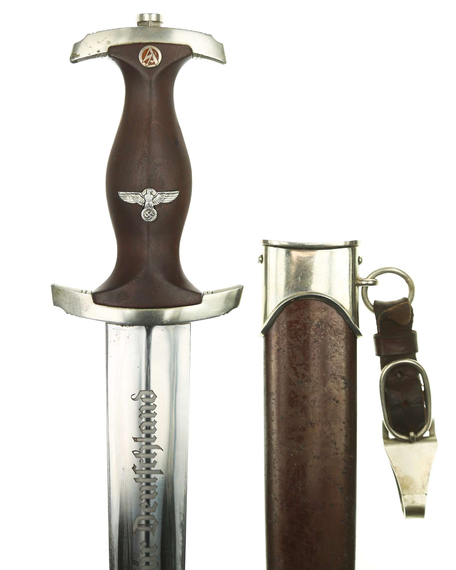 Ранний кинжал штурмовых отрядов СА образца 1933 года. Ранний период производства, 1933-1935 годы. Производитель фирма Герман Шнайдер Золинген. Длина в ножнах 37,2 см.