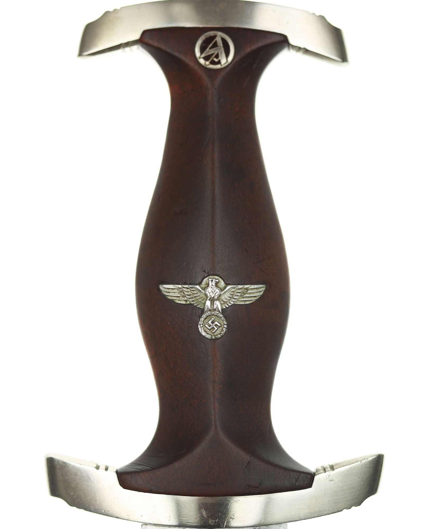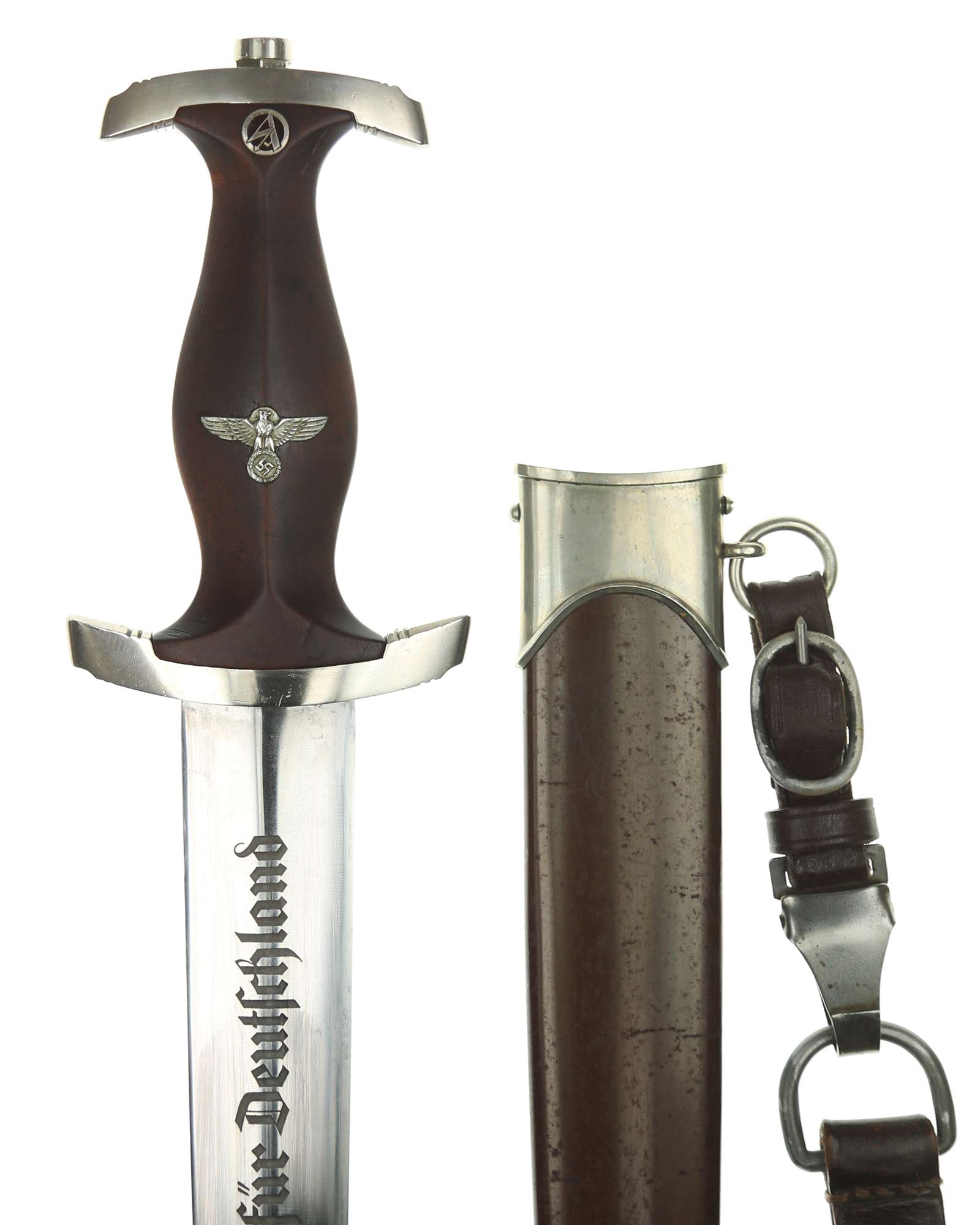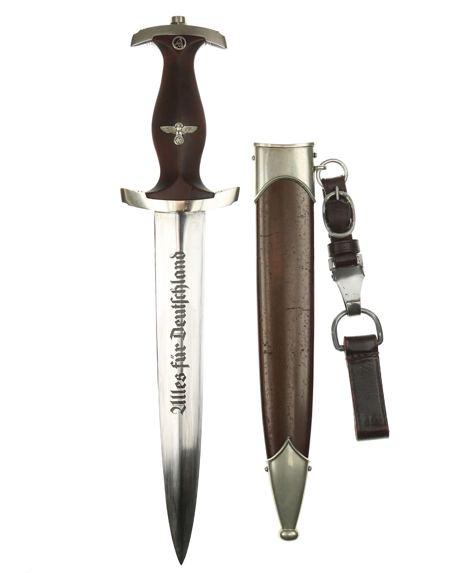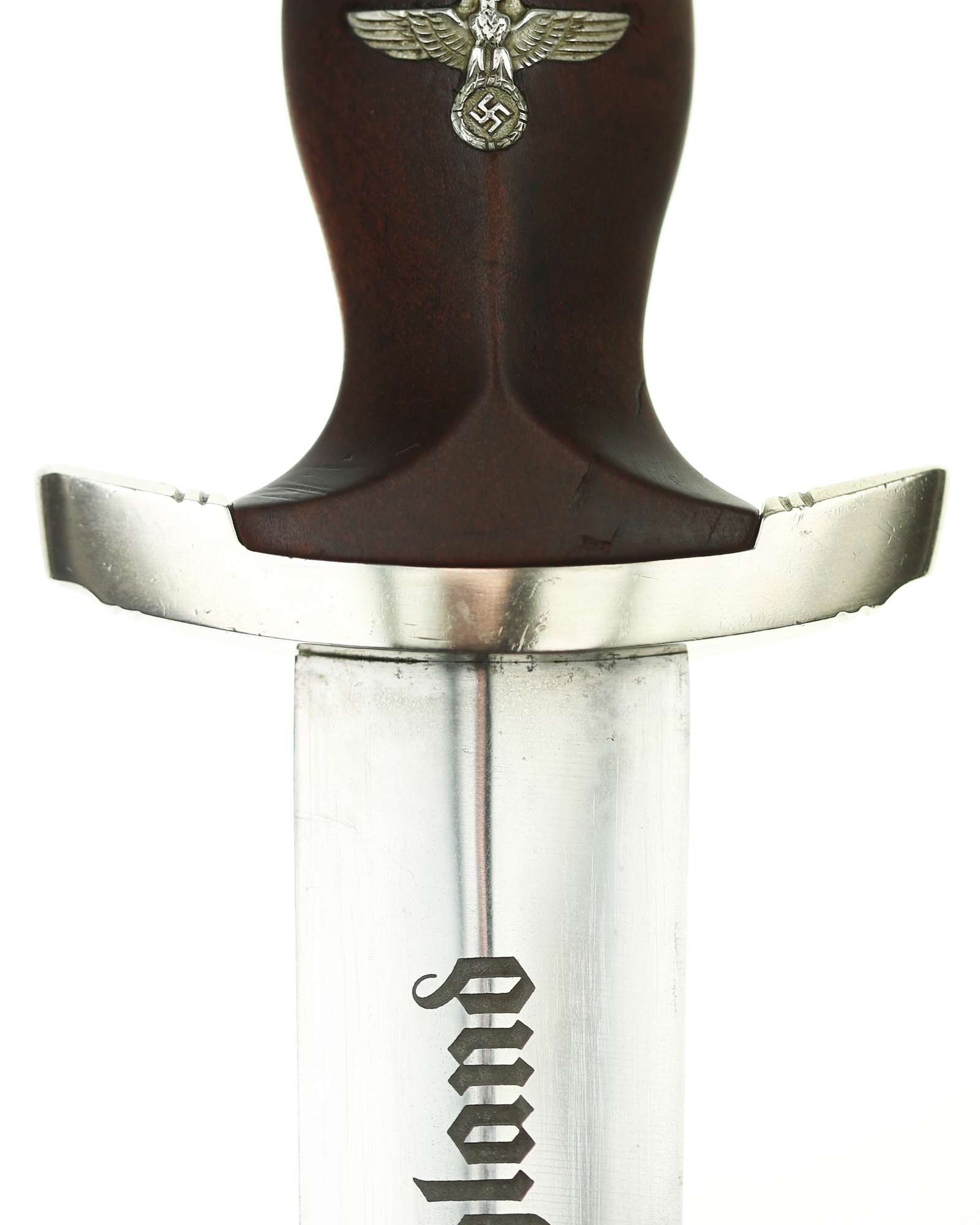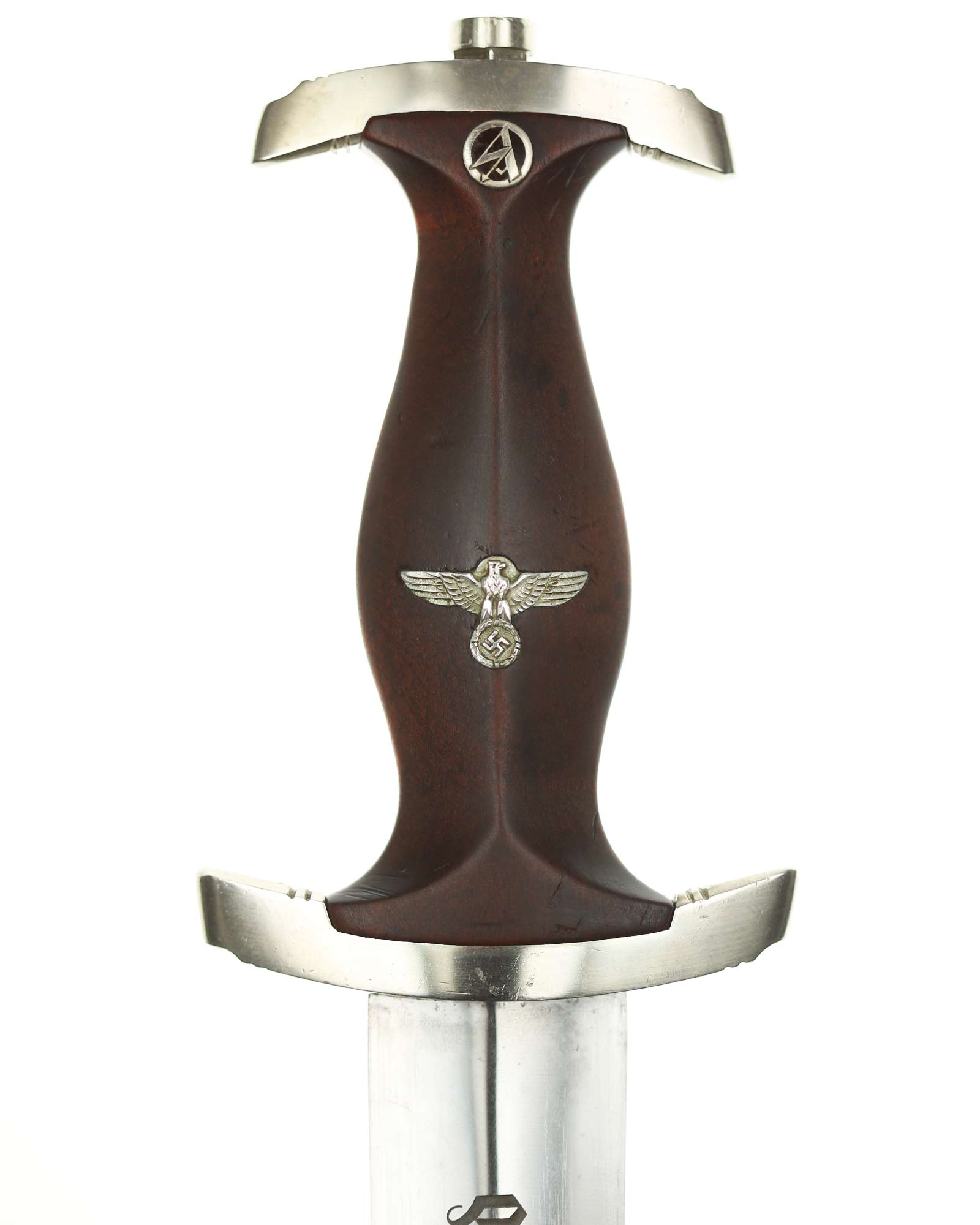 Клинок: Клинок кинжала прямой, стальной, двулезвийный, кинжального типа, с выраженным центральным ребром. На одной стороне клинка методом травления нанесен девиз СА «Всё для Германии» (Alles für Deutchland). Клинок на оборотной стороне у основания стоит клеймо производителя ТИГЕР Золинген (TIGER Solingen).
