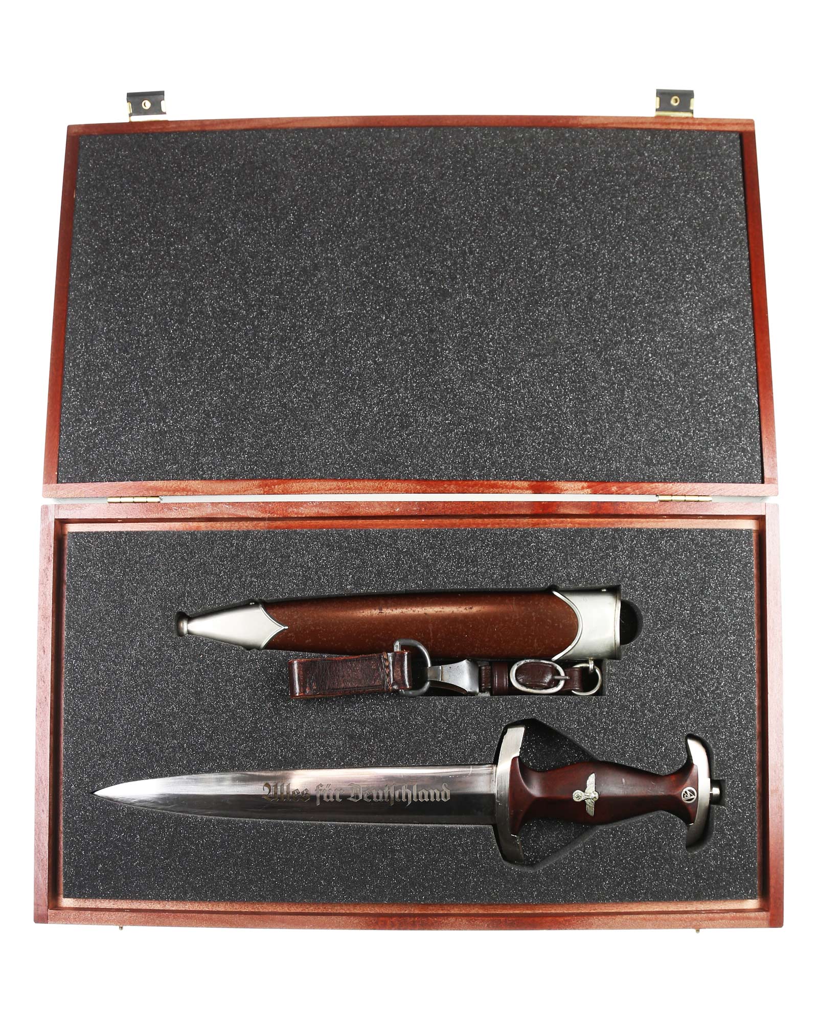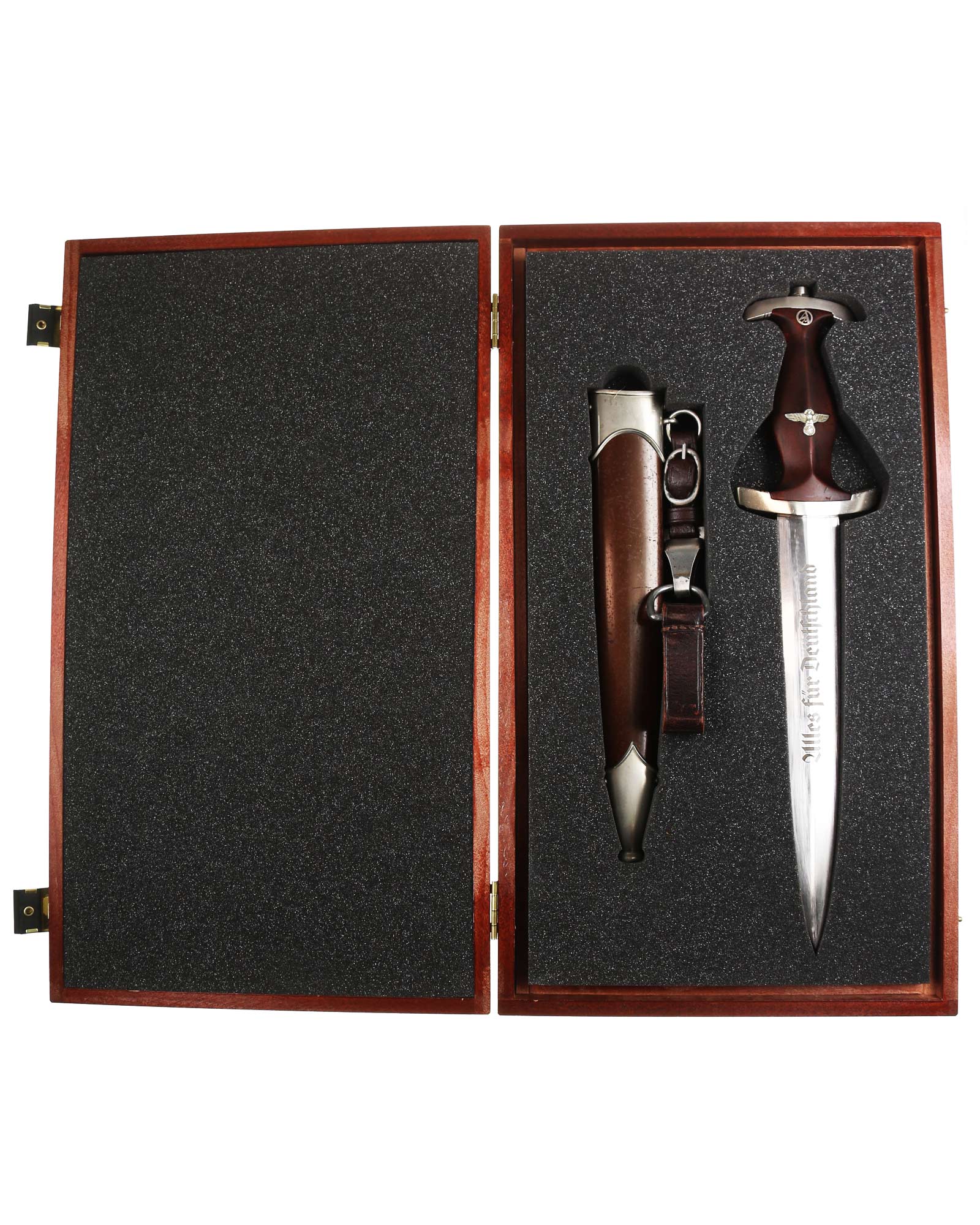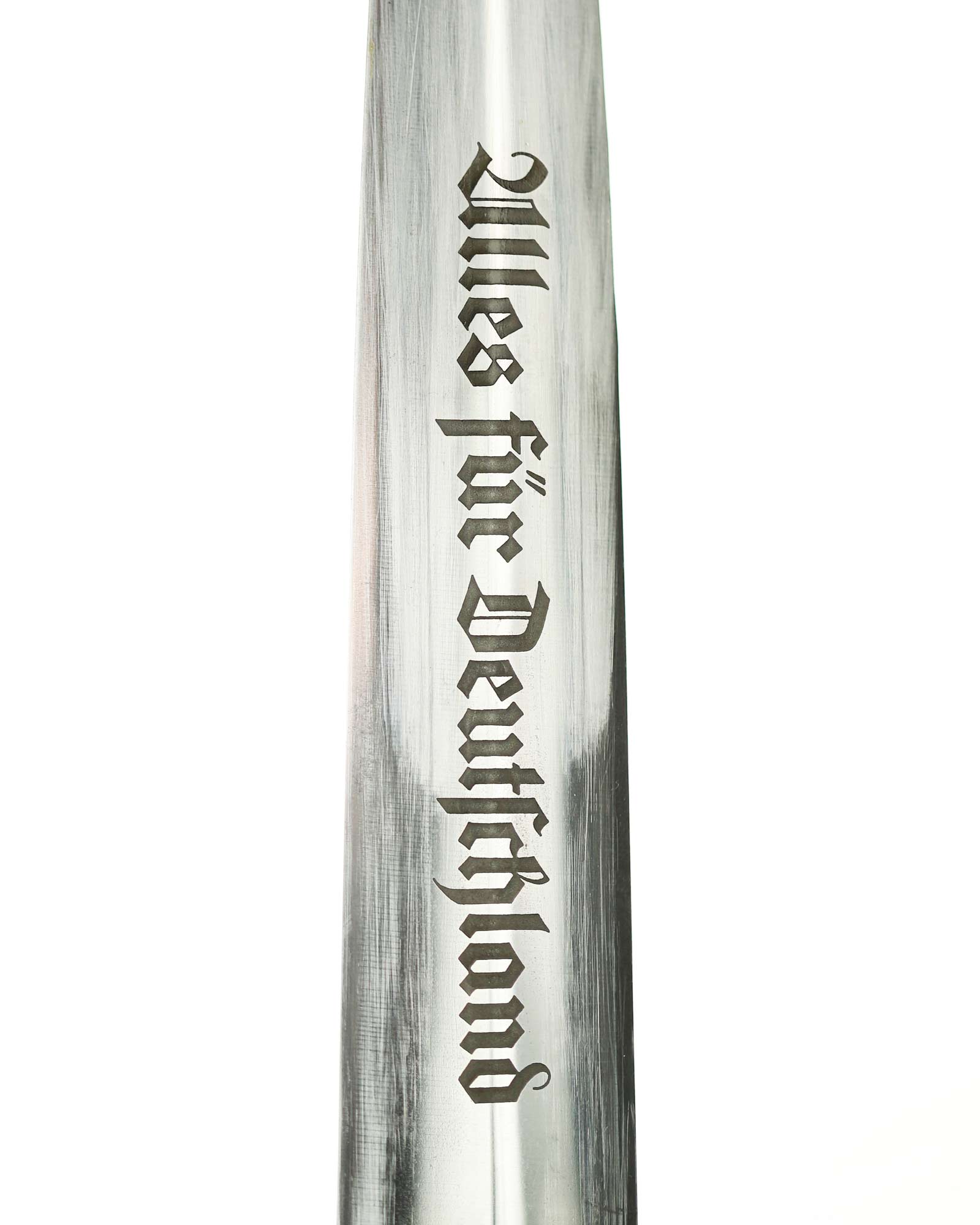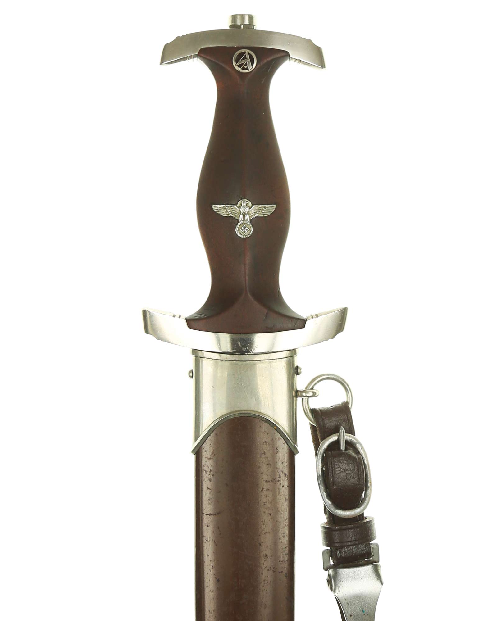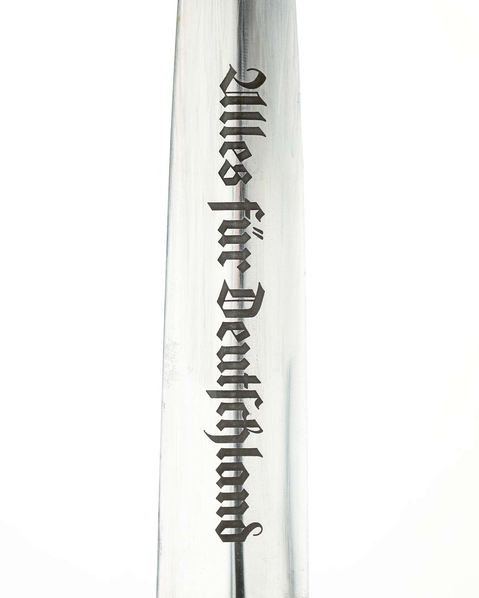 Клинок: Клинок кинжала прямой, стальной, двулезвийный, кинжального типа, с выраженным центральным ребром. На одной стороне клинка методом травления нанесен девиз СА «Всё для Германии» (Alles für Deutchland). Клинок на оборотной стороне у основания стоит клеймо производителя ТИГЕР Золинген (TIGER Solingen).