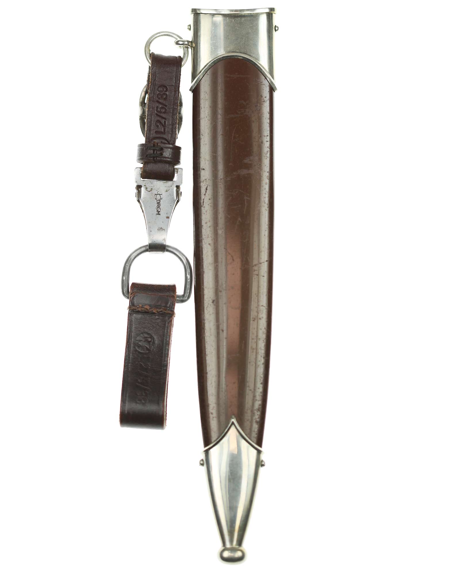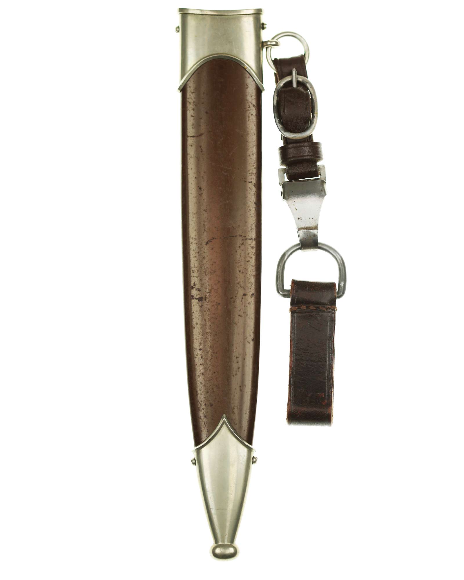 Ножны: Ножны металлические в оригинальном коричневом оксидировании, с накладными наконечником и устьем с кольцом. Наконечник и устье ножен крепятся при помощи двух винтов.