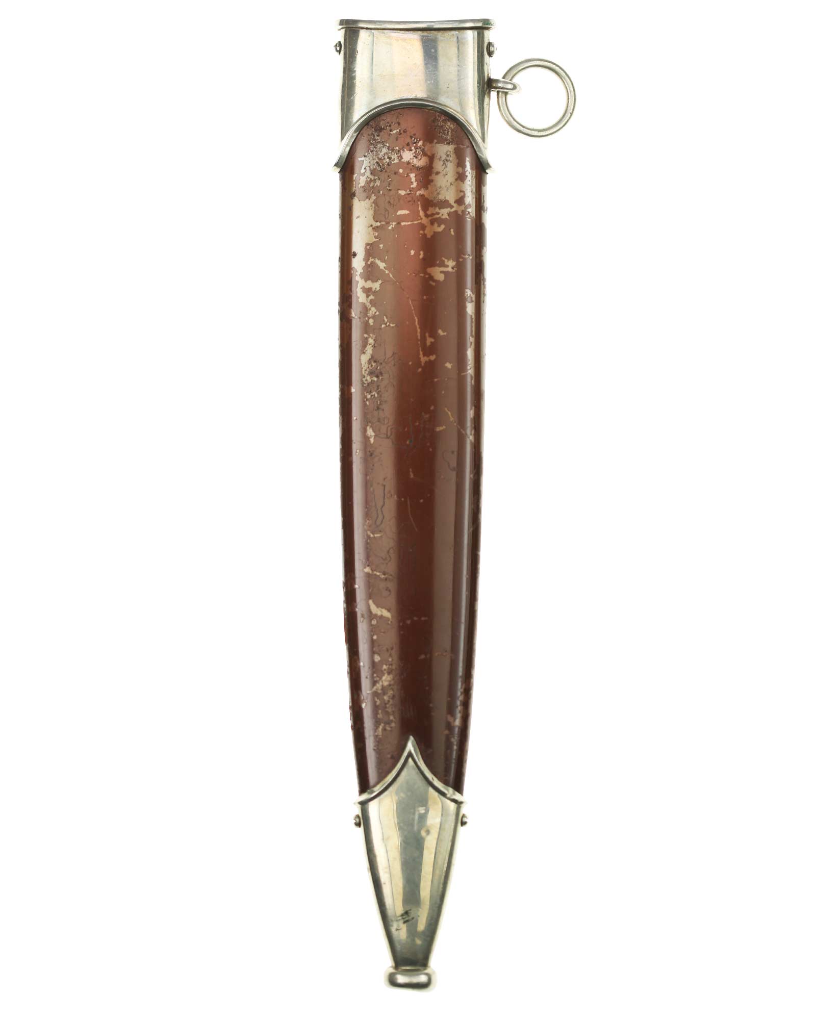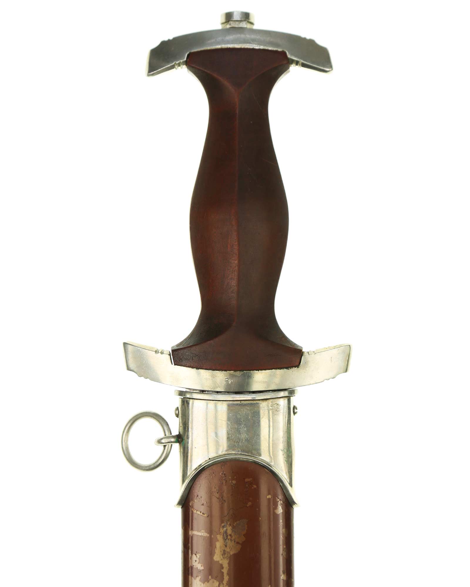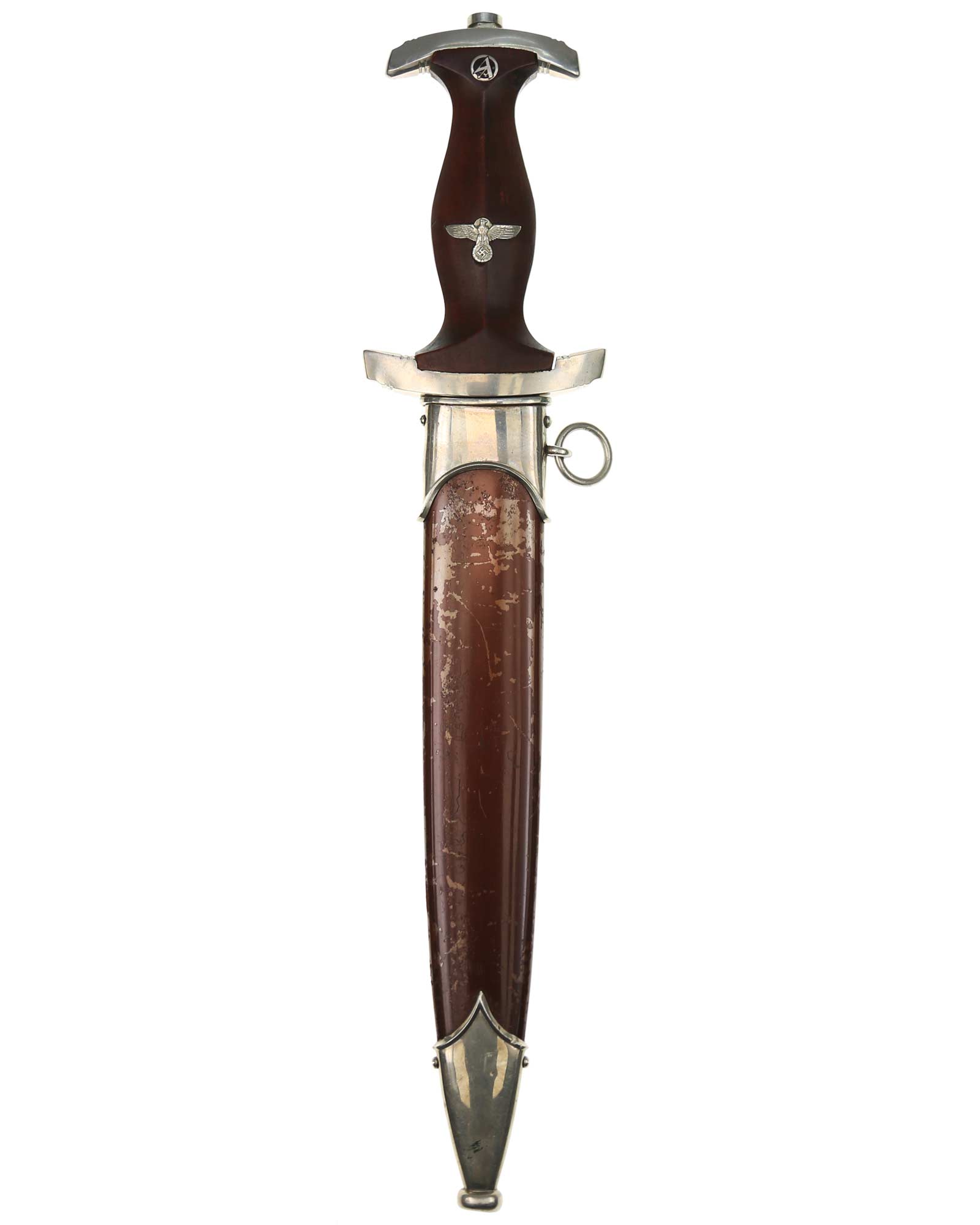 Ранний кинжал штурмовых отрядов СА образца 1933 года. Ранний период производства, 1933-1935 годы. Производитель фирма Daniel Peres Solingen (Южно-немецкий завод клинков Гефреес). Длина в ножнах 37,2 см.