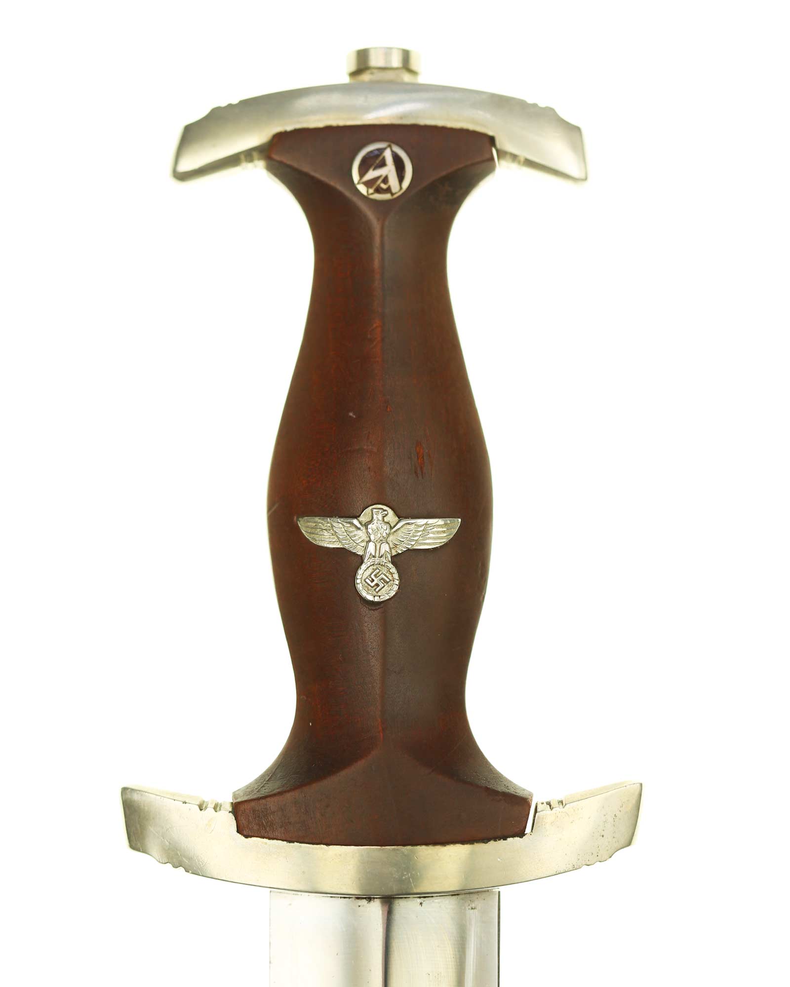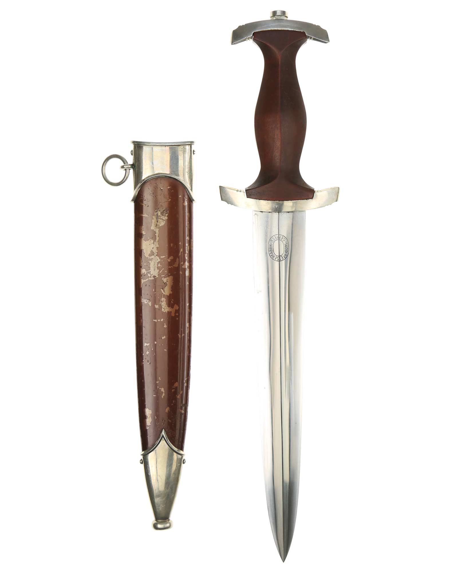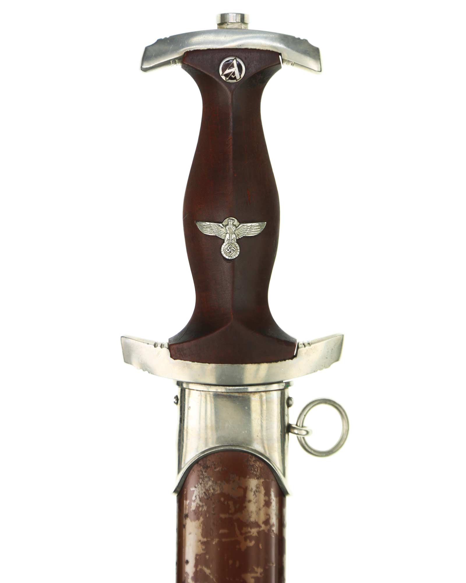 Ранний кинжал штурмовых отрядов СА образца 1933 года. Ранний период производства, 1933-1935 годы. Производитель фирма Daniel Peres Solingen (Южно-немецкий завод клинков Гефреес). Длина в ножнах 37,2 см.