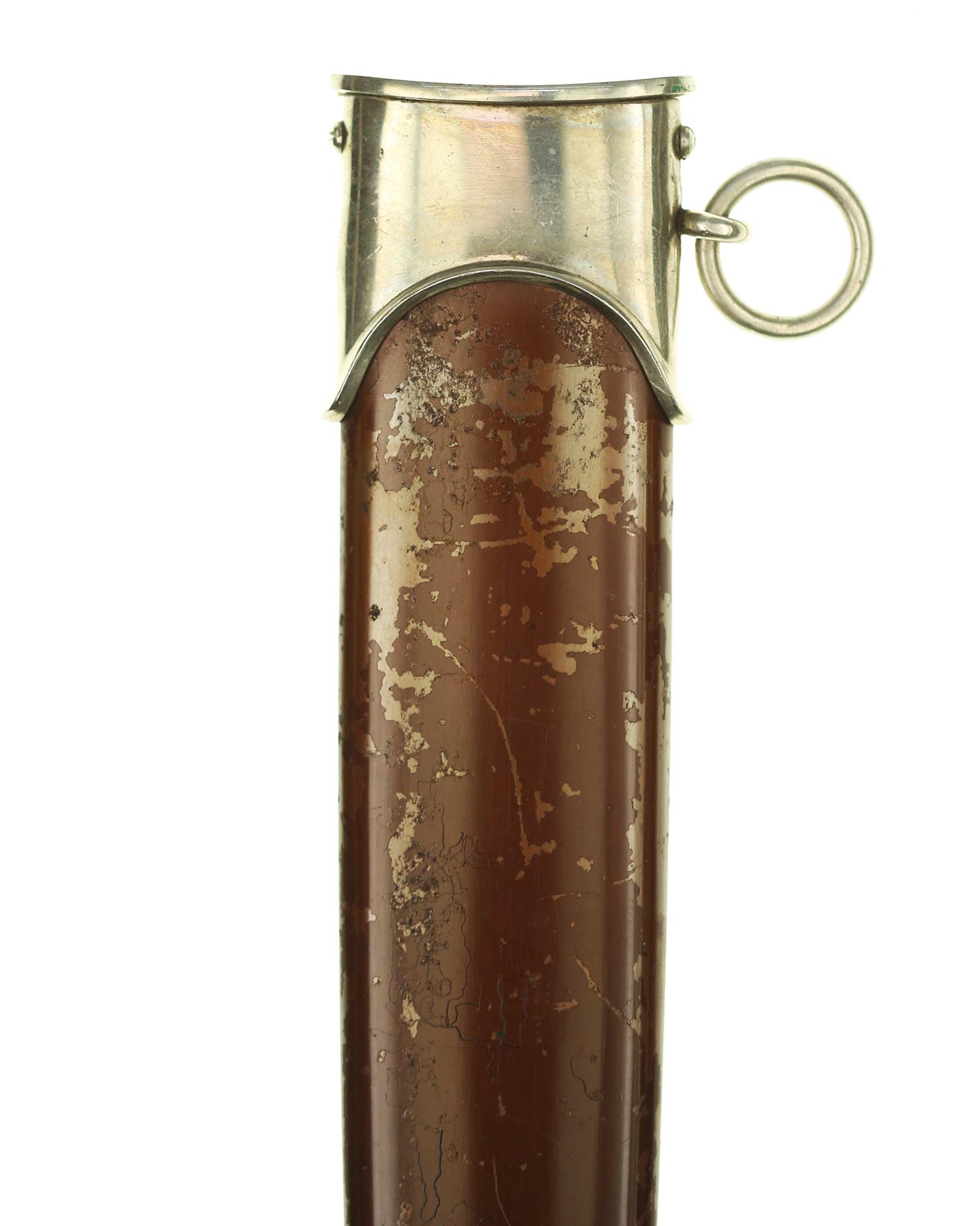 Ножны: Ножны стальные, окрашенные в коричневый цвет, с накладными наконечником и устьем с кольцом. Наконечник и устье ножен крепятся при помощи двух винтов. Прибор ножен изготовлен из белого металла и состоит из устья с гайкой и кольцом для подвешивания га ремень и устья с шариком.