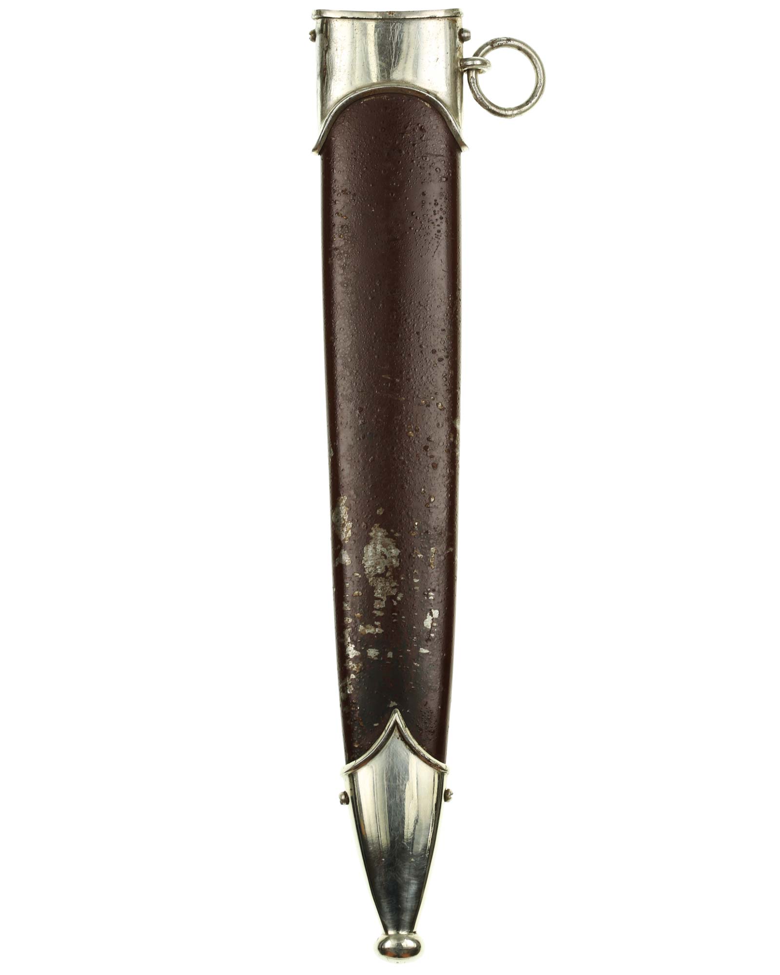 Ножны: Ножны металлические в оригинальном коричневом оксидировании, с накладными наконечником и устьем с кольцом. Наконечник и устье ножен крепятся при помощи двух винтов.