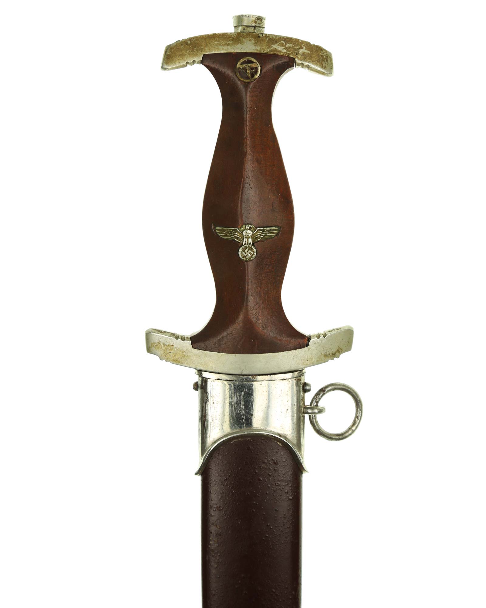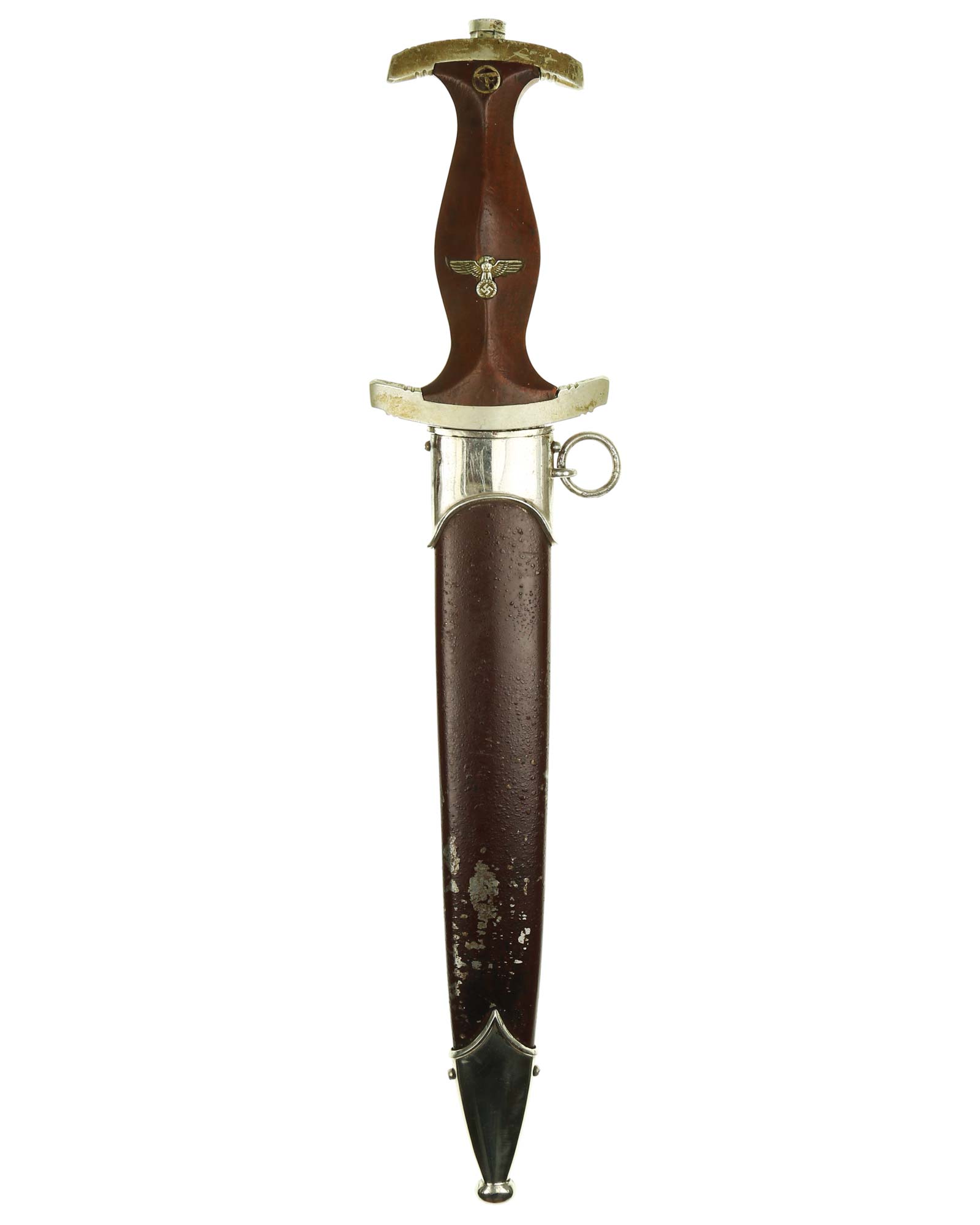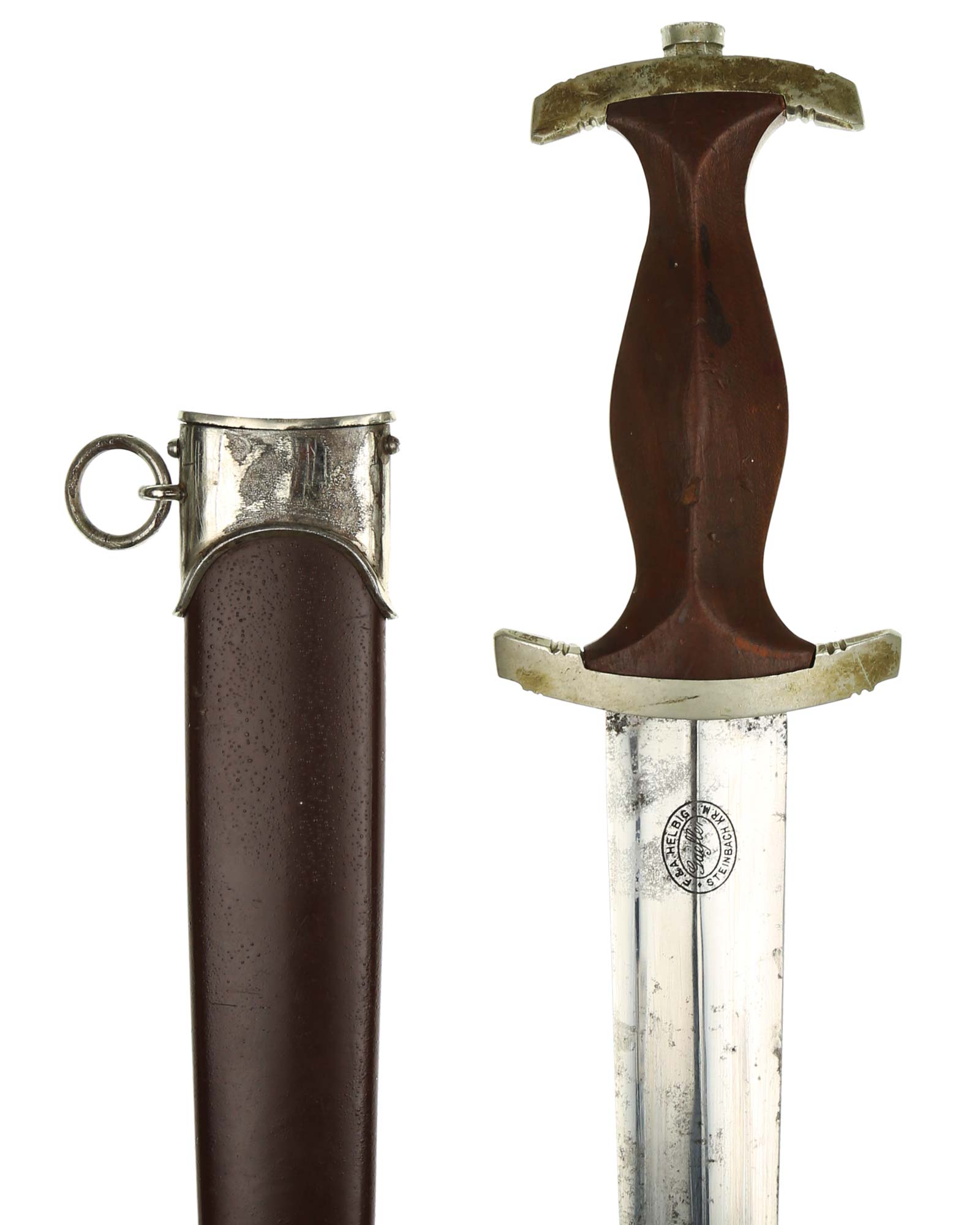 Ранний кинжал штурмовых отрядов СА образца 1933 года. Ранний период производства, 1933-1935 годы. Производитель фирма Ф. и А. Хельбиг Штайнбах (F. & A. Helbig GAEFLER Steinbach). Длина в ножнах 37,7 см.
