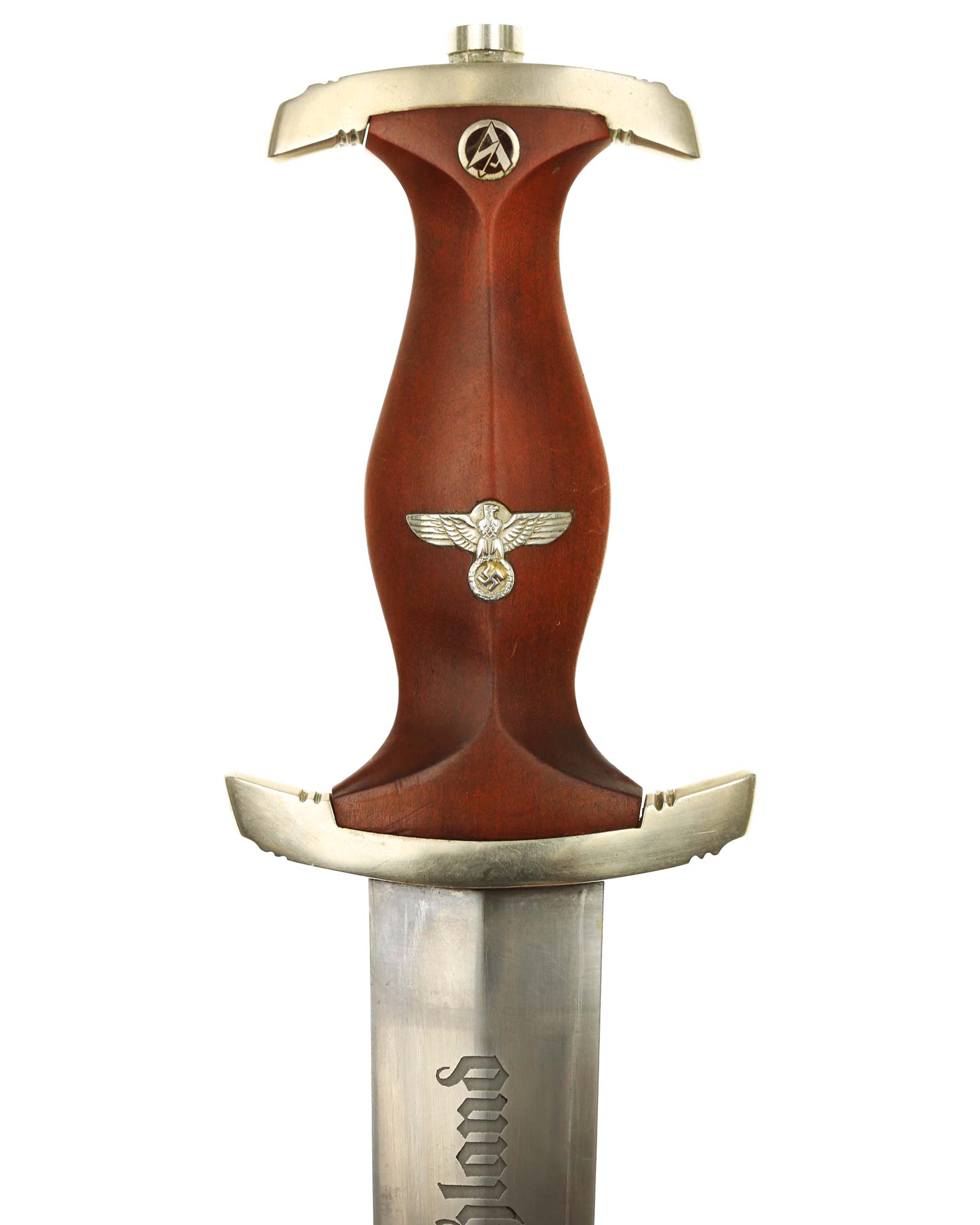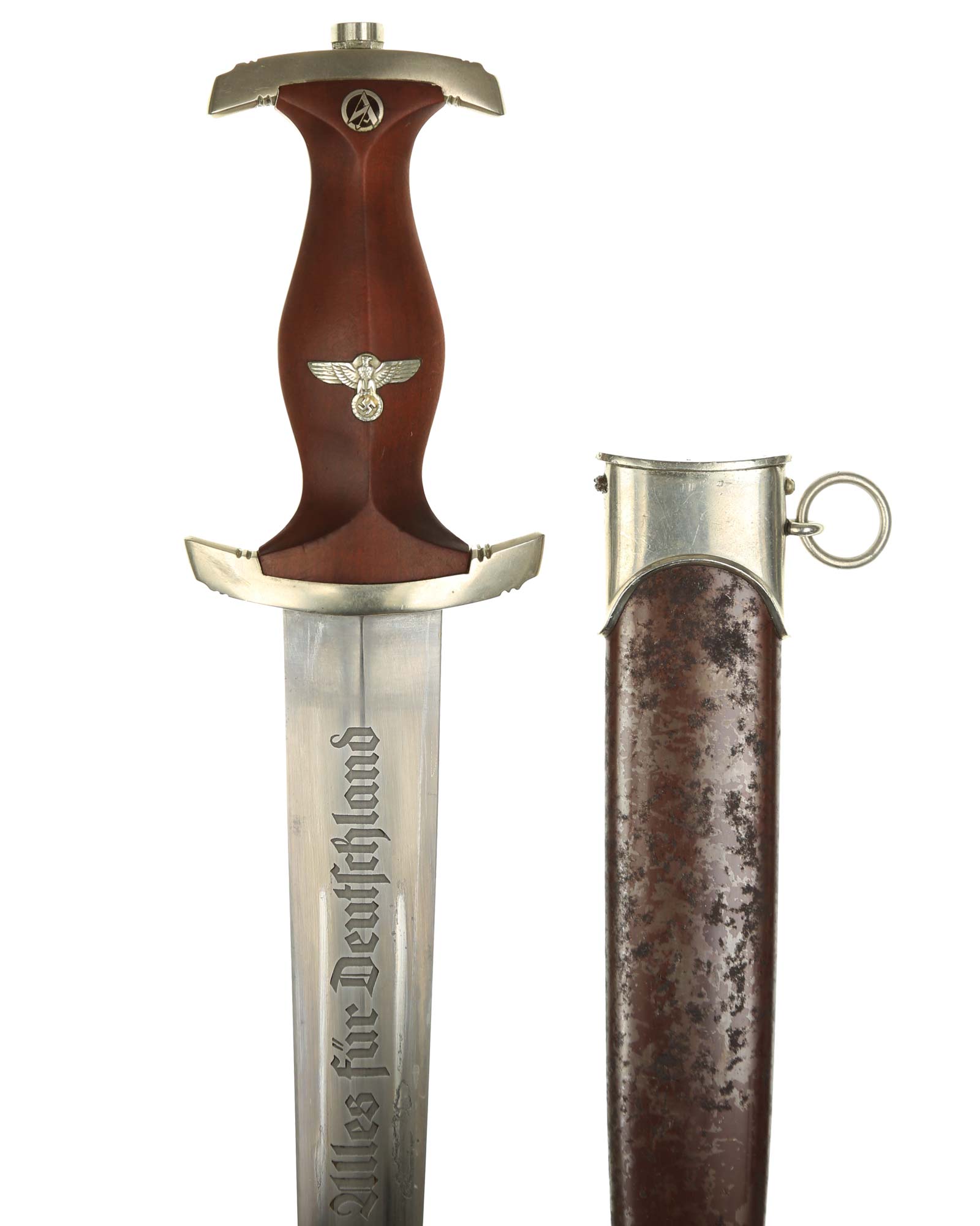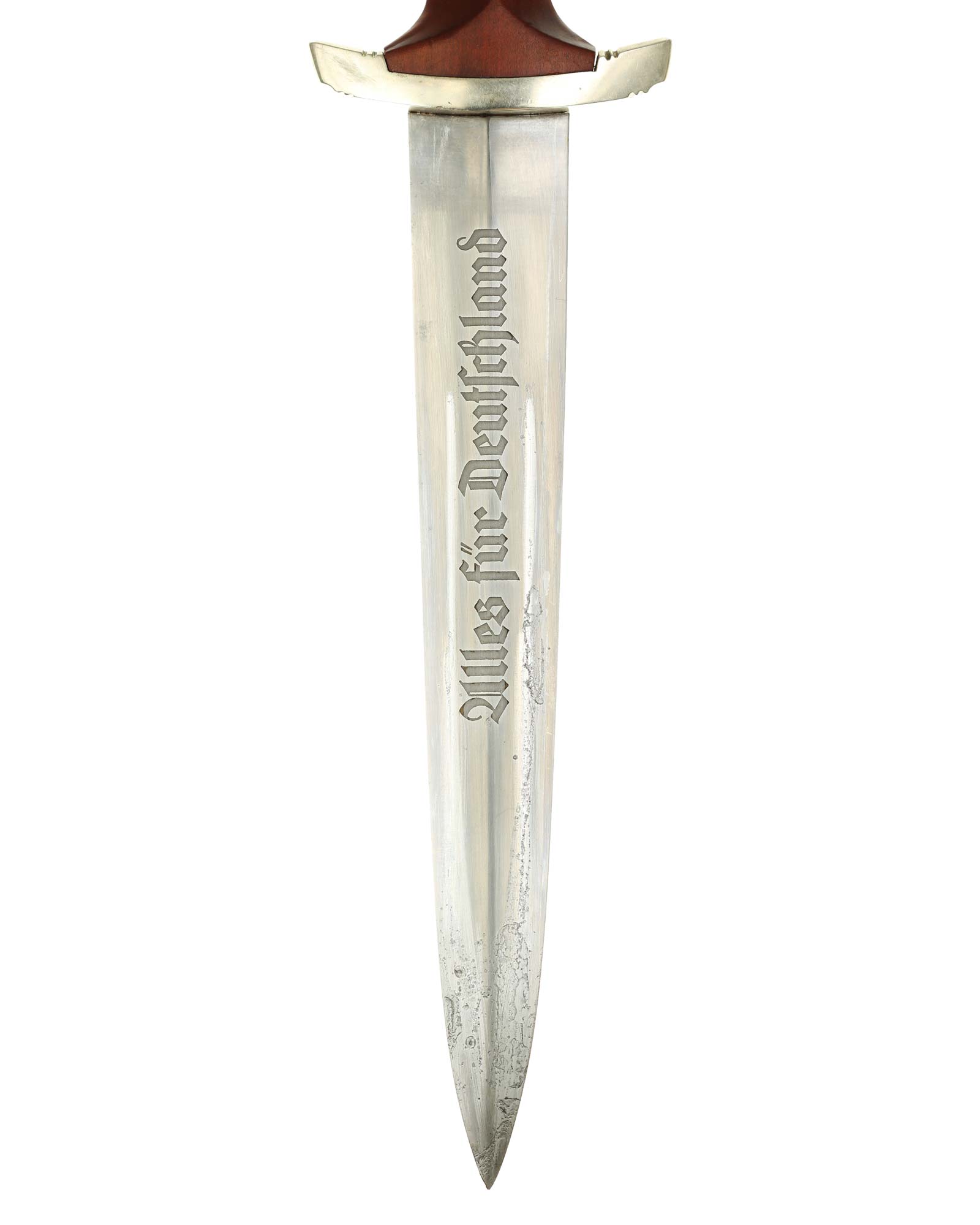Клинок: Клинок кинжала прямой, стальной, двулезвийный, кинжального типа, с выраженным центральным ребром. На одной стороне клинка методом травления нанесен девиз СА «Всё для Германии» (Alles für Deutchland). Клинок на оборотной стороне у основания стоит клеймо производителя Готтфрид Вайерсберг Золинген (Gottfried Weyersberg & Söhne Solingen).