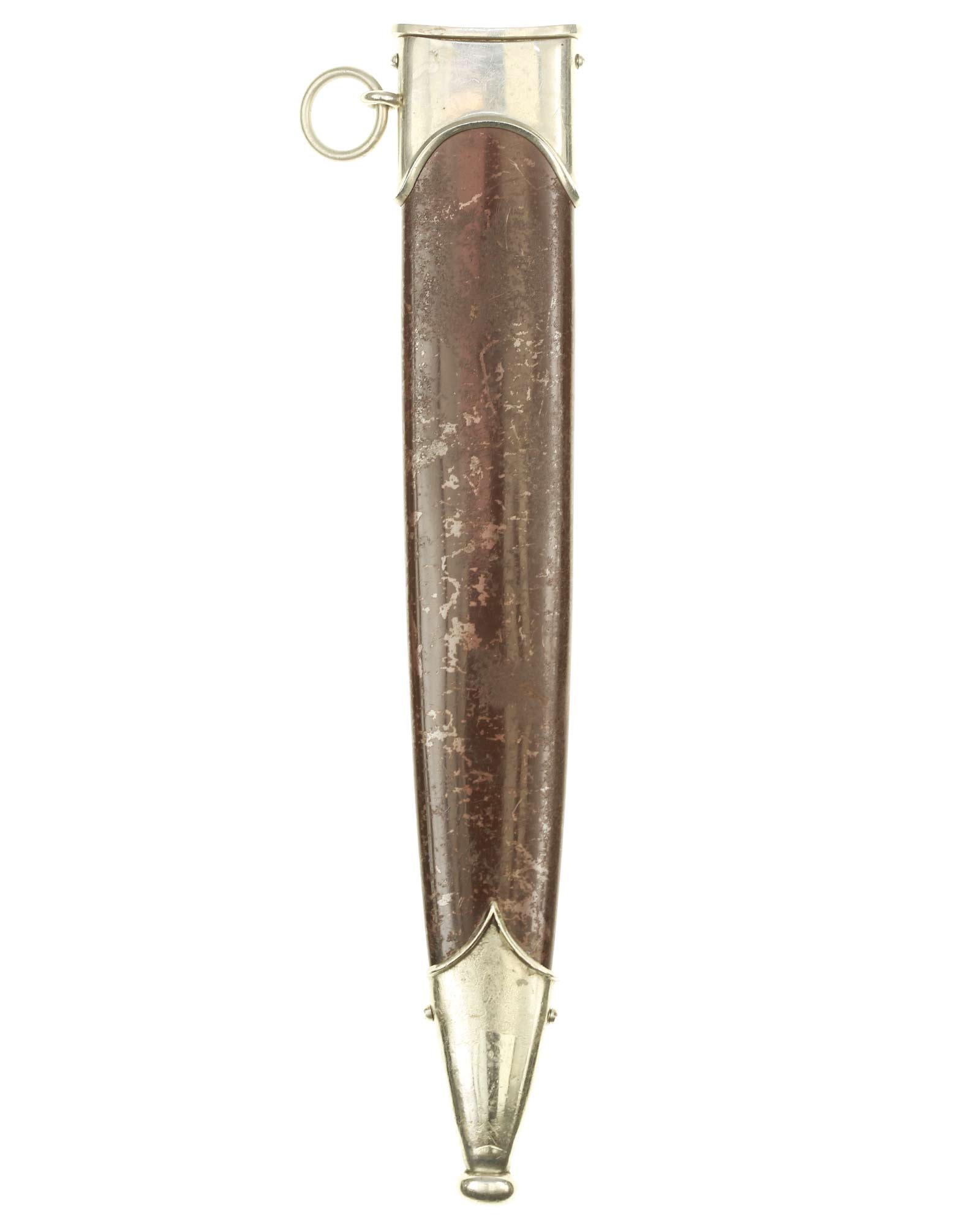 Ножны: Ножны металлические в оригинальном коричневом оксидировании, с накладными наконечником и устьем с кольцом. Наконечник и устье ножен крепятся при помощи двух винтов.