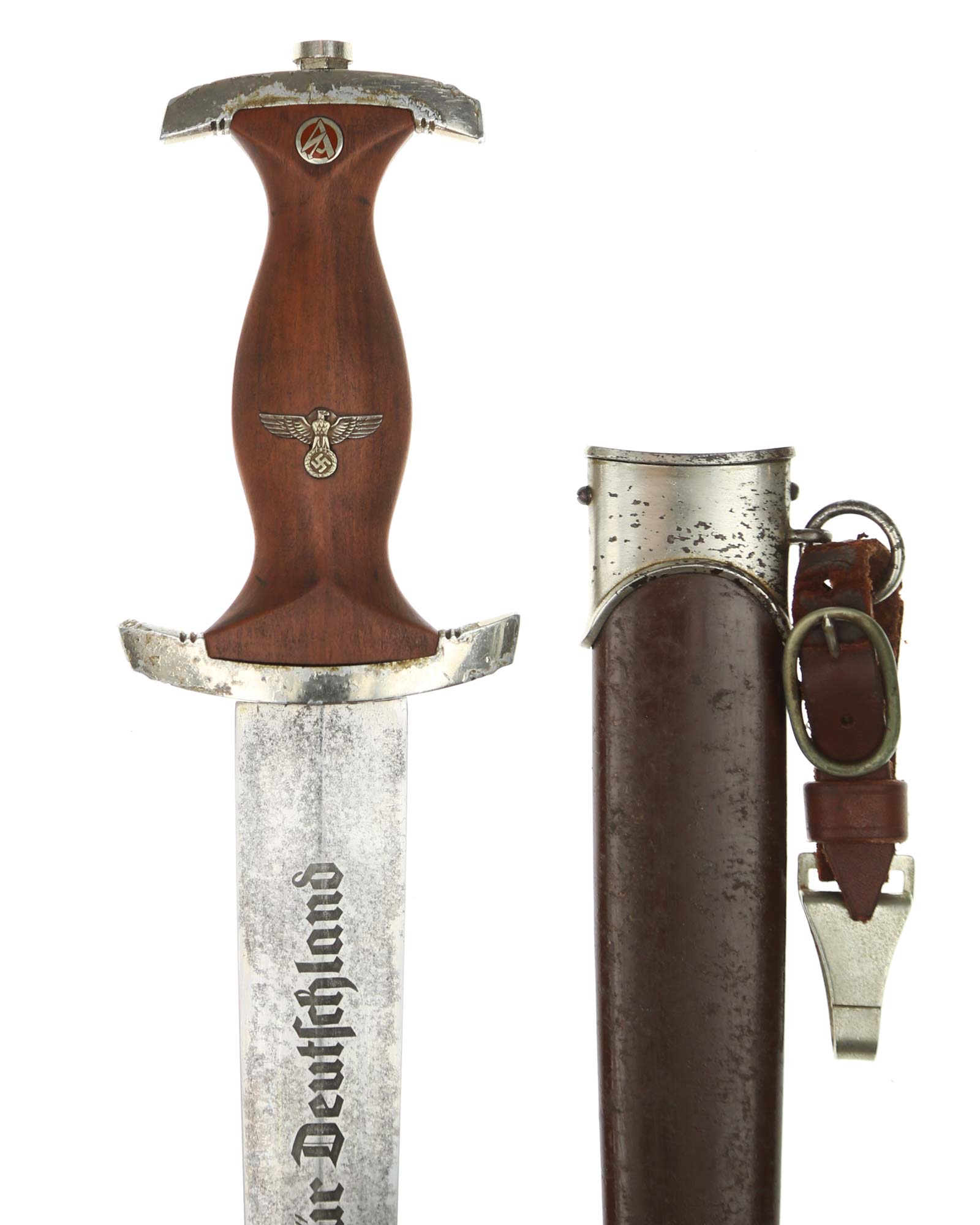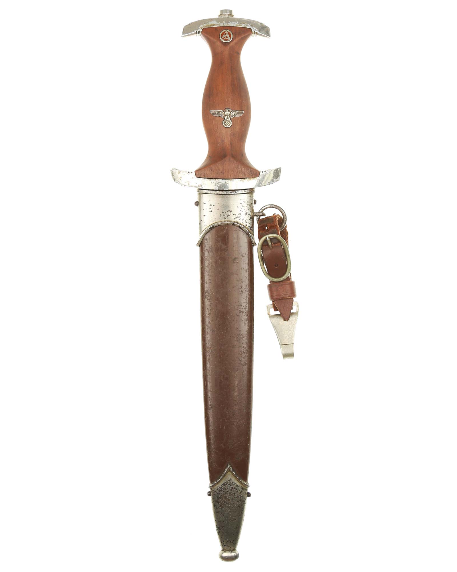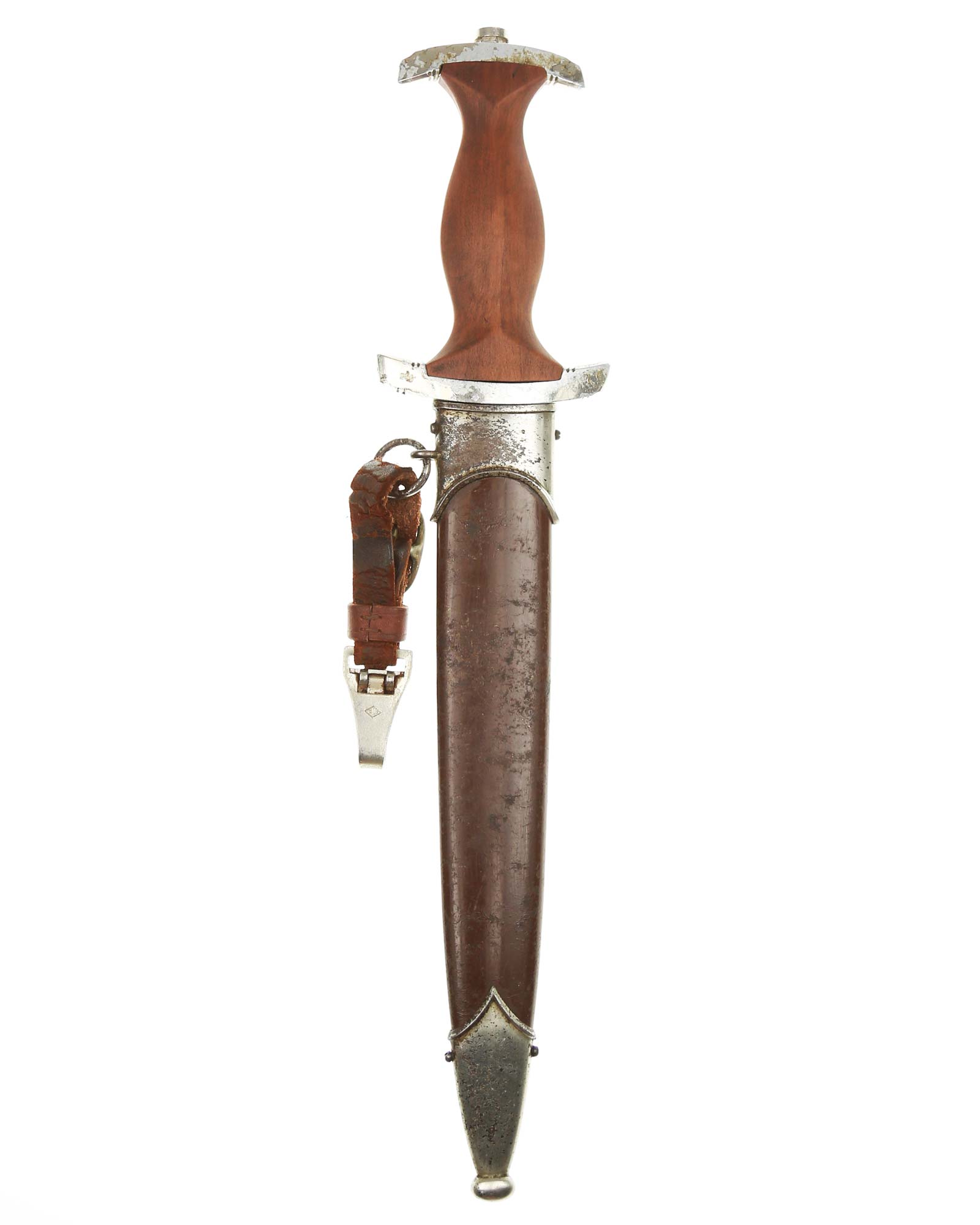 Средний кинжал штурмовых отрядов СА образца 1933 года. Средний период производства, 1936-1938 годы. Производитель фирма RZM M7/66 (Карл Айкхорн Золинген). Длина в ножнах 37,6 см.