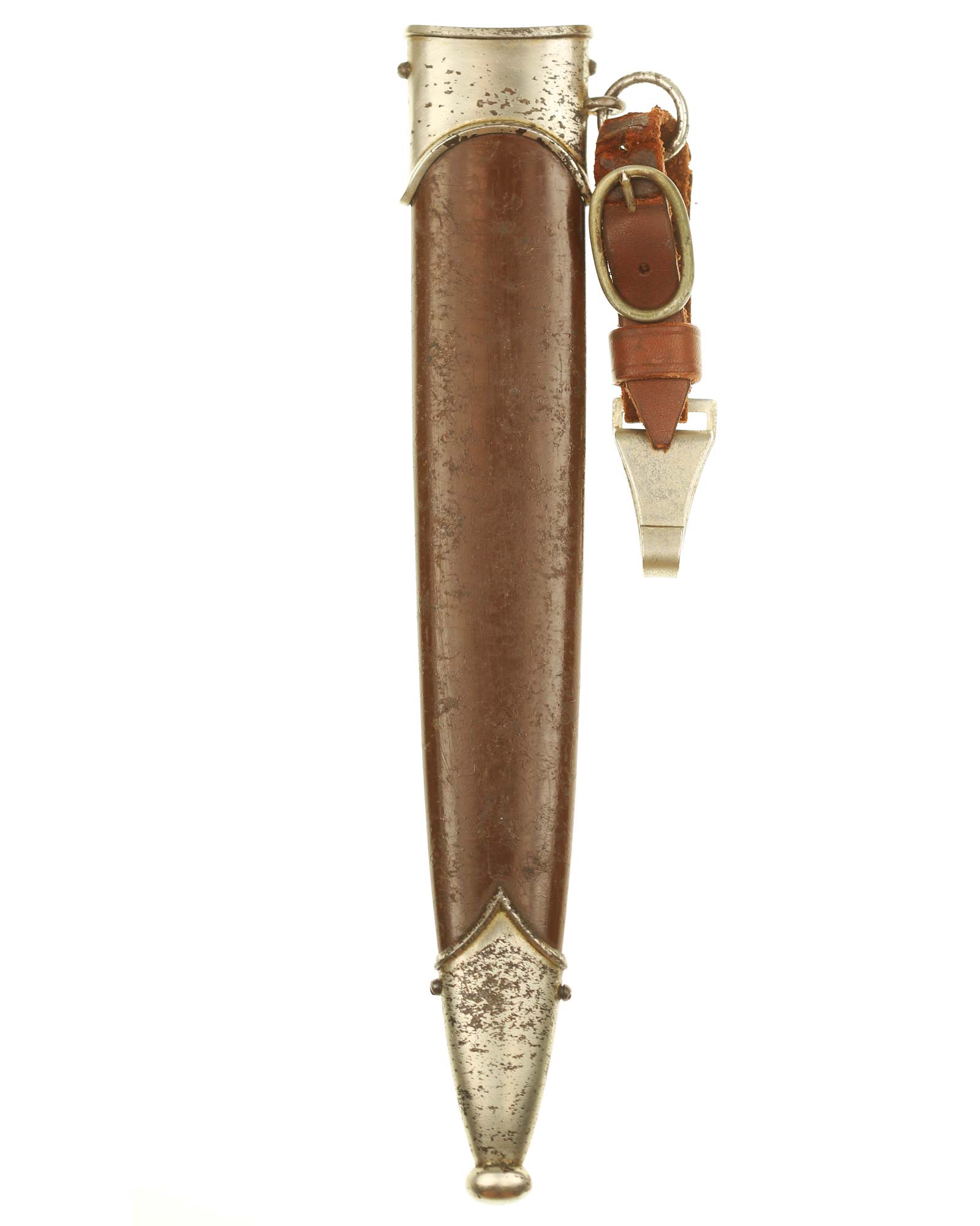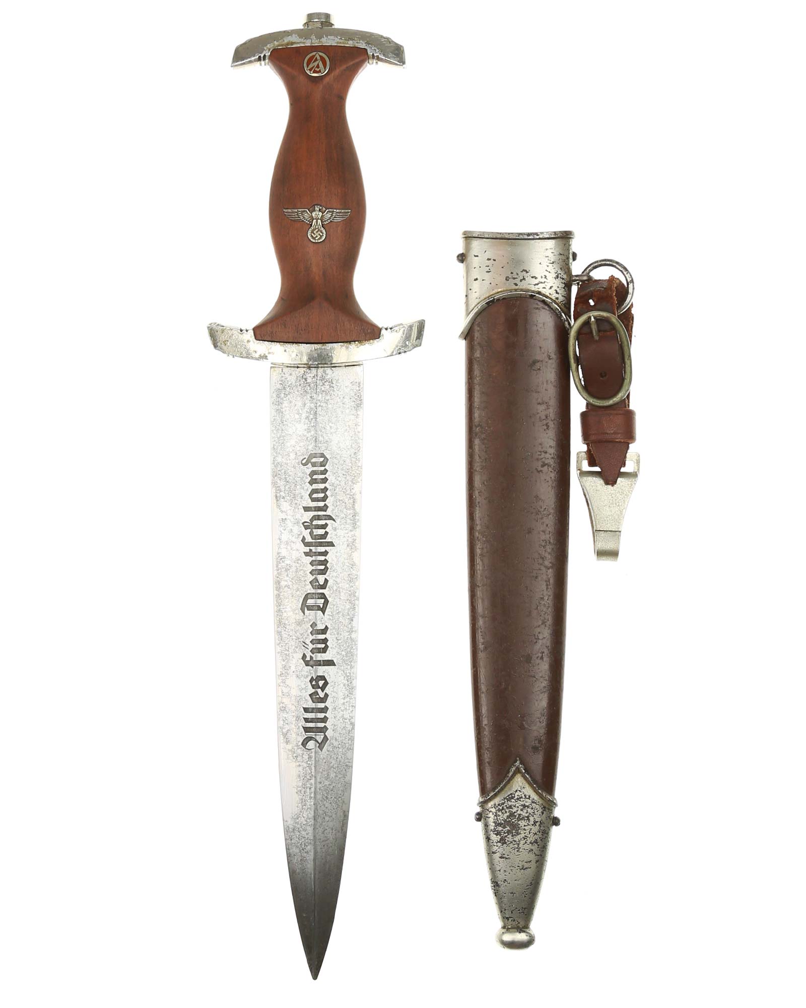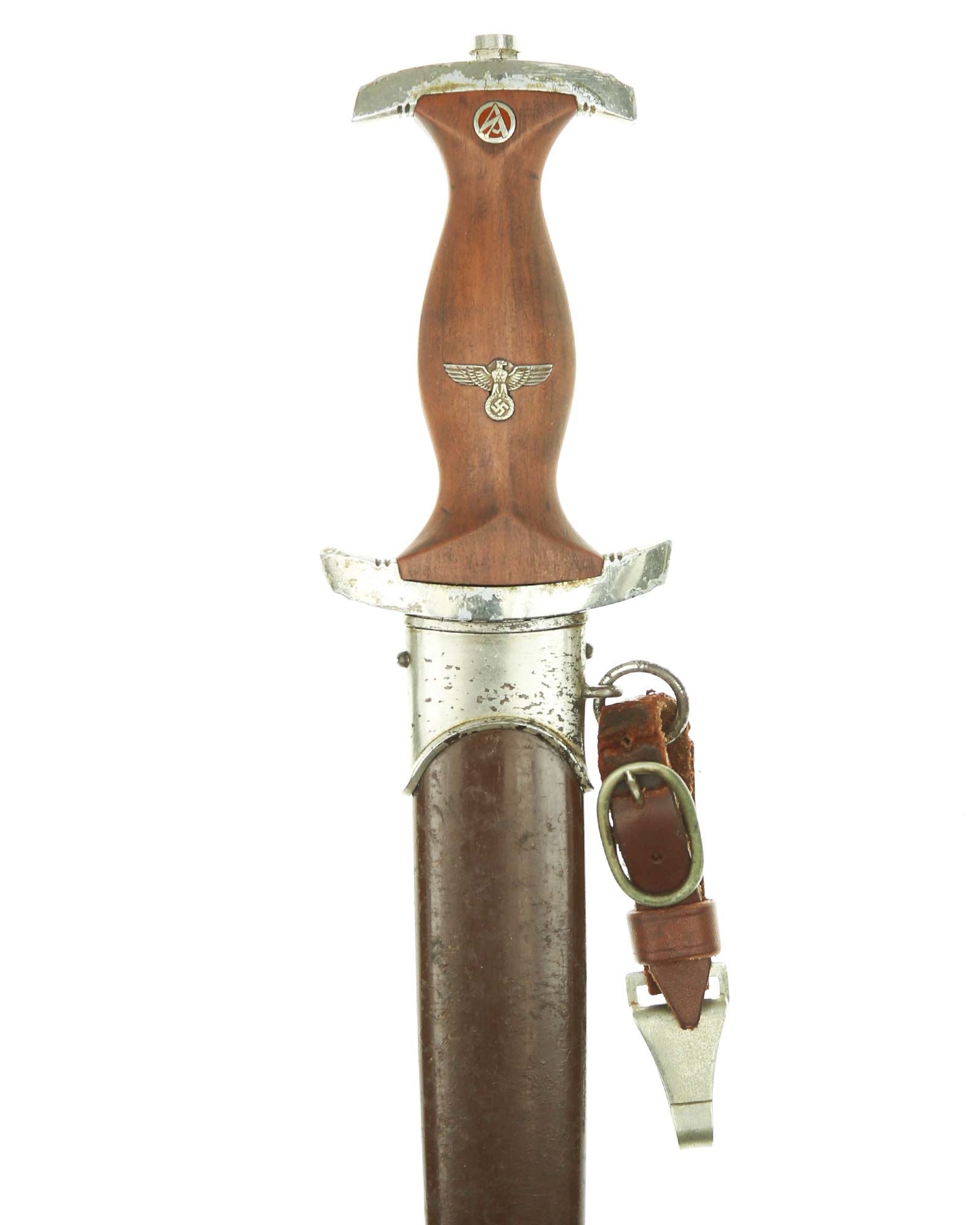 Средний кинжал штурмовых отрядов СА образца 1933 года. Средний период производства, 1936-1938 годы. Производитель фирма RZM M7/66 (Карл Айкхорн Золинген). Длина в ножнах 37,6 см.