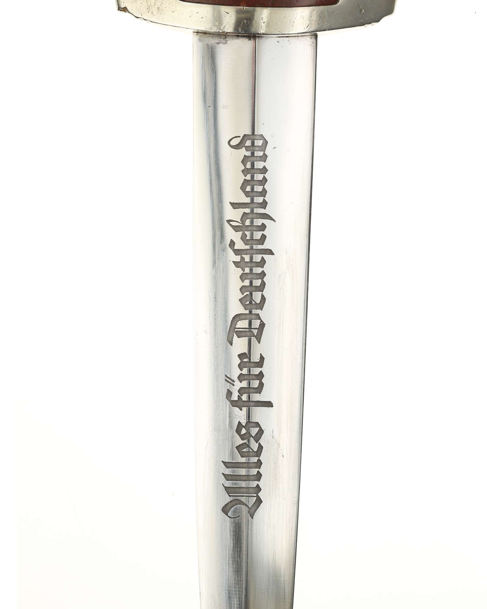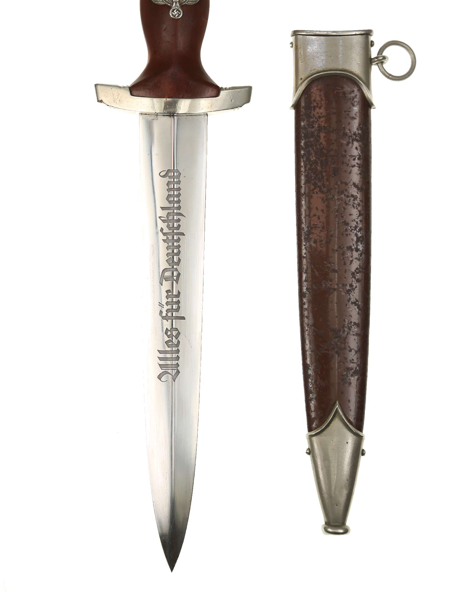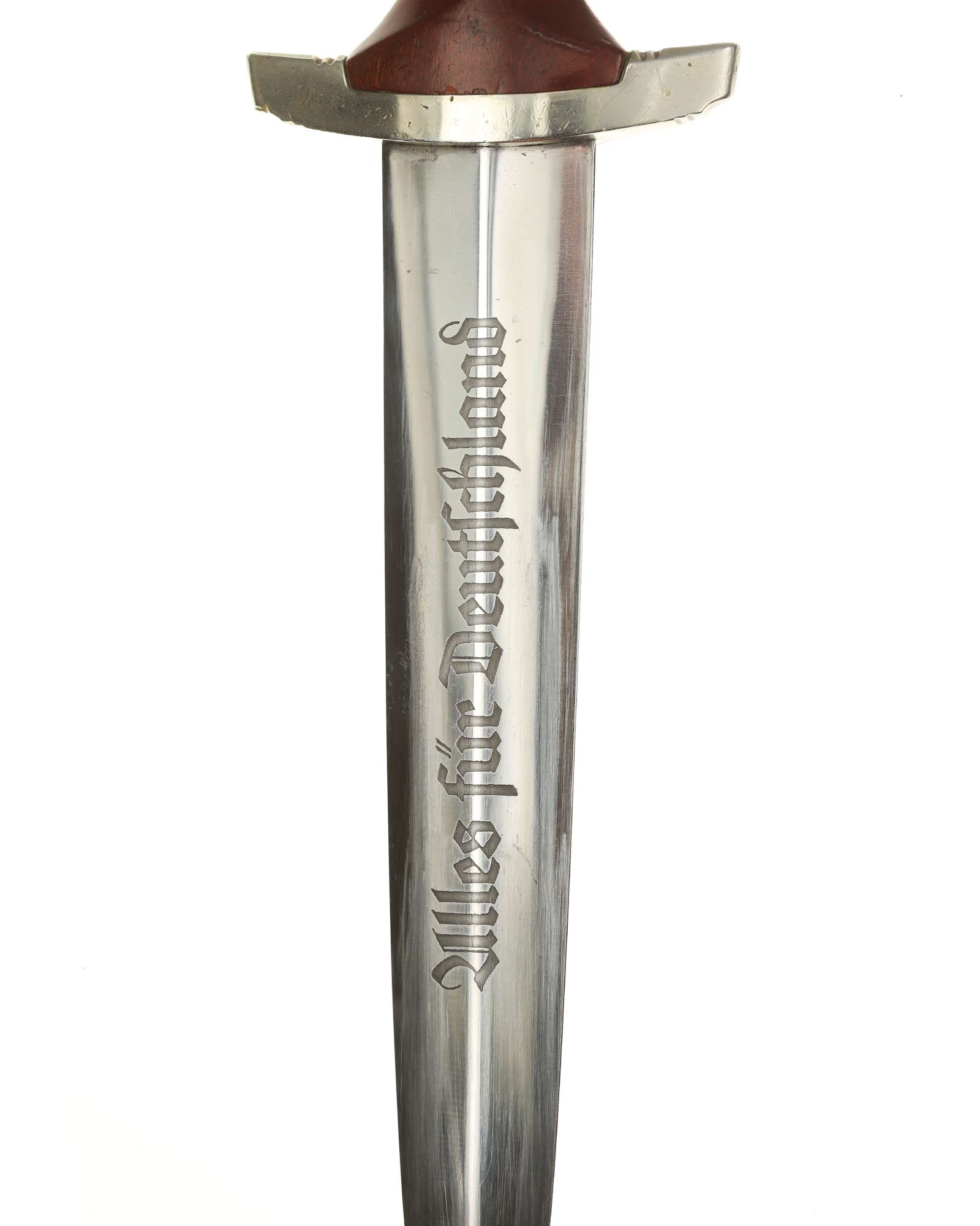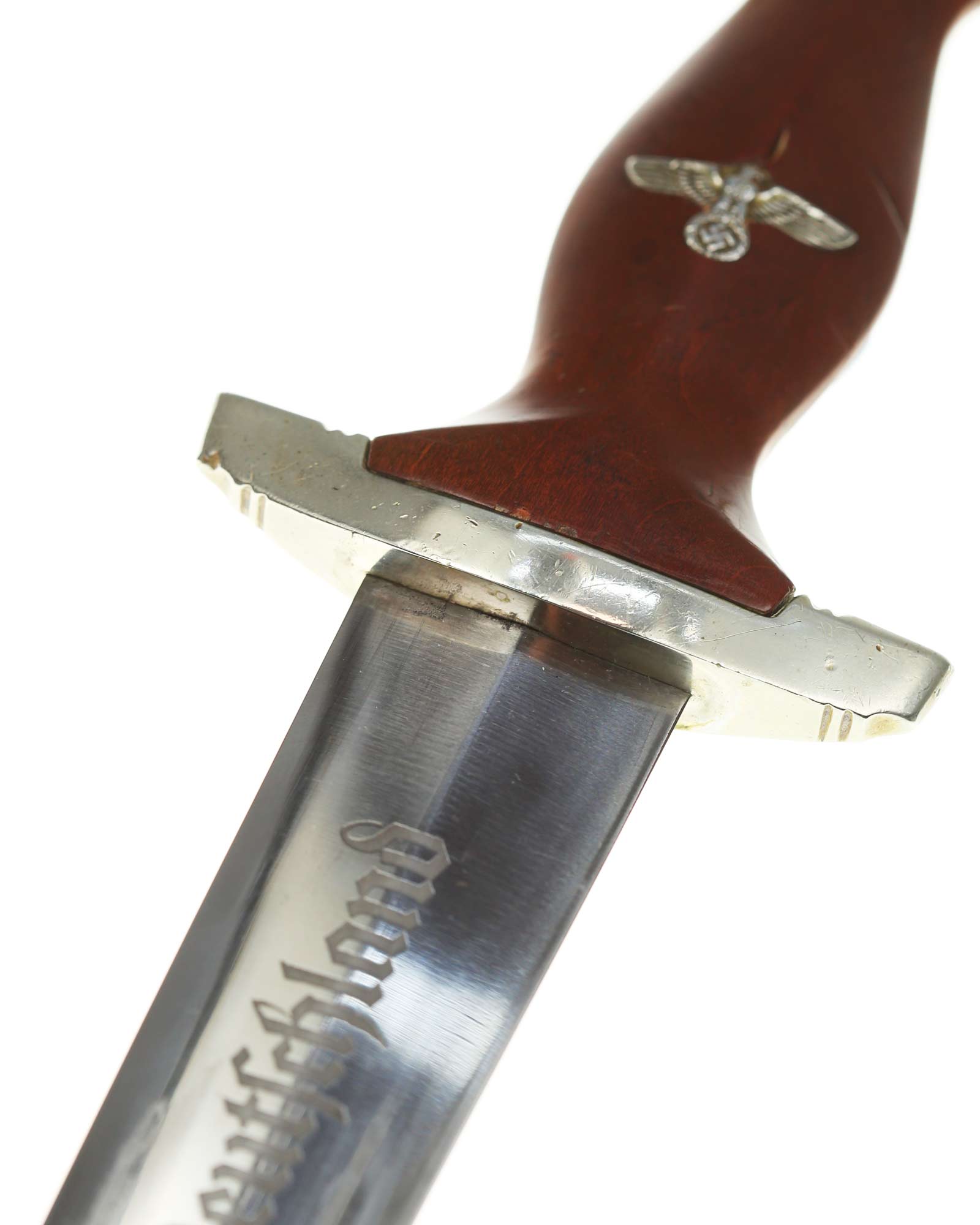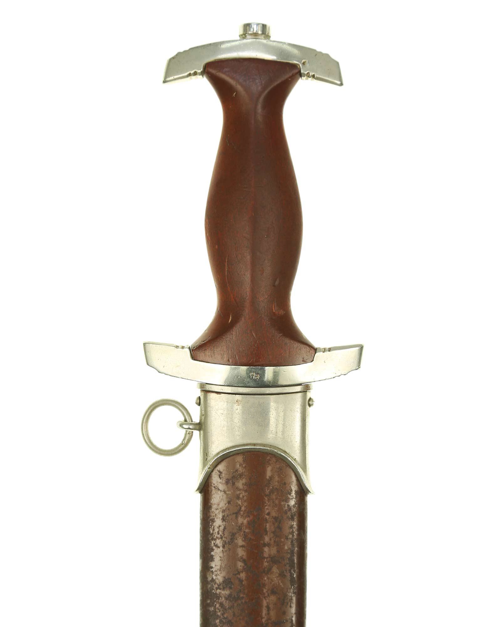 Клинок: Клинок кинжала прямой, стальной, двулезвийный, кинжального типа, с выраженным центральным ребром. На одной стороне клинка методом травления нанесен девиз СА «Всё для Германии» (Alles für Deutschland). Клинок на оборотной стороне у основания стоит клеймо производителя Рихард Хааштерт и Бюль Золинген (R. Haastert & Büll Solingen).