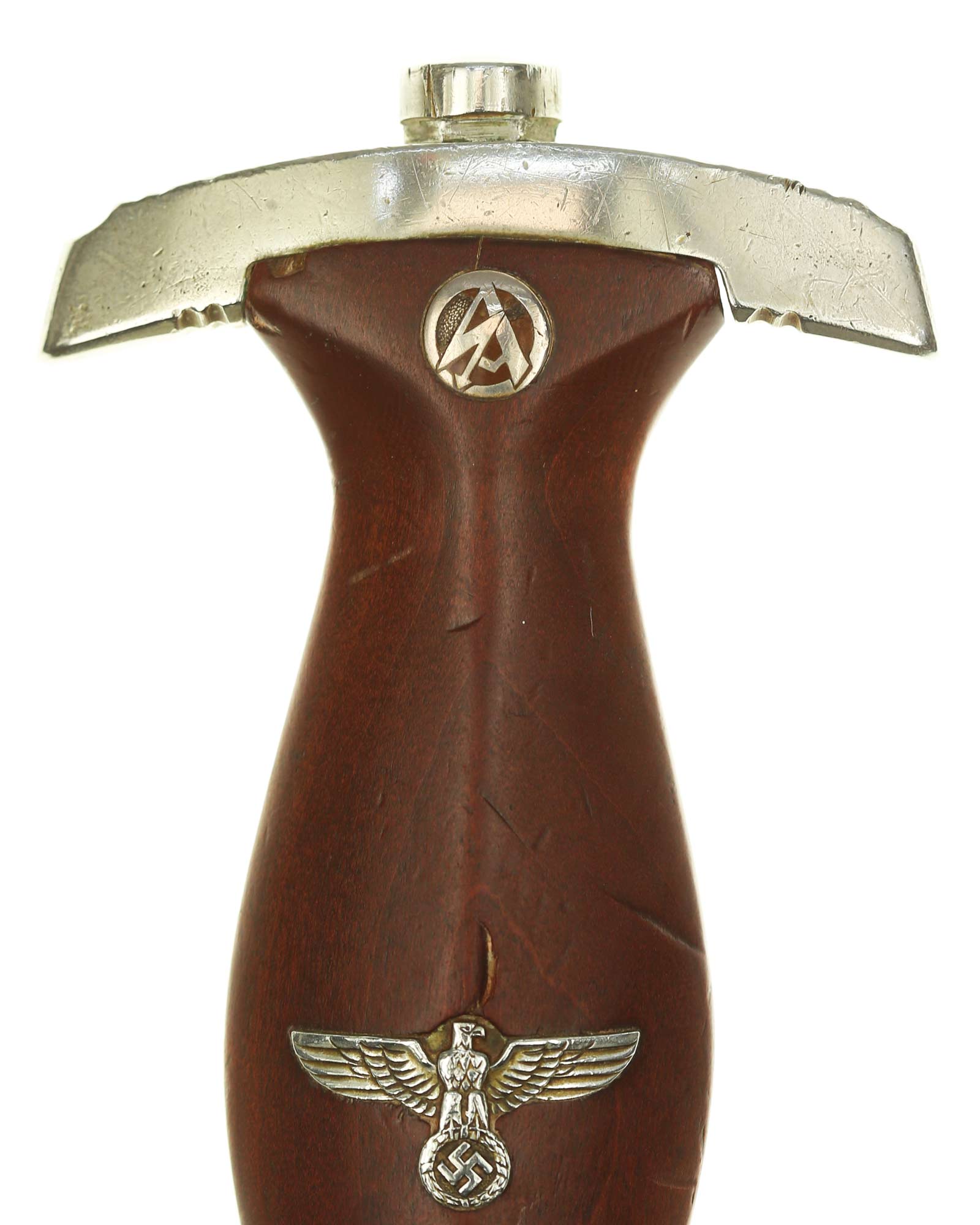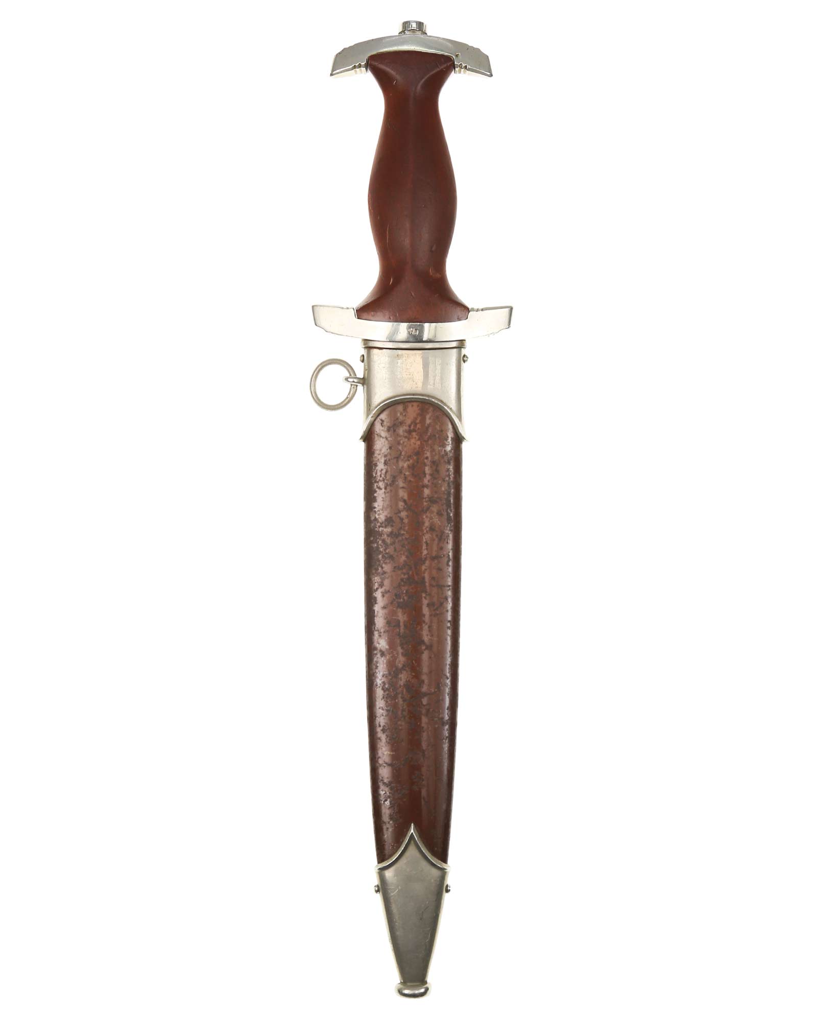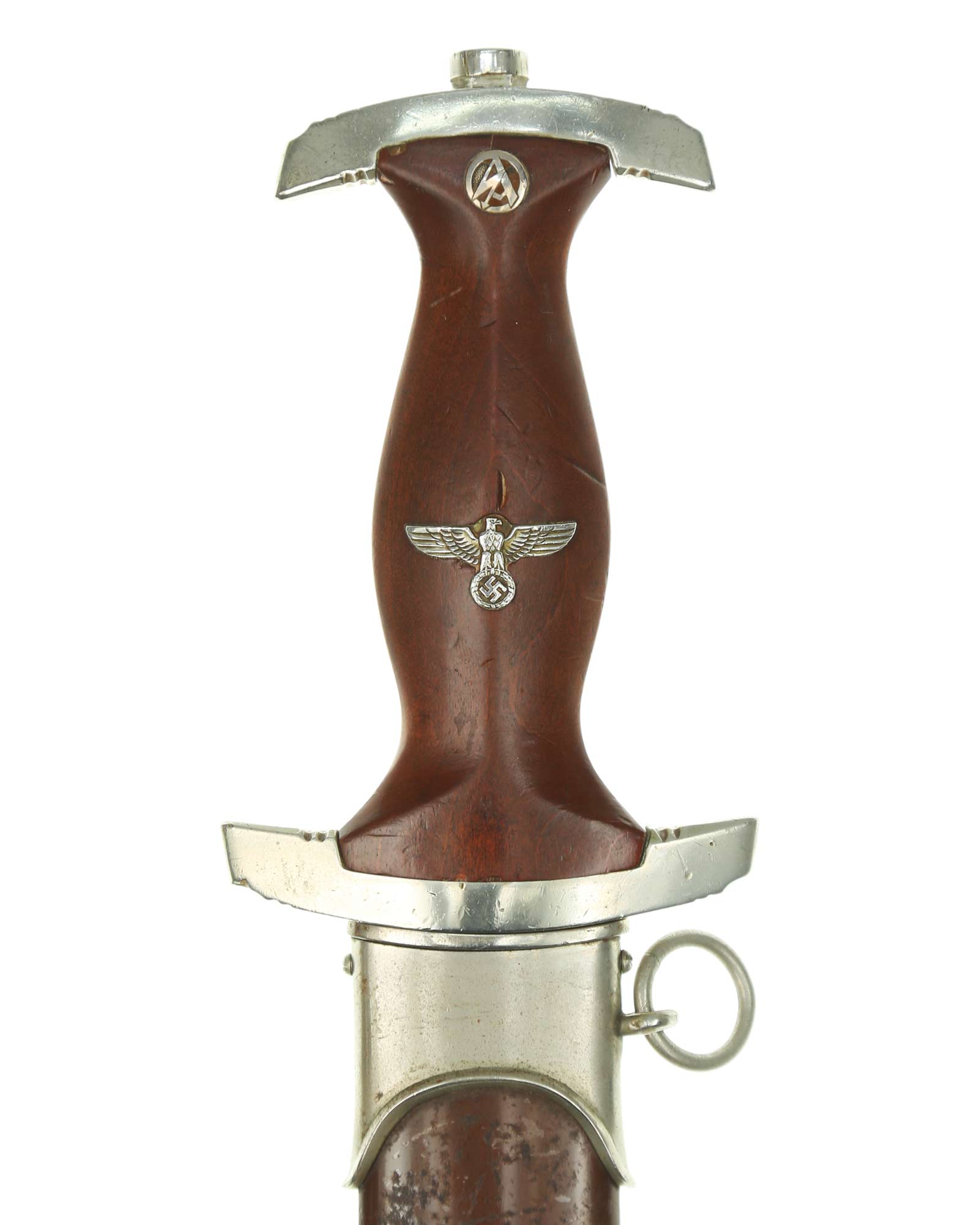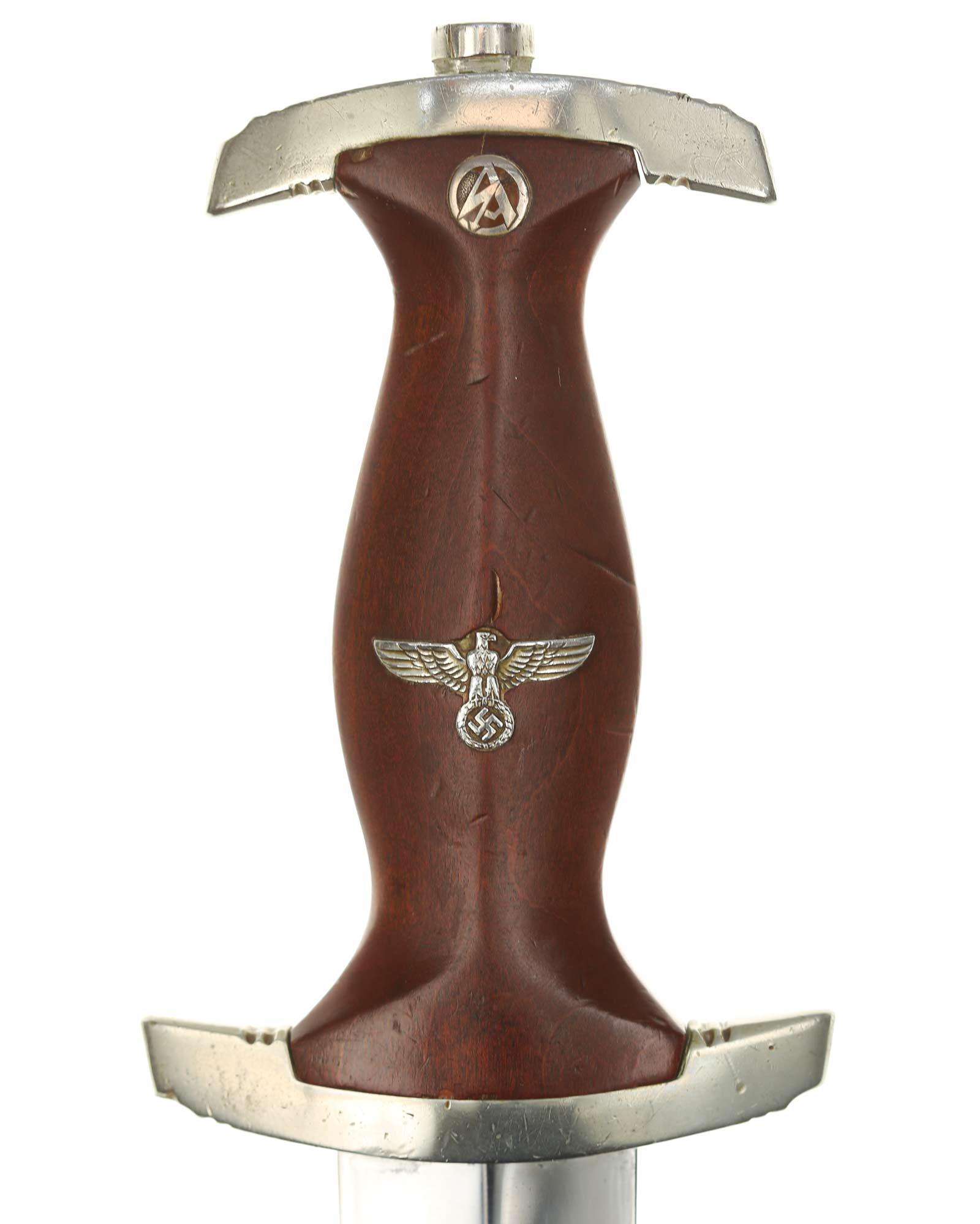 Клинок: Клинок кинжала прямой, стальной, двулезвийный, кинжального типа, с выраженным центральным ребром. На одной стороне клинка методом травления нанесен девиз СА «Всё для Германии» (Alles für Deutschland). Клинок на оборотной стороне у основания стоит клеймо производителя Рихард Хааштерт и Бюль Золинген (R. Haastert & Büll Solingen).