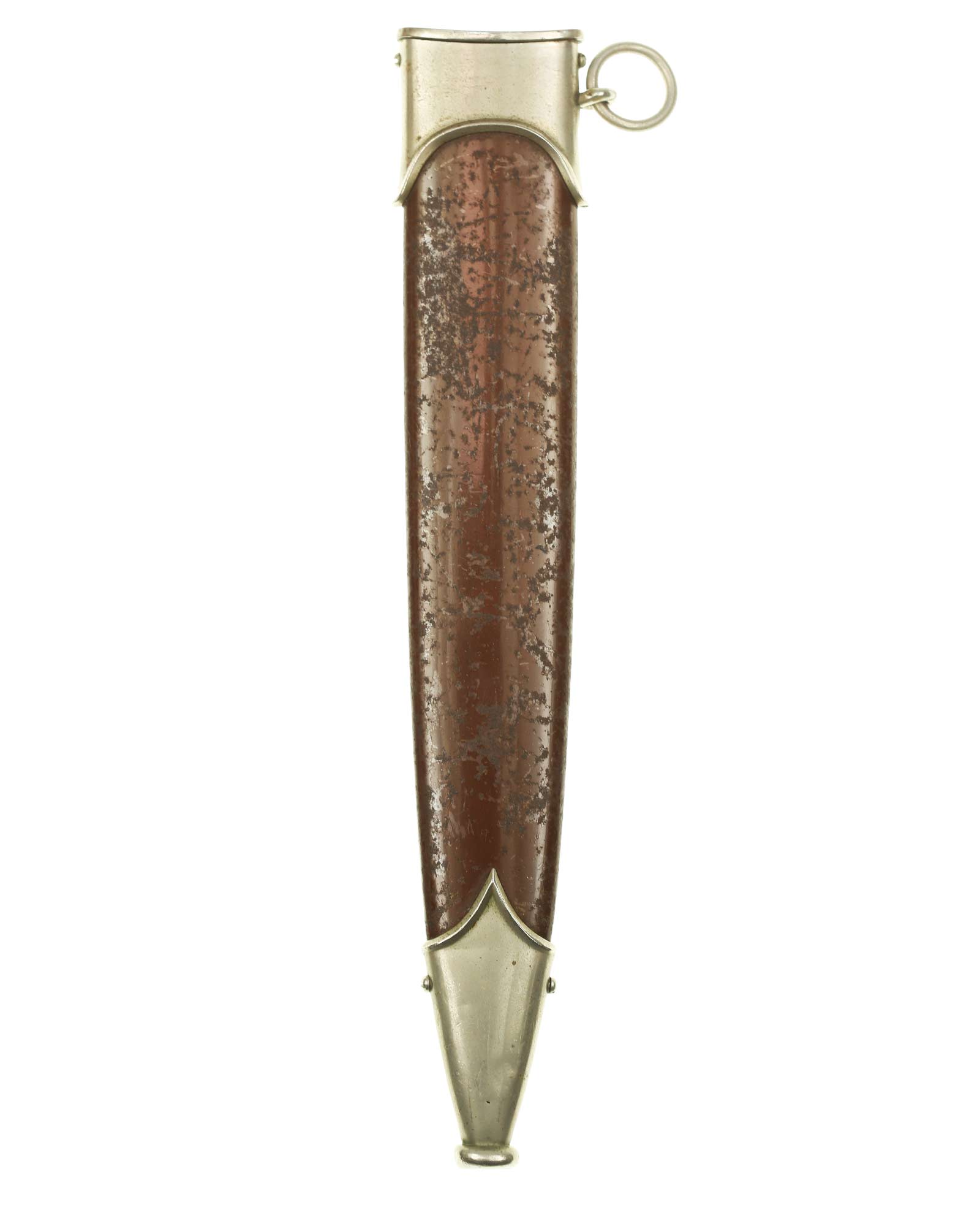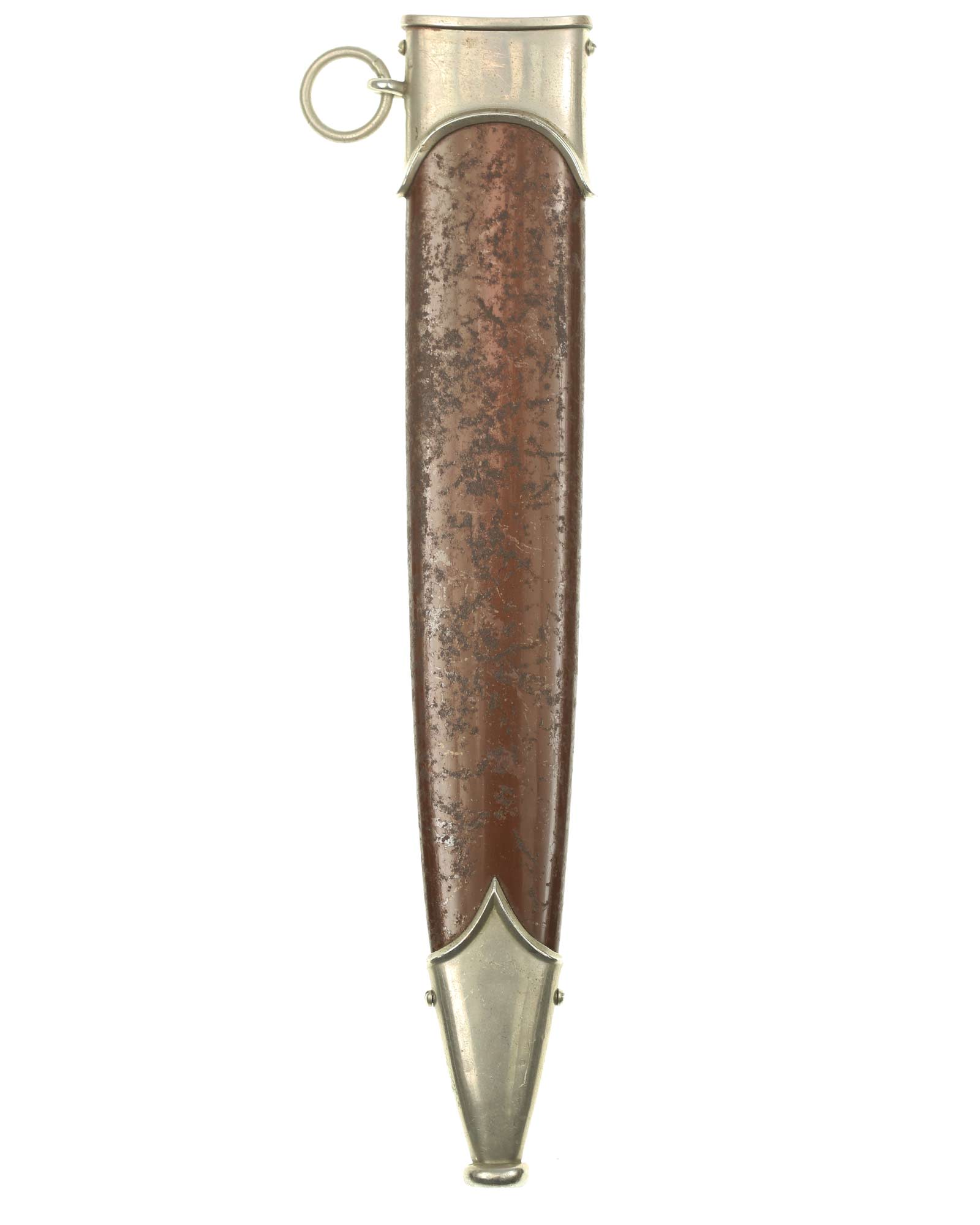 Ножны: Ножны металлические в оригинальном коричневом оксидировании, с накладными наконечником и устьем с кольцом. Наконечник и устье ножен крепятся при помощи двух винтов.