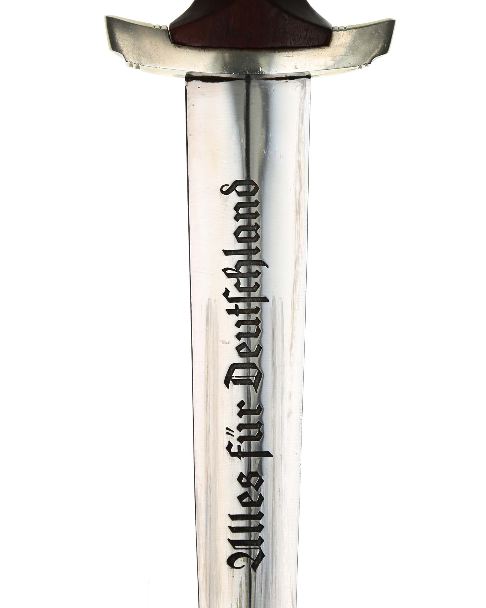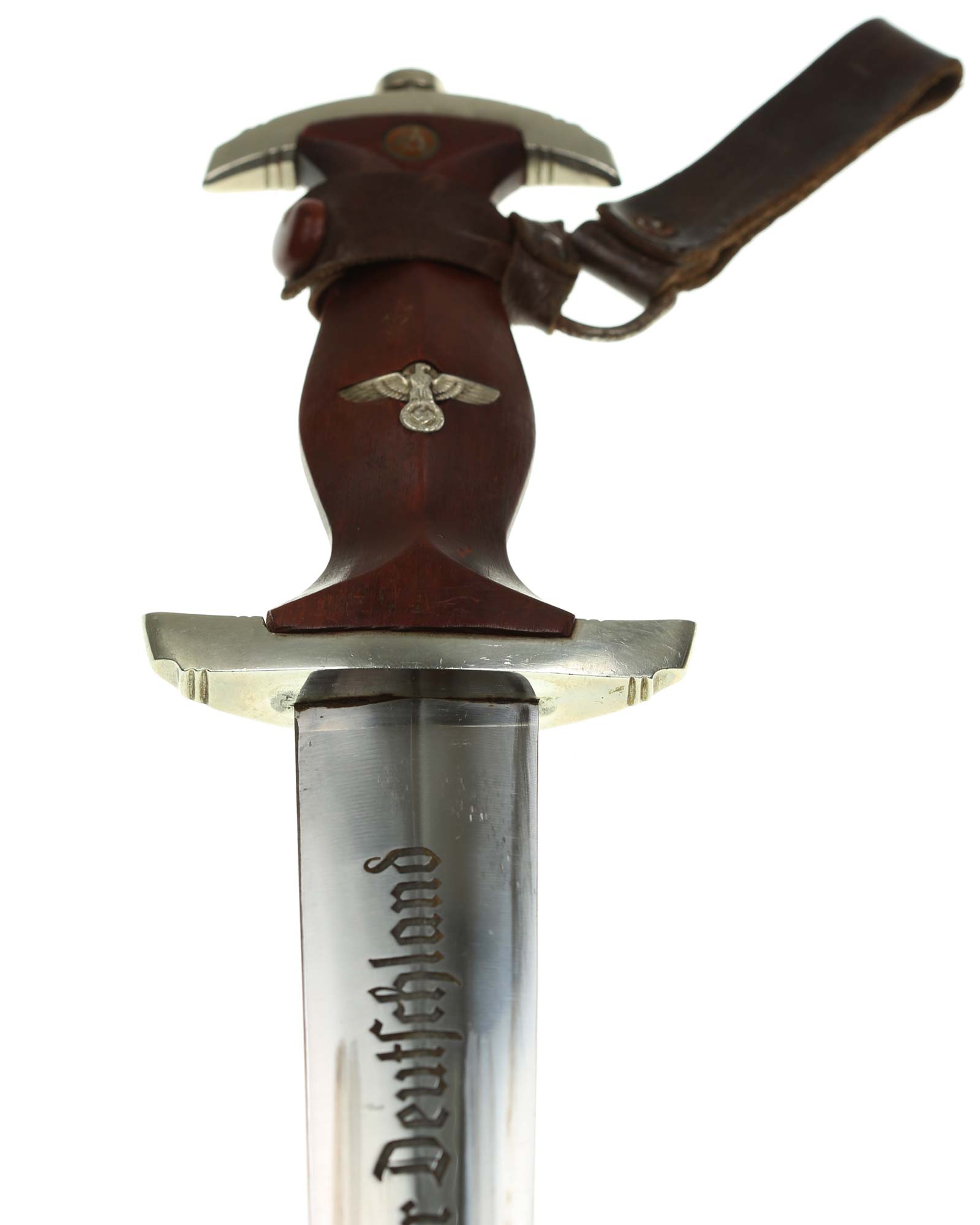 Клинок: Клинок кинжала прямой, стальной, двулезвийный, кинжального типа, с выраженным центральным ребром. На одной стороне клинка методом травления нанесен девиз СА «Всё для Германии» (Alles für Deutchland). Клинок на оборотной стороне у основания стоит клеймо производителя Братья Хеллер Мариенталь (Geb. Heller Marienthal).