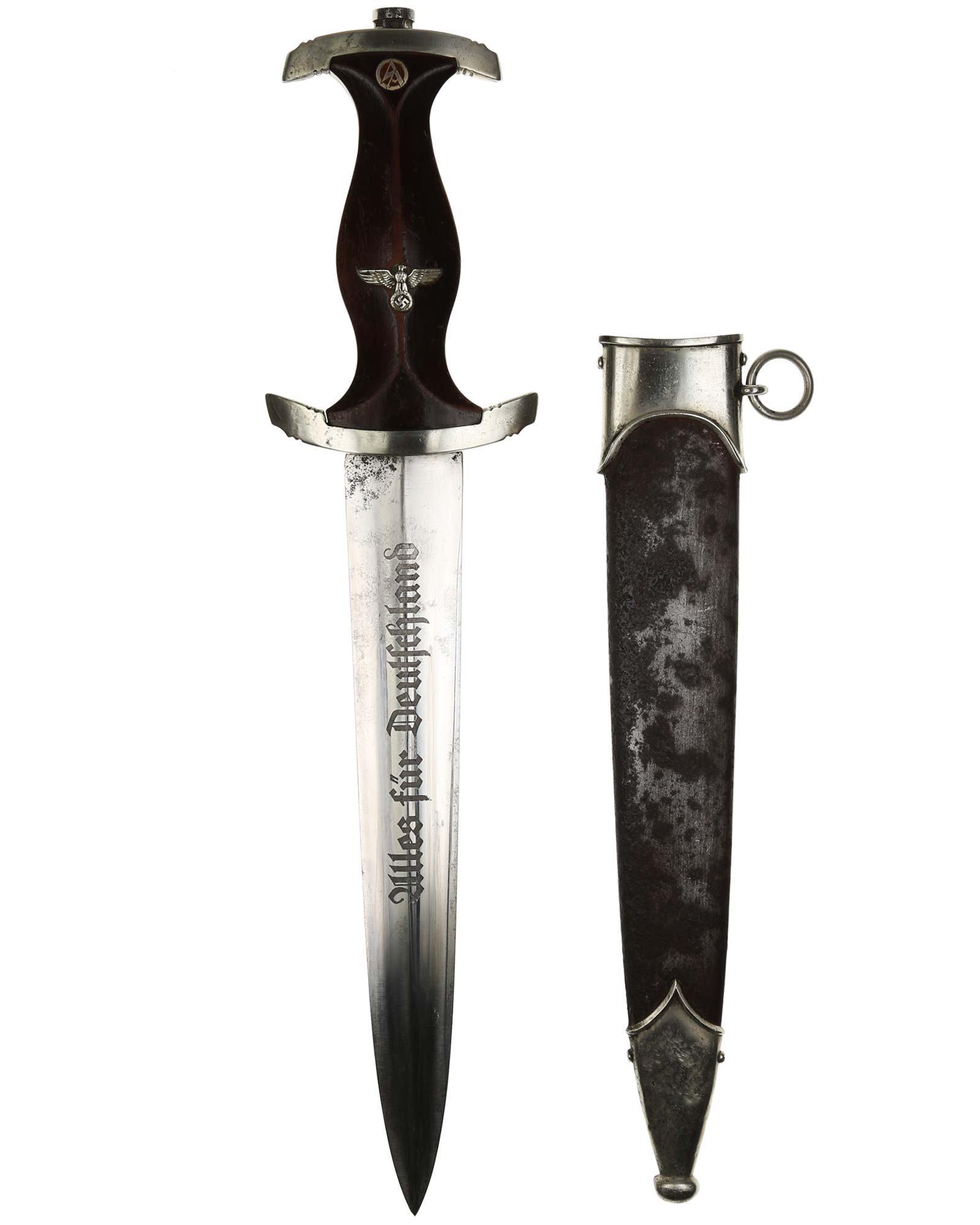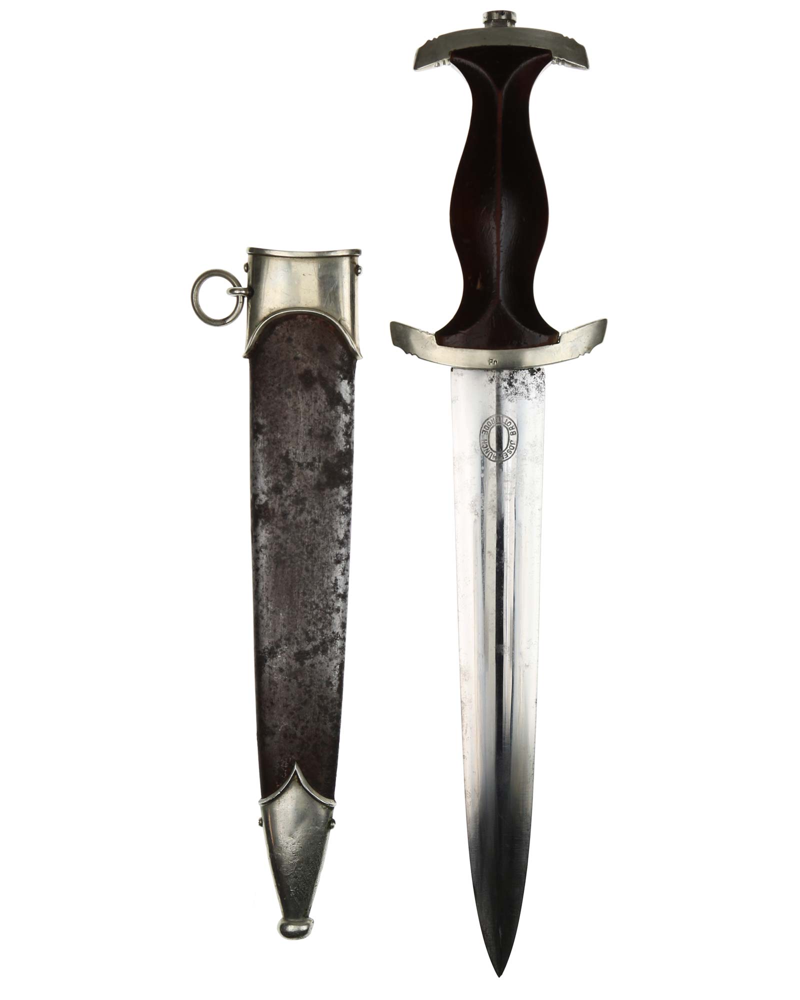 Ранний кинжал штурмовых отрядов СА образца 1933 года. Ранний период производства, 1933-1935 годы. Производитель фирма Josef Münch Brotterode (Йозеф Мюнх Броттеродэ). Длина в ножнах 37,0 см.