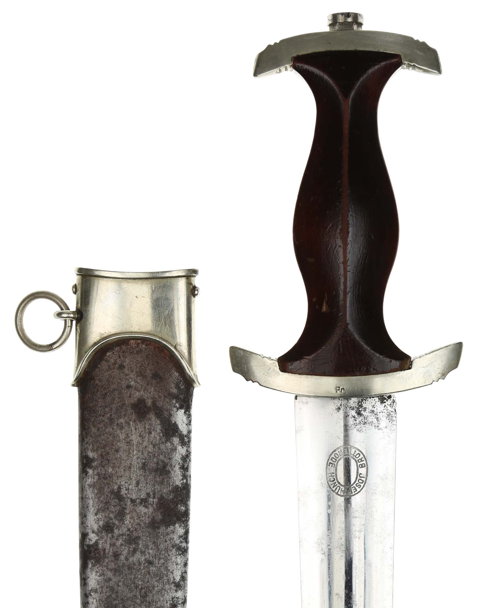 Клинок: Клинок кинжала прямой, стальной, двулезвийный, кинжального типа, с выраженным центральным ребром. На одной стороне клинка методом травления нанесен девиз СА «Всё для Германии» (Alles für Deutchland). Клинок на оборотной стороне у основания стоит клеймо производителя Йозеф Мюнх Броттеродэ (Josef Münch Brotterode).