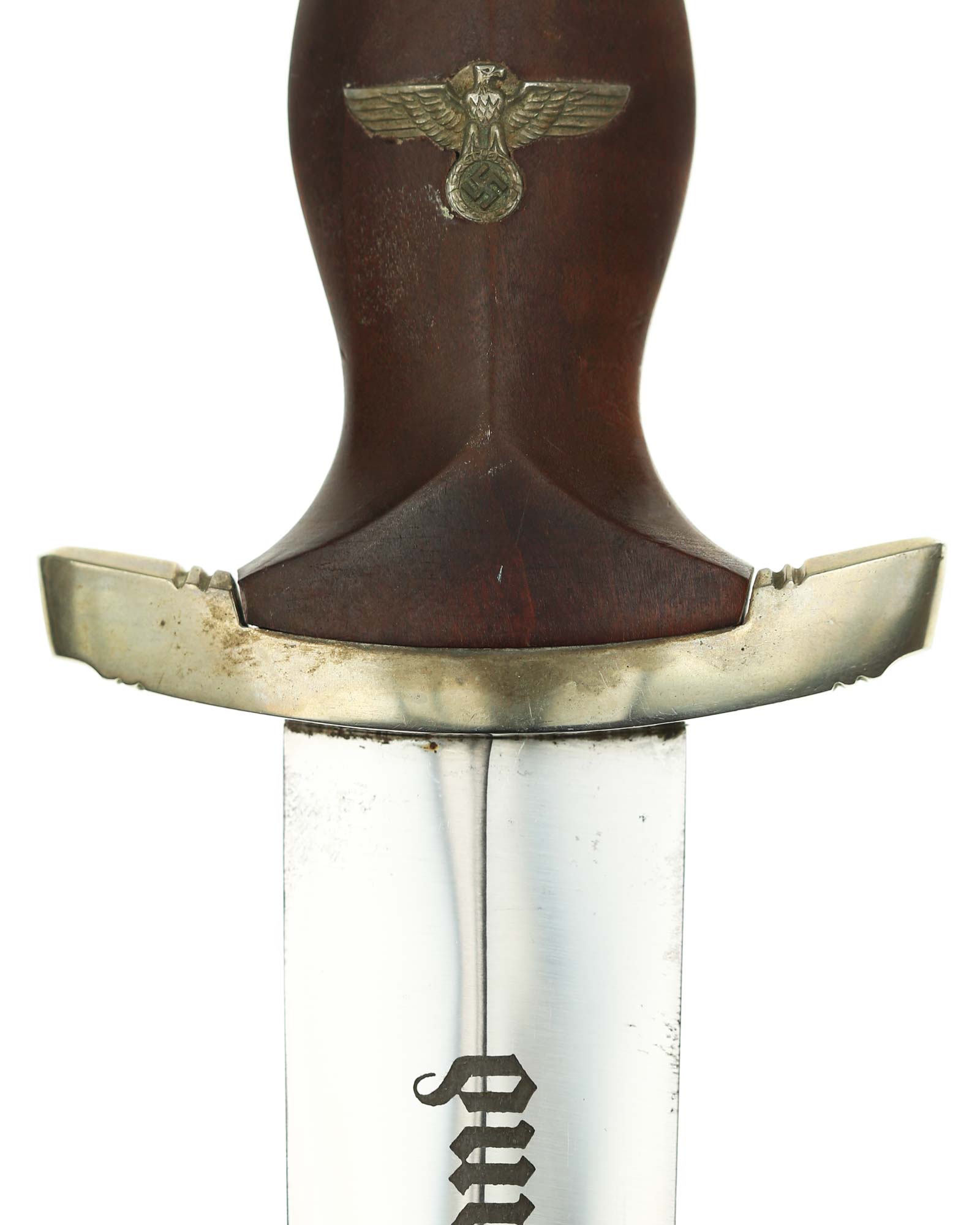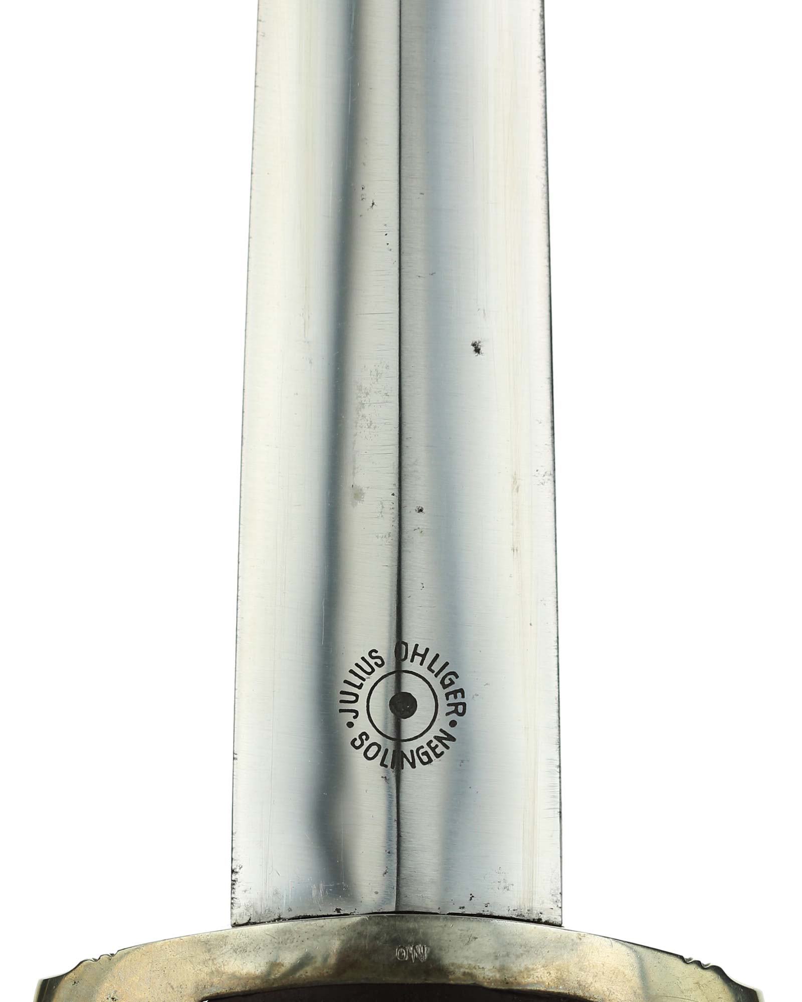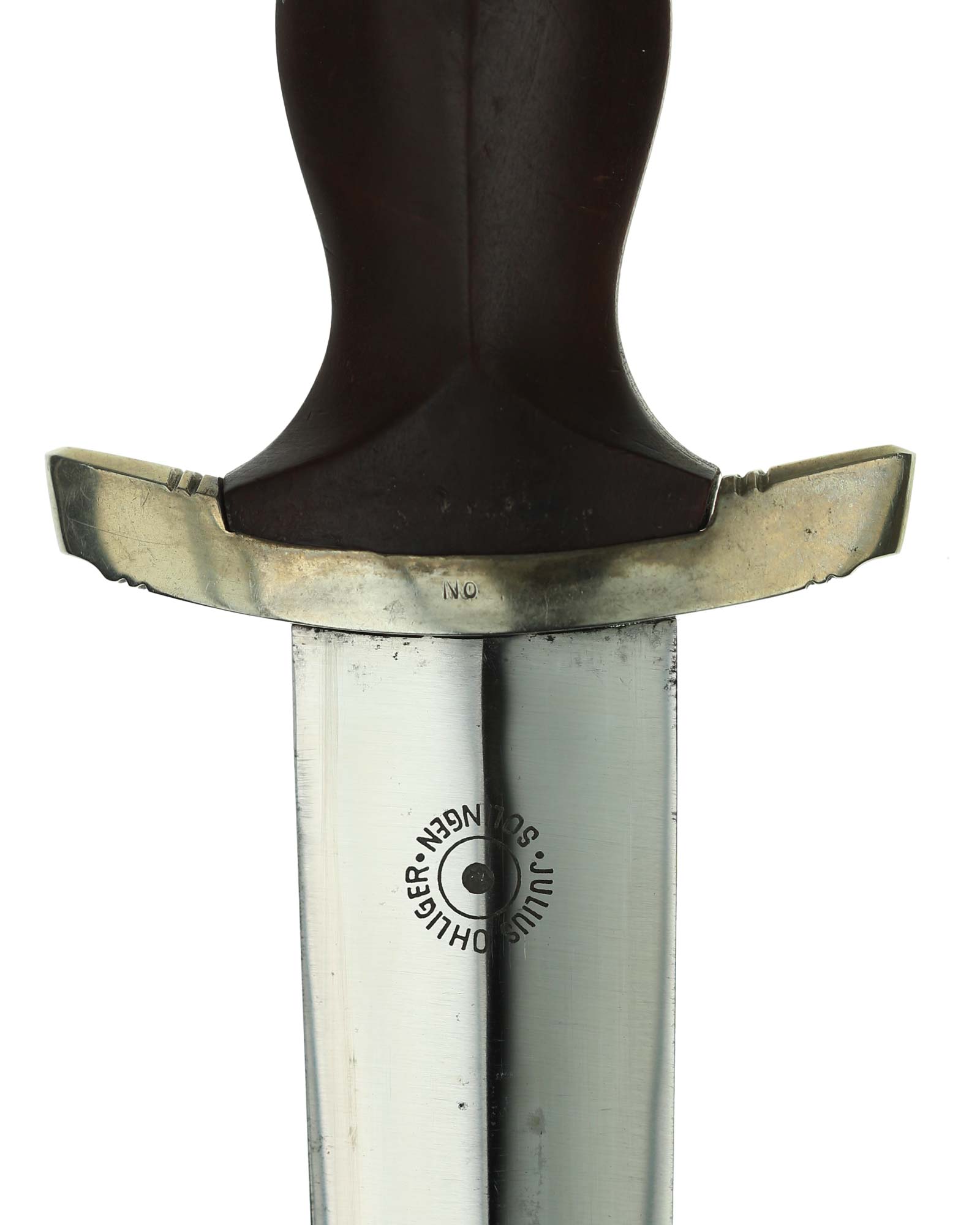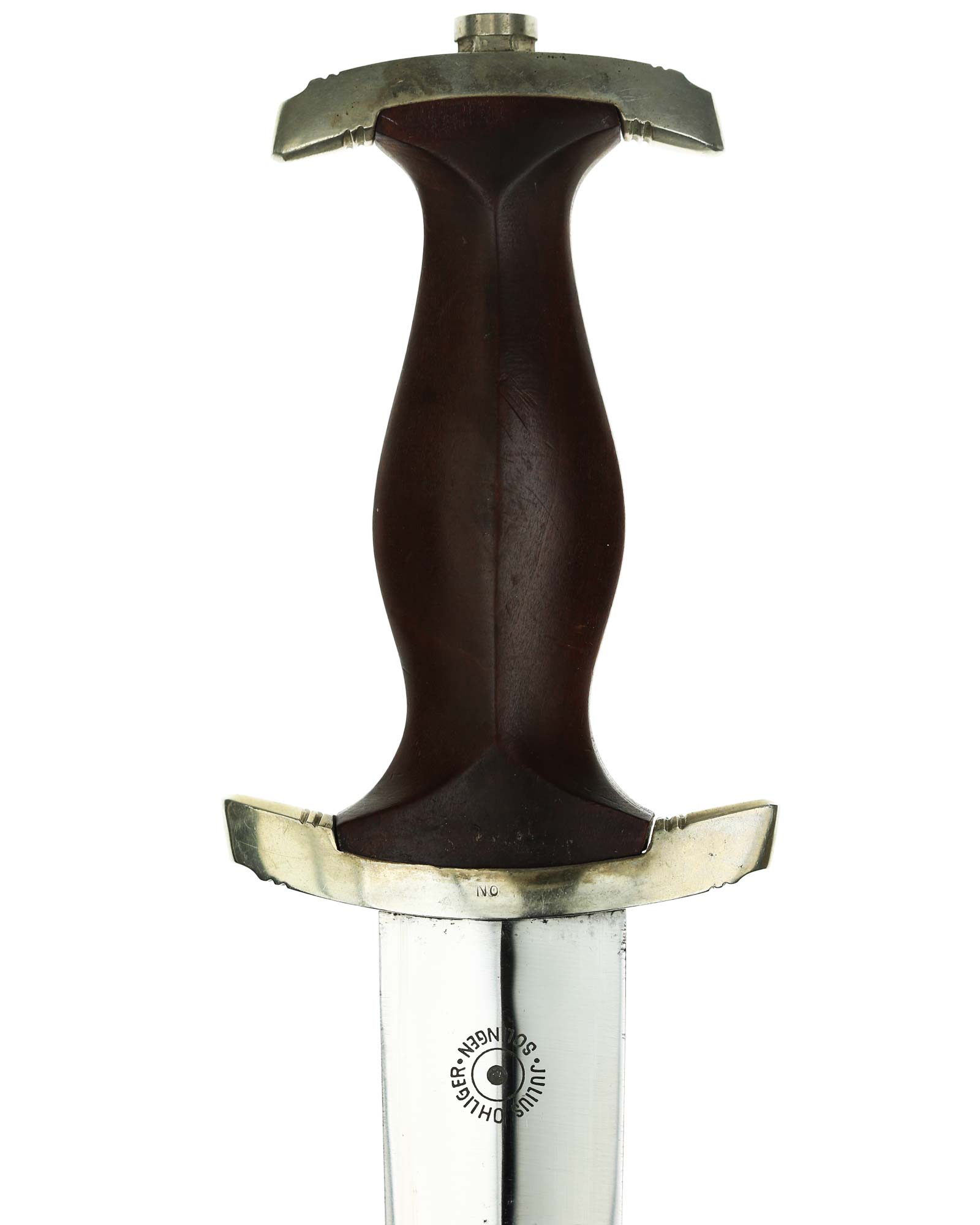 Клинок: Клинок кинжала прямой, стальной, двулезвийный, кинжального типа, с выраженным центральным ребром. На одной стороне клинка методом травления нанесен девиз СА «Всё для Германии» (Alles für Deutchland). Клинок на оборотной стороне у основания стоит клеймо производителя Юлиус Олигер Золинген (Julius Ohliger Solingen).