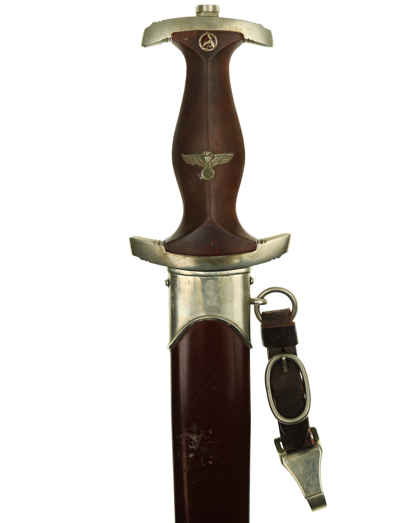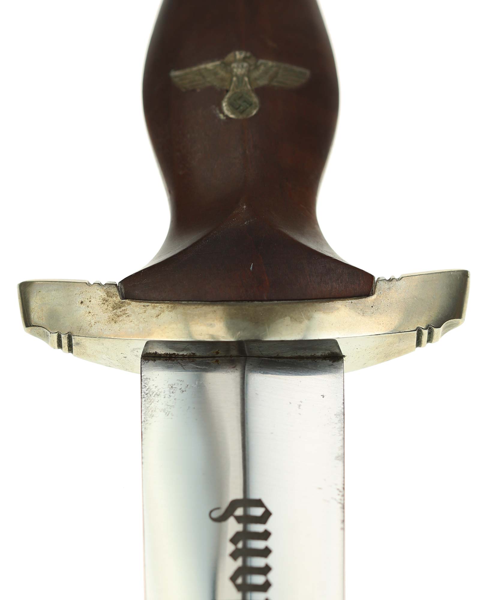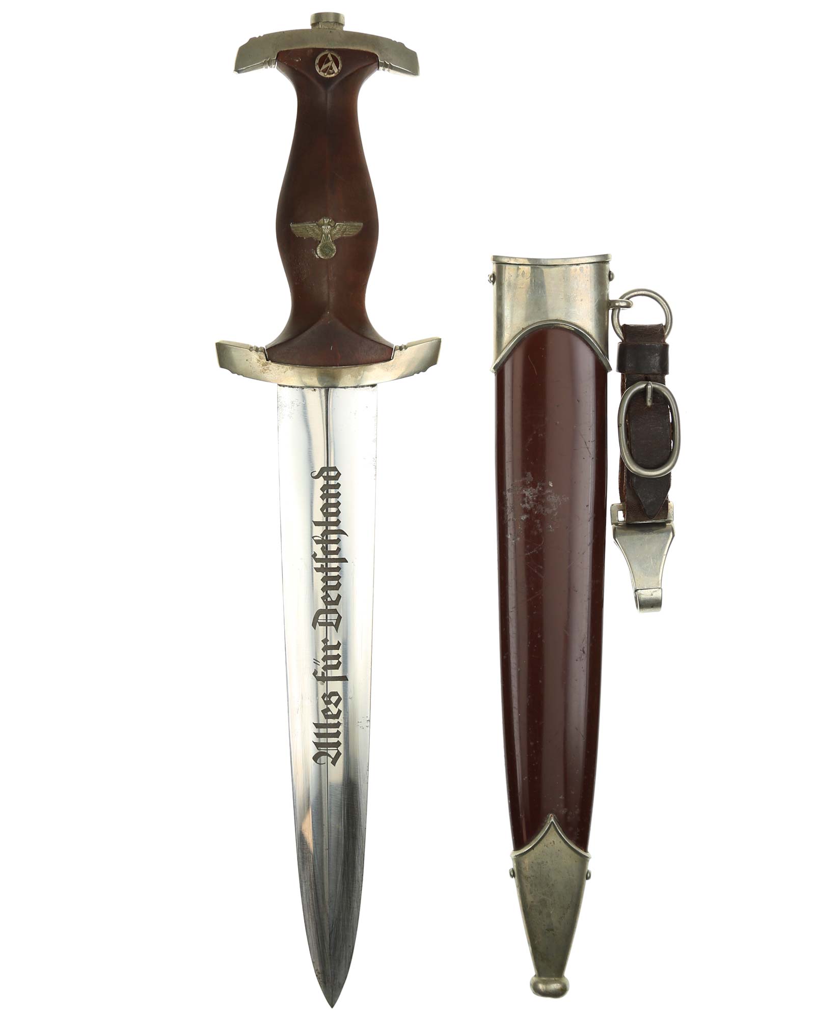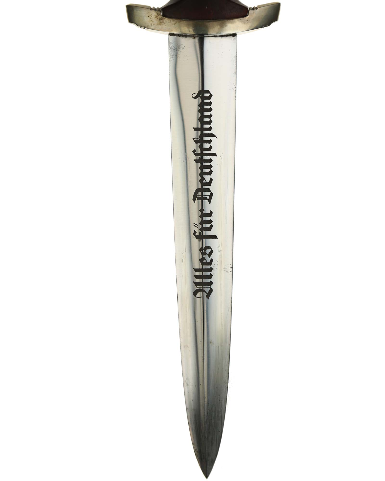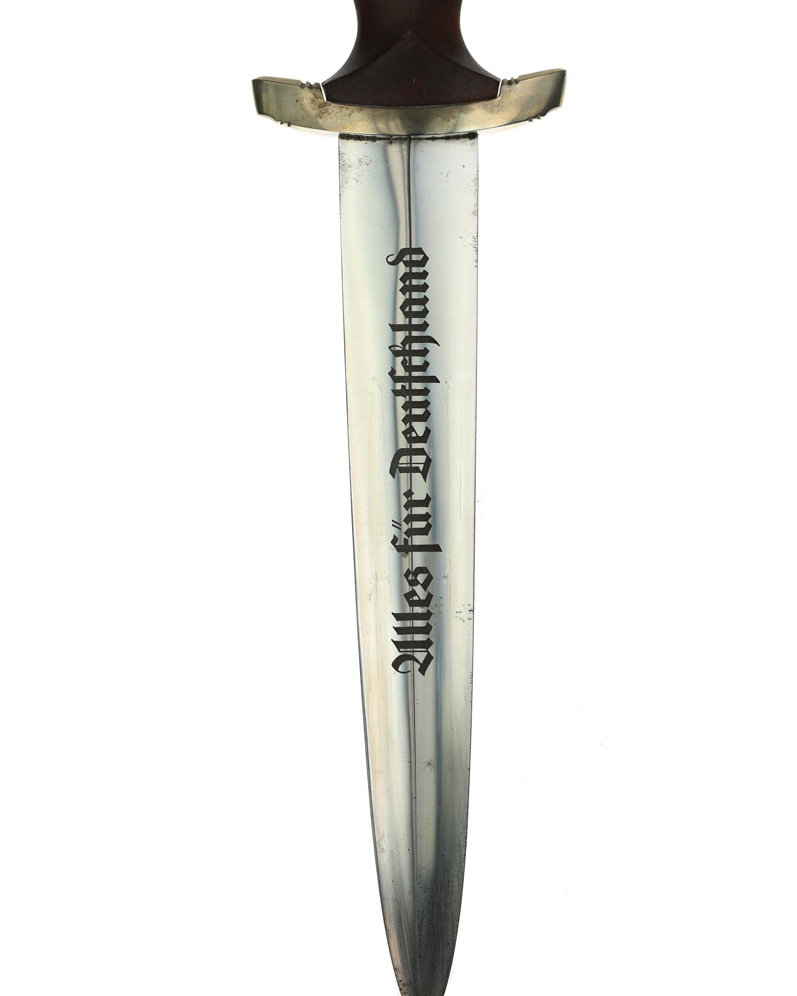 Клинок: Клинок кинжала прямой, стальной, двулезвийный, кинжального типа, с выраженным центральным ребром. На одной стороне клинка методом травления нанесен девиз СА «Всё для Германии» (Alles für Deutchland). Клинок на оборотной стороне у основания стоит клеймо производителя Юлиус Олигер Золинген (Julius Ohliger Solingen).