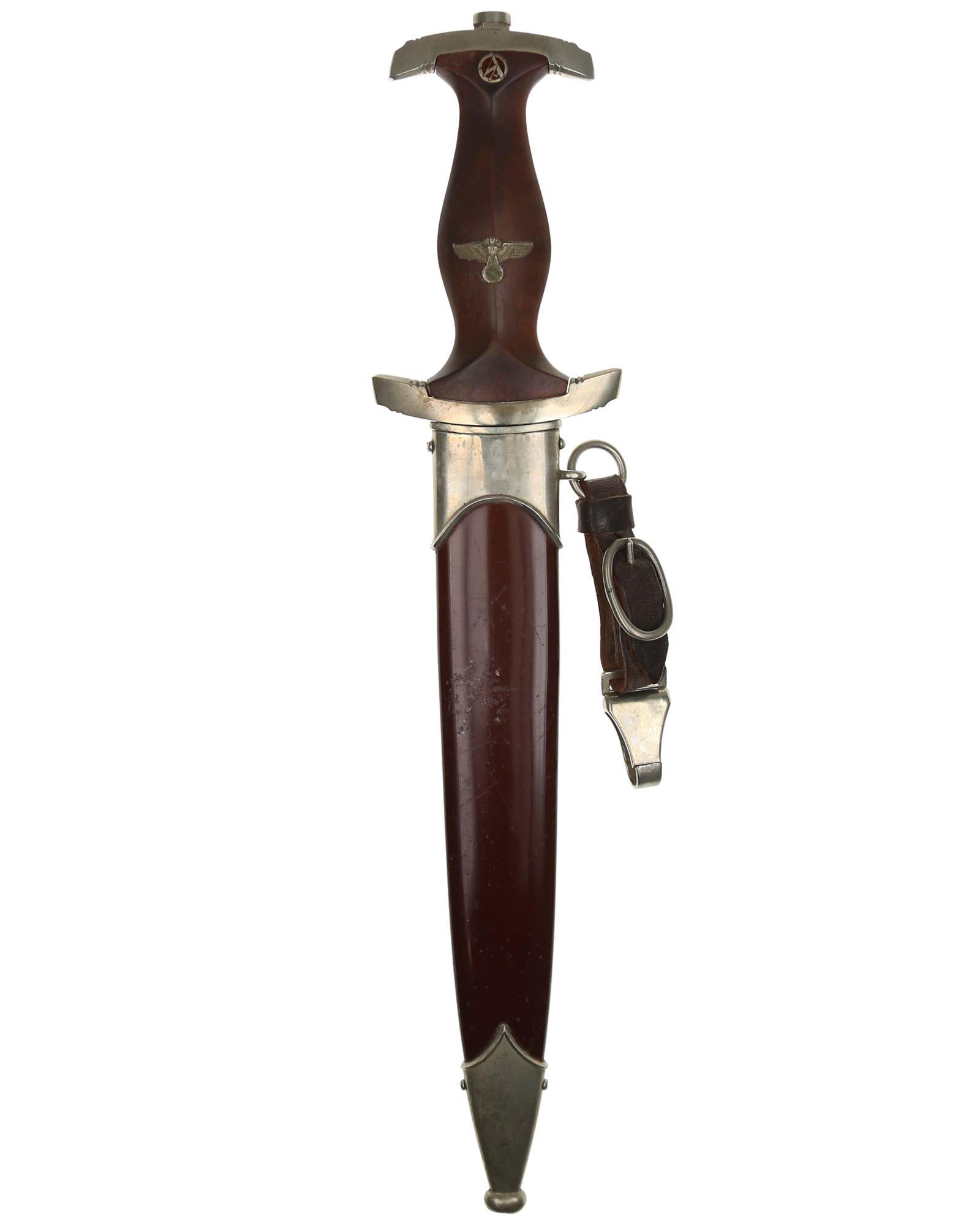 Ранний кинжал штурмовых отрядов СА образца 1933 года. Ранний период производства, 1933-1935 годы. Производитель фирма Julius Ohliger Solingen (Юлиус Олигер Золинген). Длина в ножнах 37,6 см.