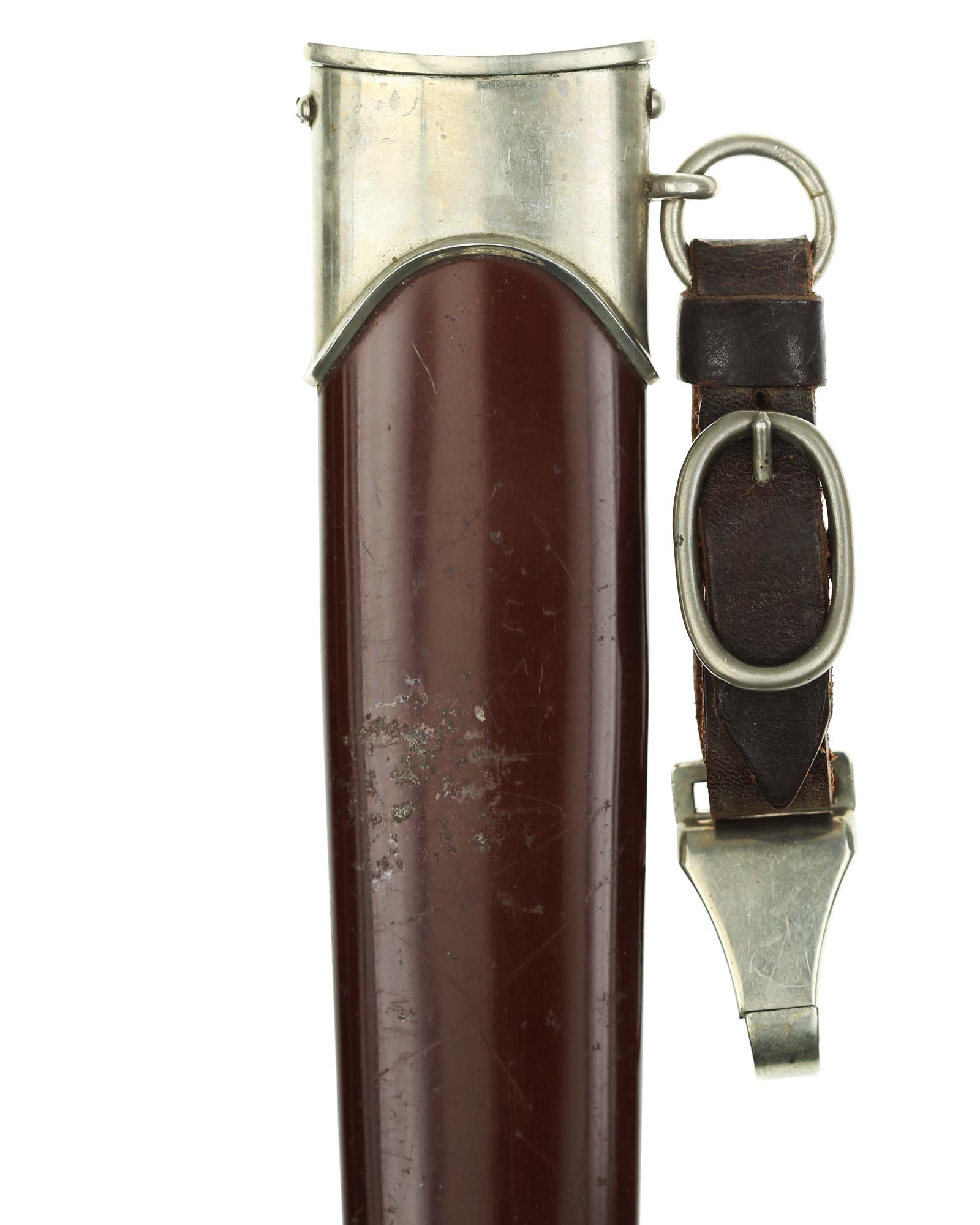 Ножны: Ножны стальные, окрашенные в коричневый цвет, с накладными наконечником и устьем с кольцом. Наконечник и устье ножен крепятся при помощи двух винтов. Прибор ножен изготовлен из белого металла и состоит из устья с гайкой и кольцом для подвешивания га ремень и устья с шариком.