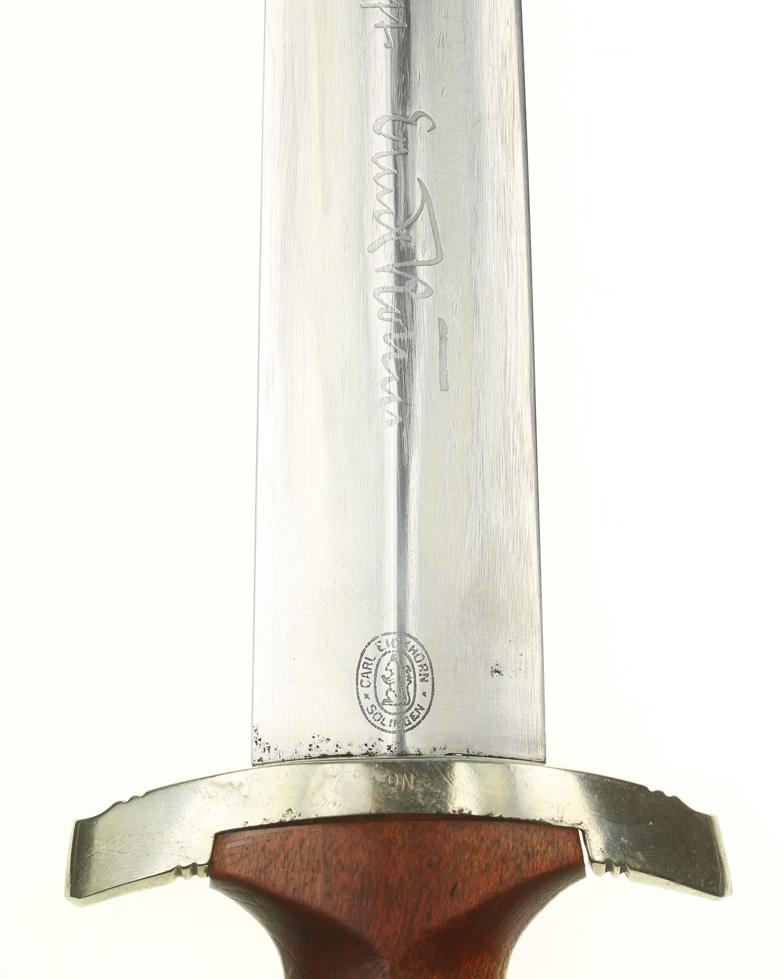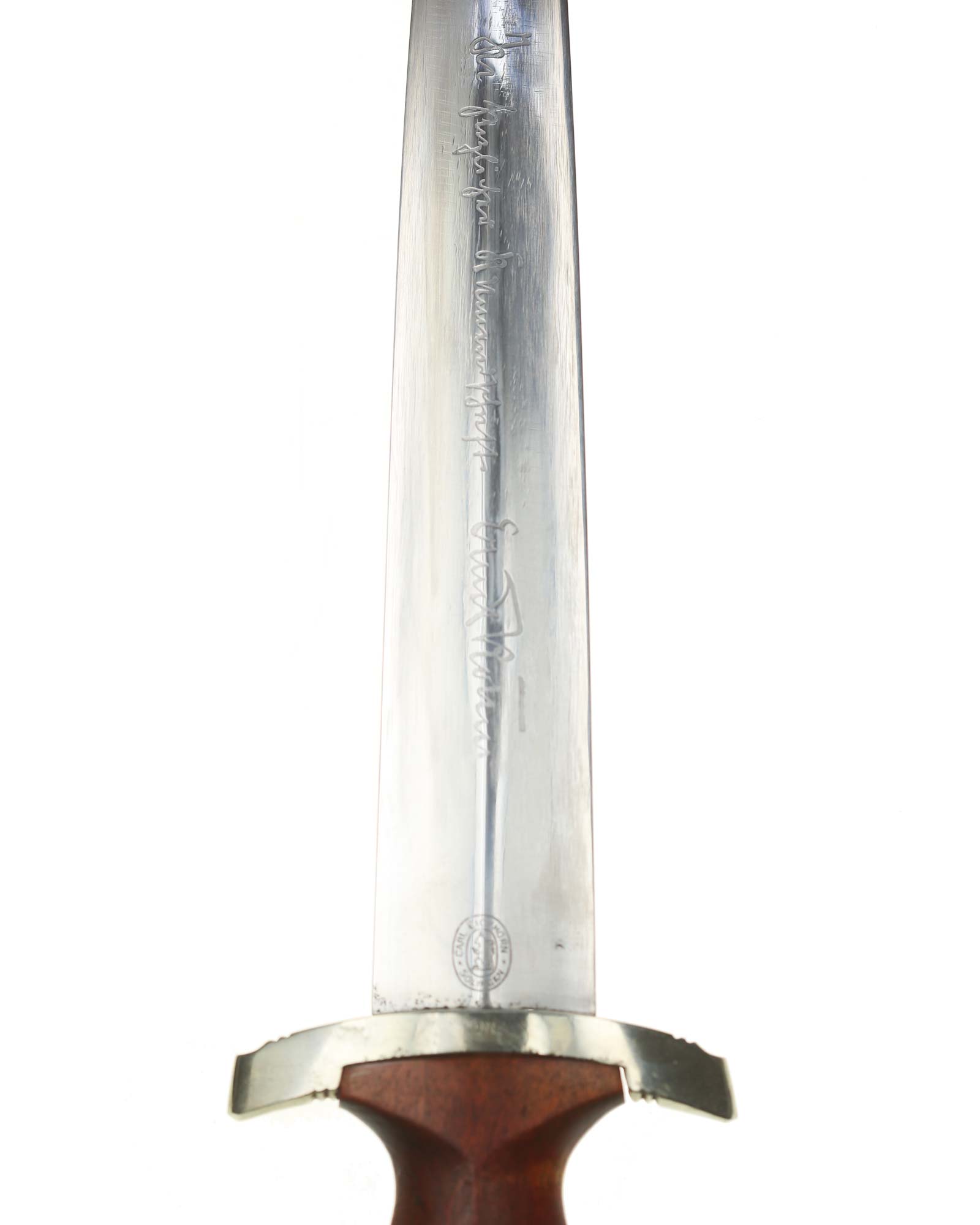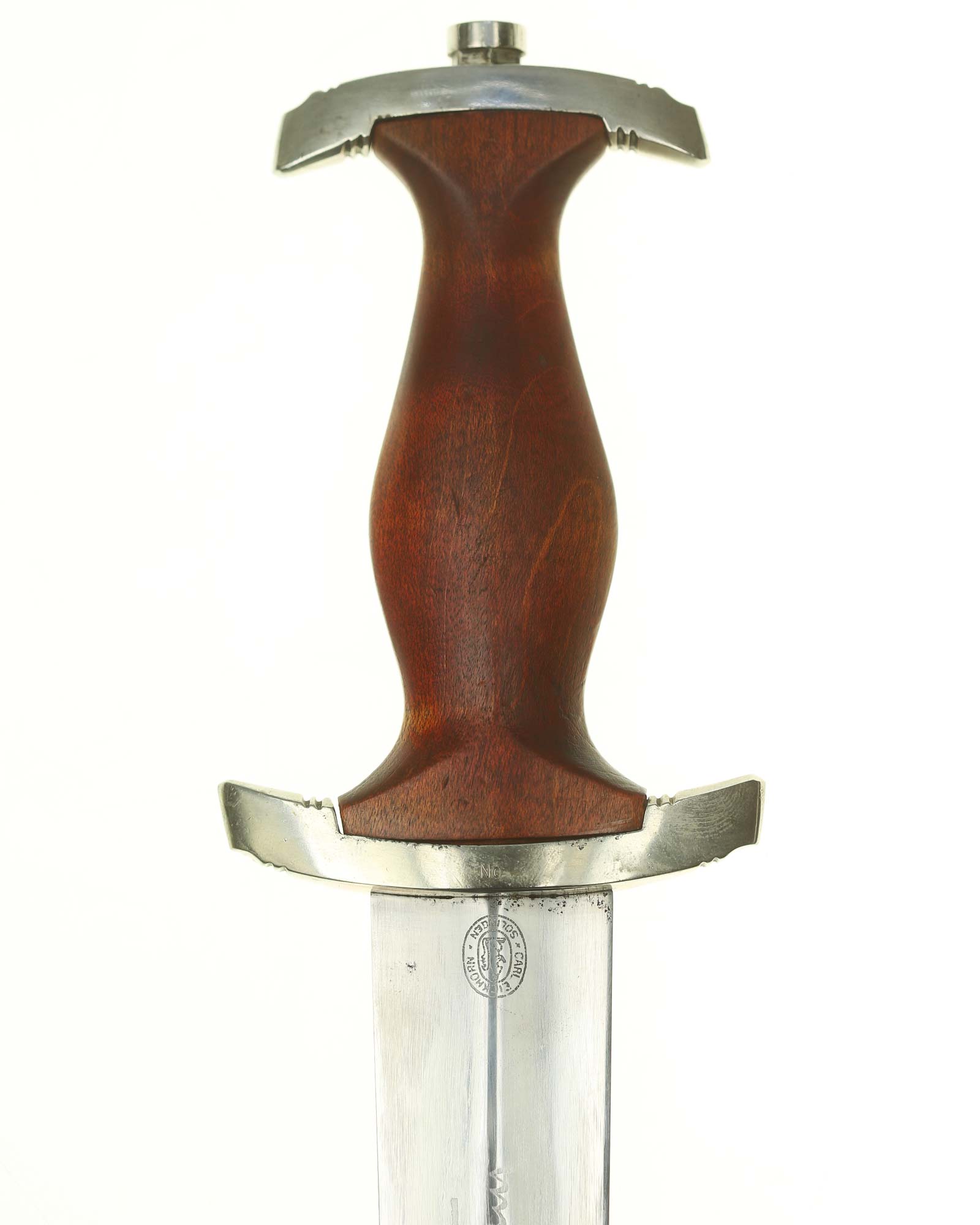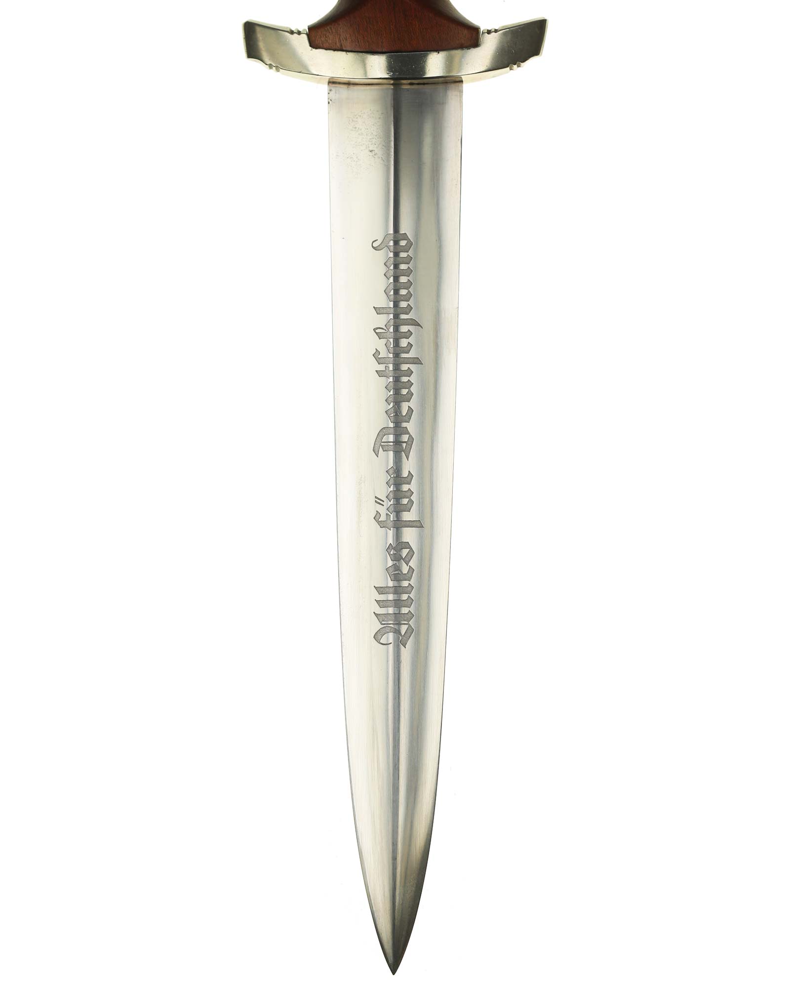 Клинок: Клинок стальной, прямой, двулезвийный, 4-гранный в сечении, без долов. На клинке готическим шрифтом нанесена надпись «Alles für Deutchland» ( «Всё для Германии»). На другой стороне нанесена надпись «ln herzlicher Kameradschaft Ernst Röhm» (В знак сердечной дружбы Эрнст Рём). Надписи и клейма: возле пяты клинка с тыльной стороны – травлёное клеймо «Carl Eickhorn Solingen» — клеймо немецкой фирмы «Карл Айкхорн Золинген».