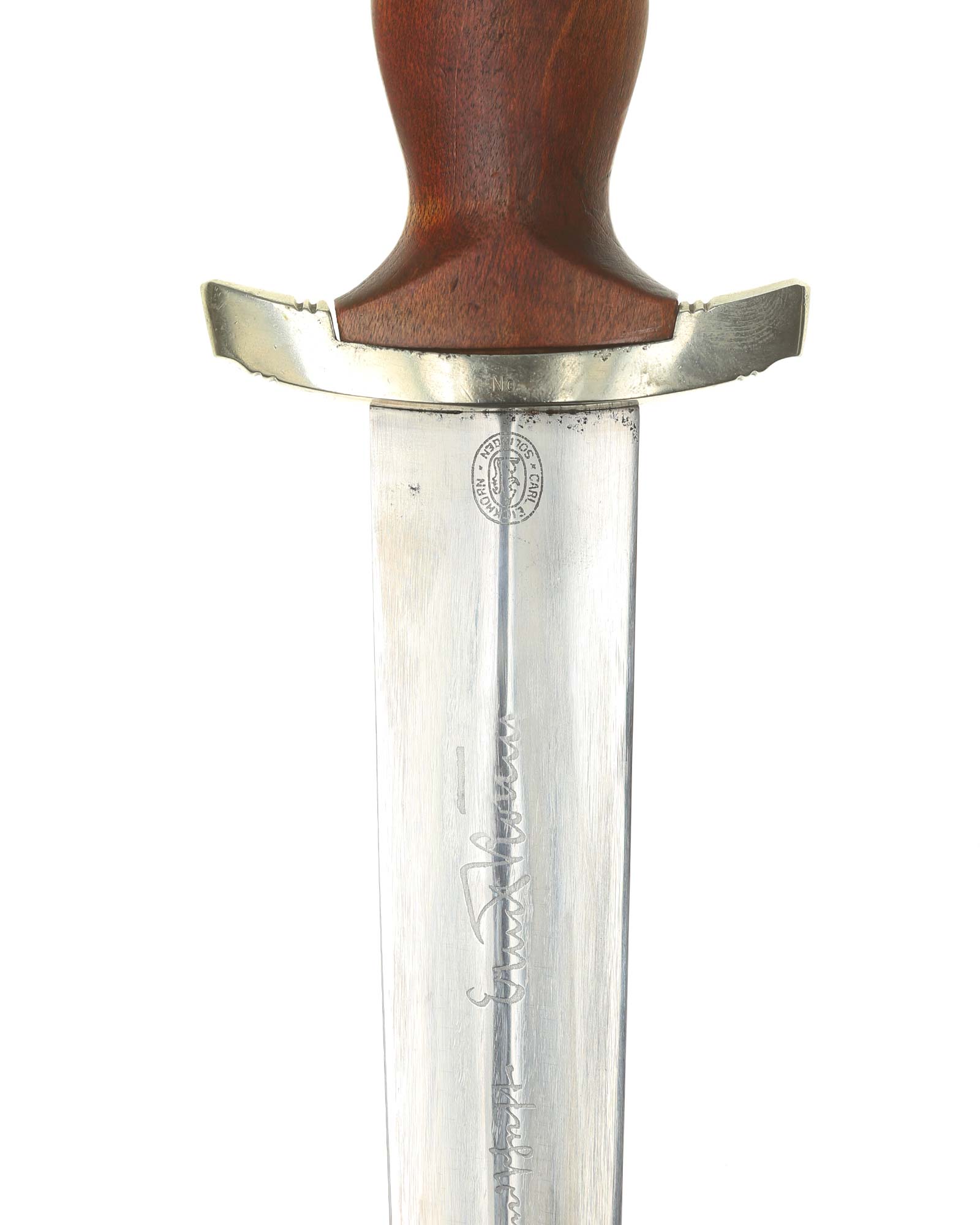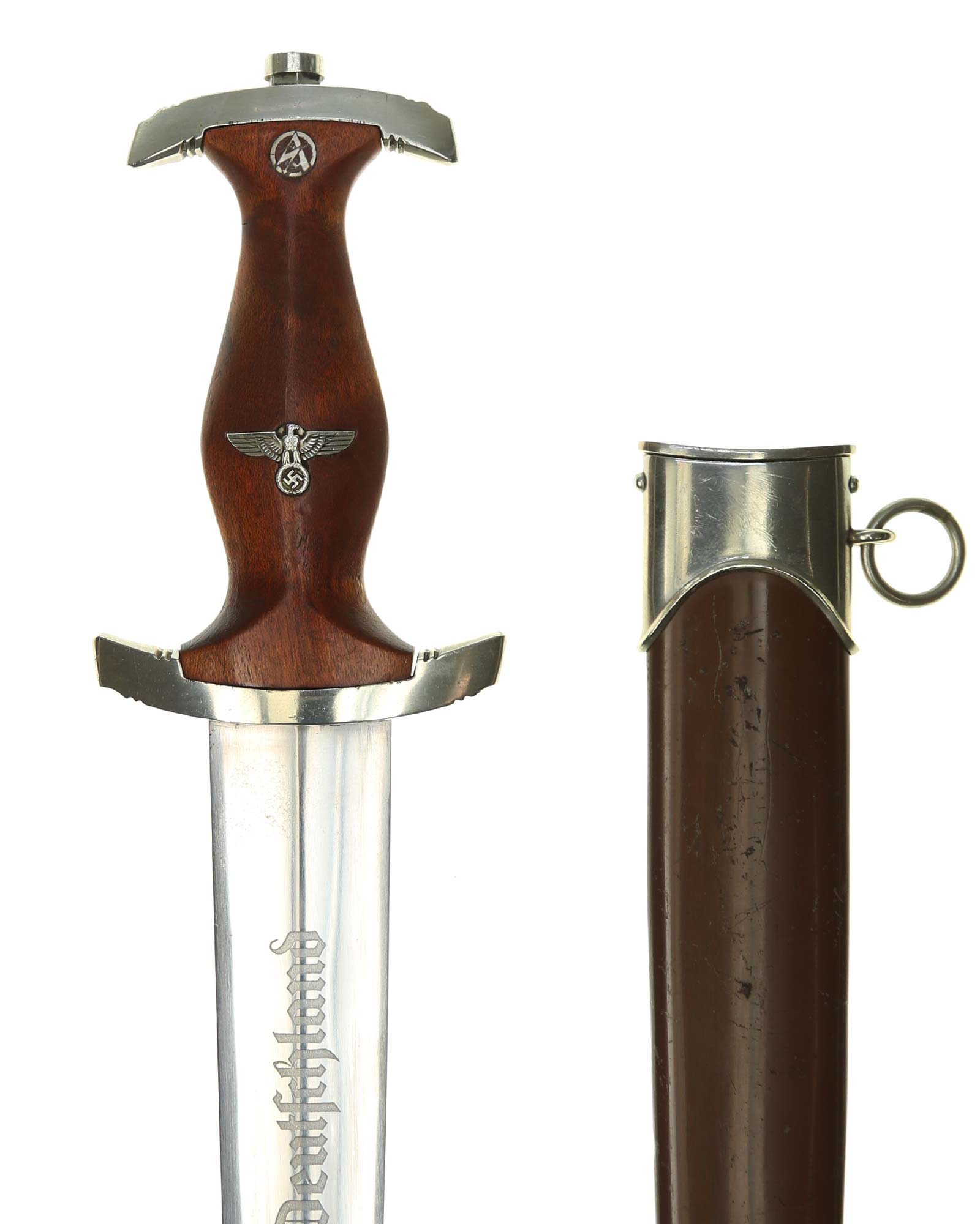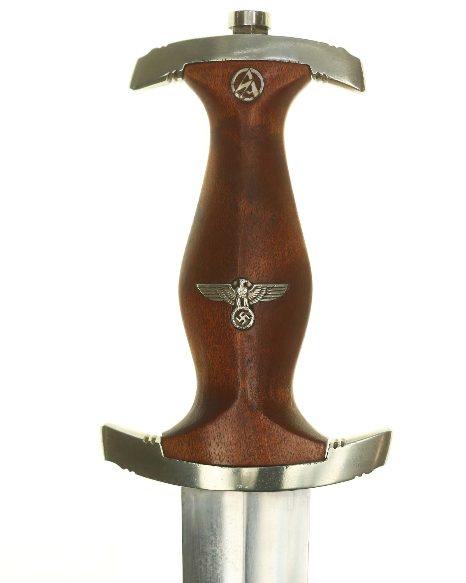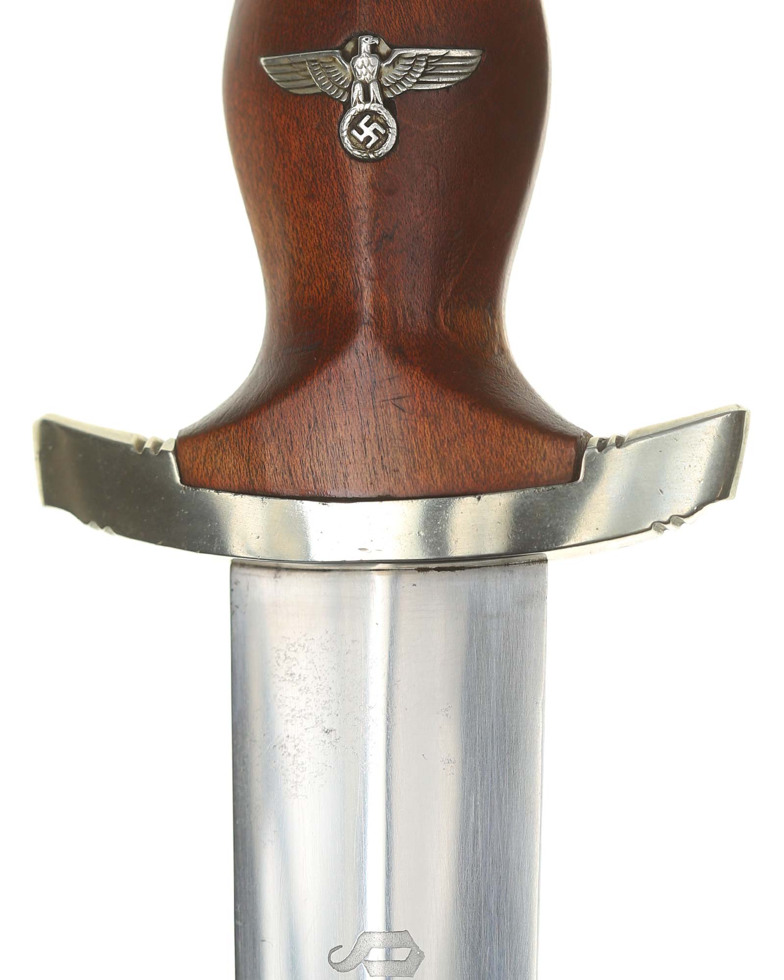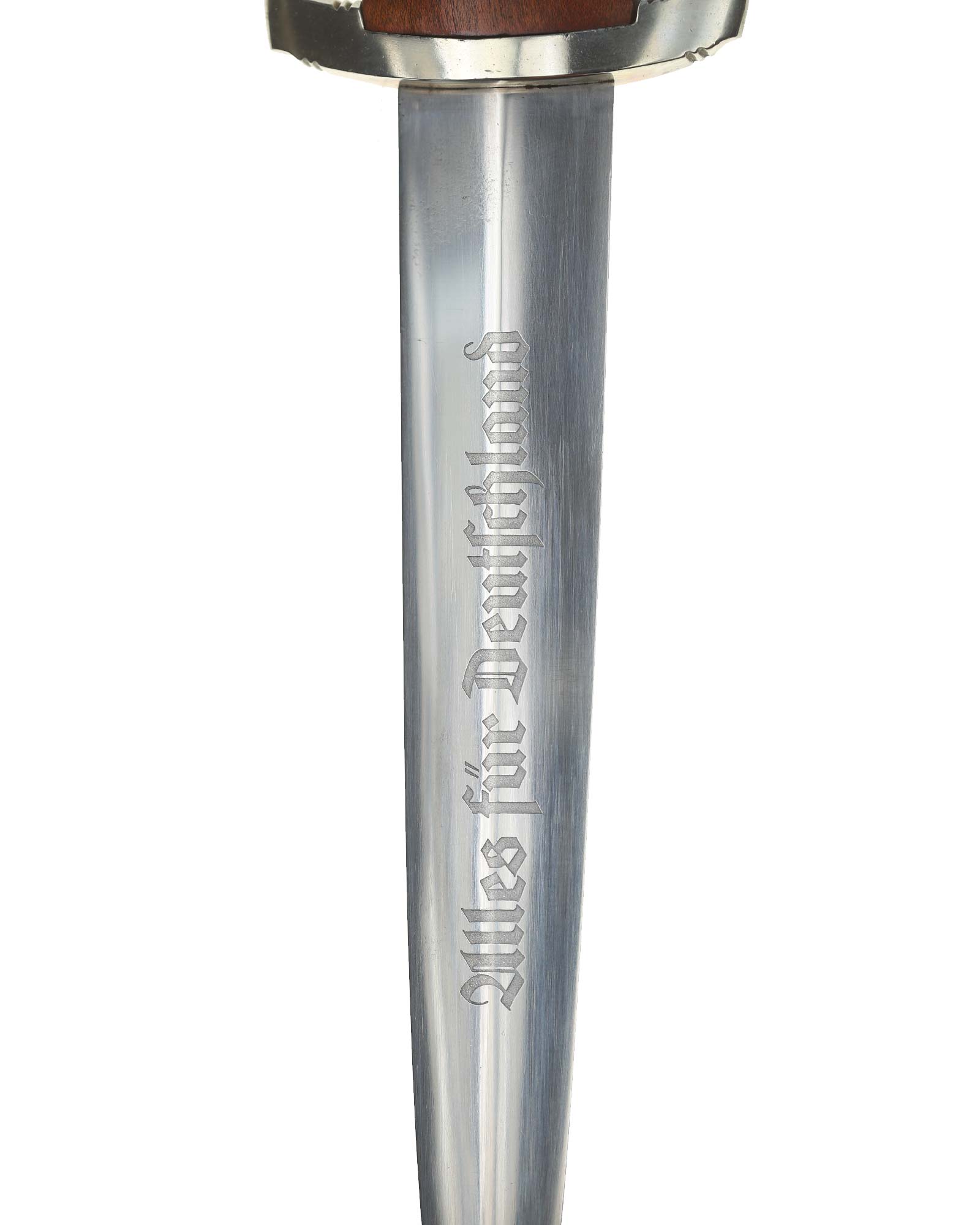 Клинок: Клинок стальной, прямой, двулезвийный, 4-гранный в сечении, без долов. На клинке готическим шрифтом нанесена надпись «Alles für Deutchland» ( «Всё для Германии»). На другой стороне нанесена надпись «ln herzlicher Kameradschaft Ernst Röhm» (В знак сердечной дружбы Эрнст Рём). Надписи и клейма: возле пяты клинка с тыльной стороны – травлёное клеймо «Carl Eickhorn Solingen» — клеймо немецкой фирмы «Карл Айкхорн Золинген».