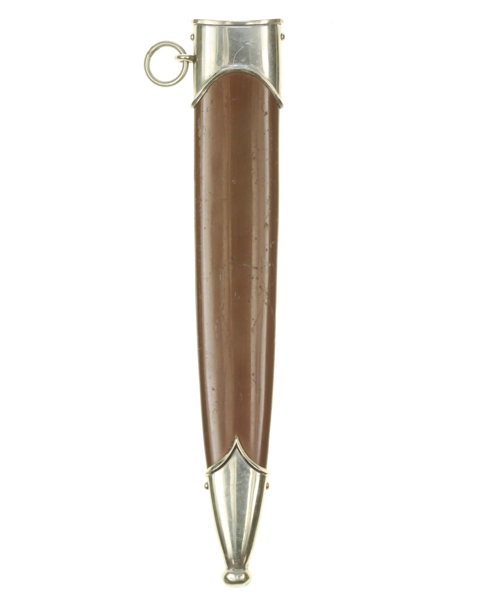 Ножны: Ножны стальные, с накладными наконечником и устьем с кольцом. Наконечник и устье ножен крепятся при помощи двух винтов. Ножны в оригинальном коричневом оксидировании.