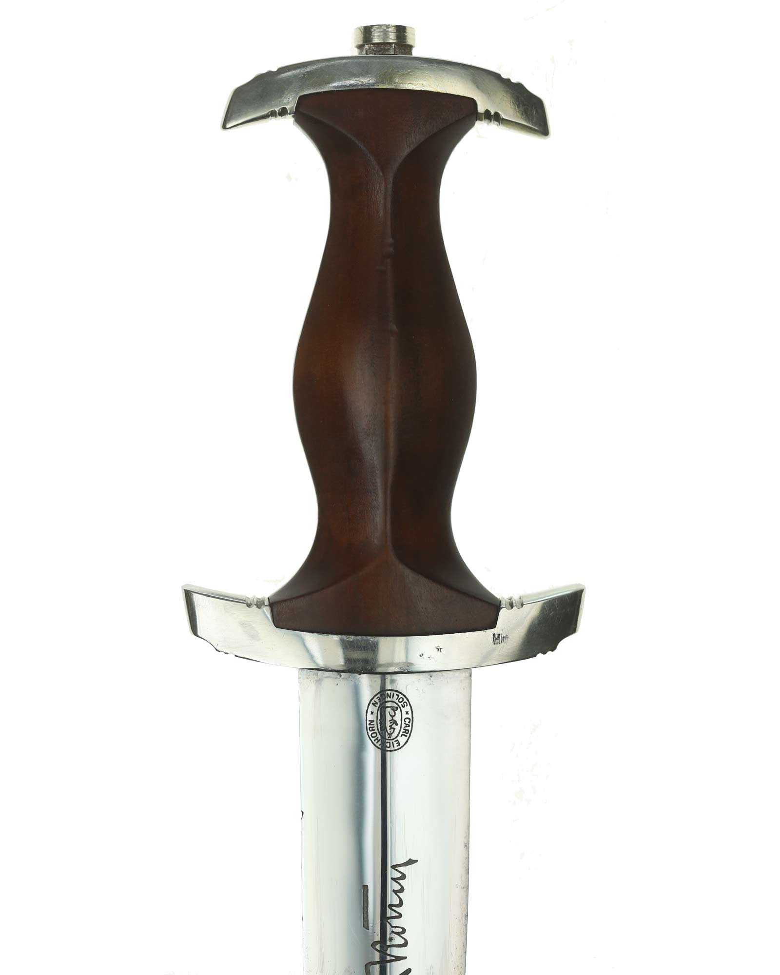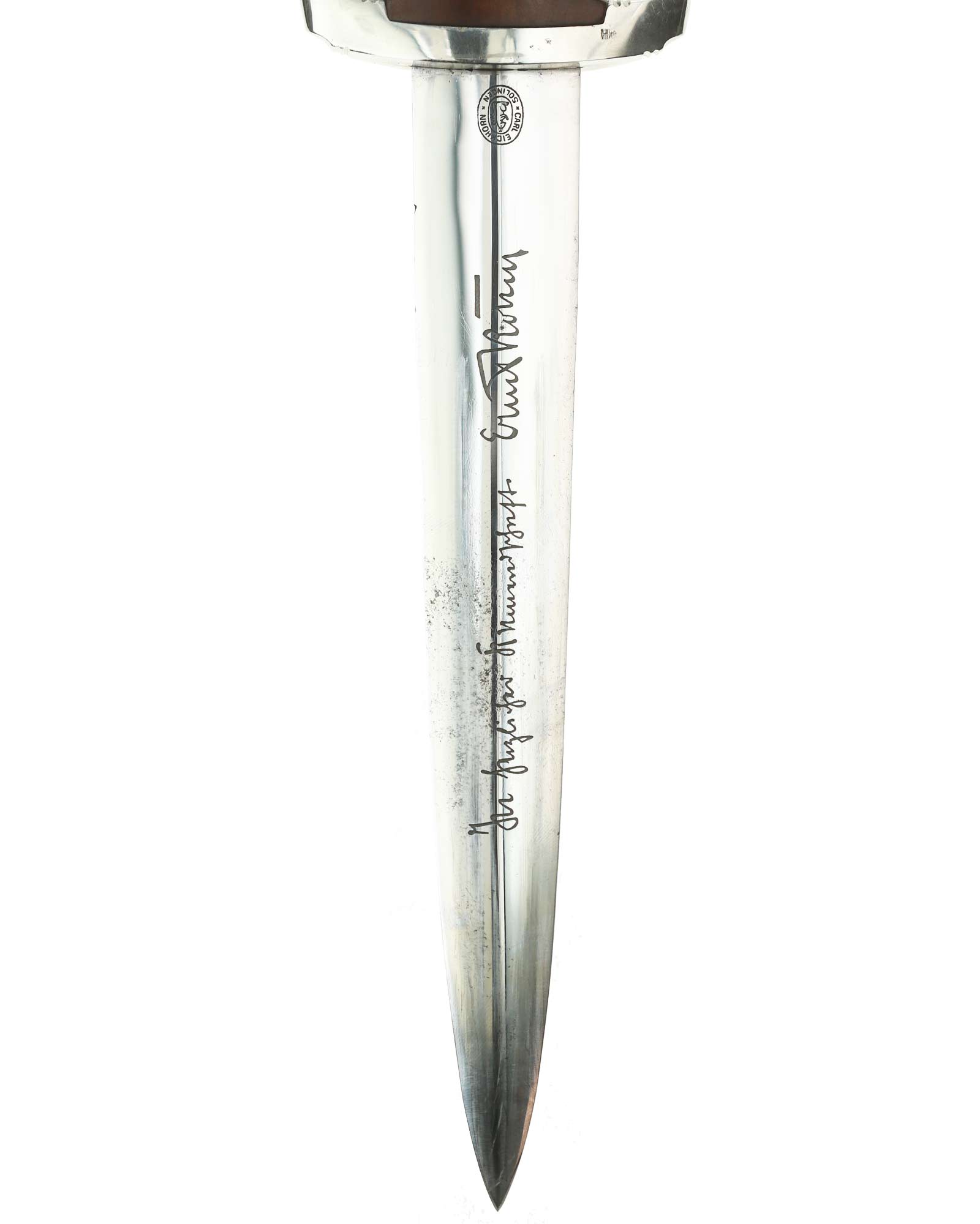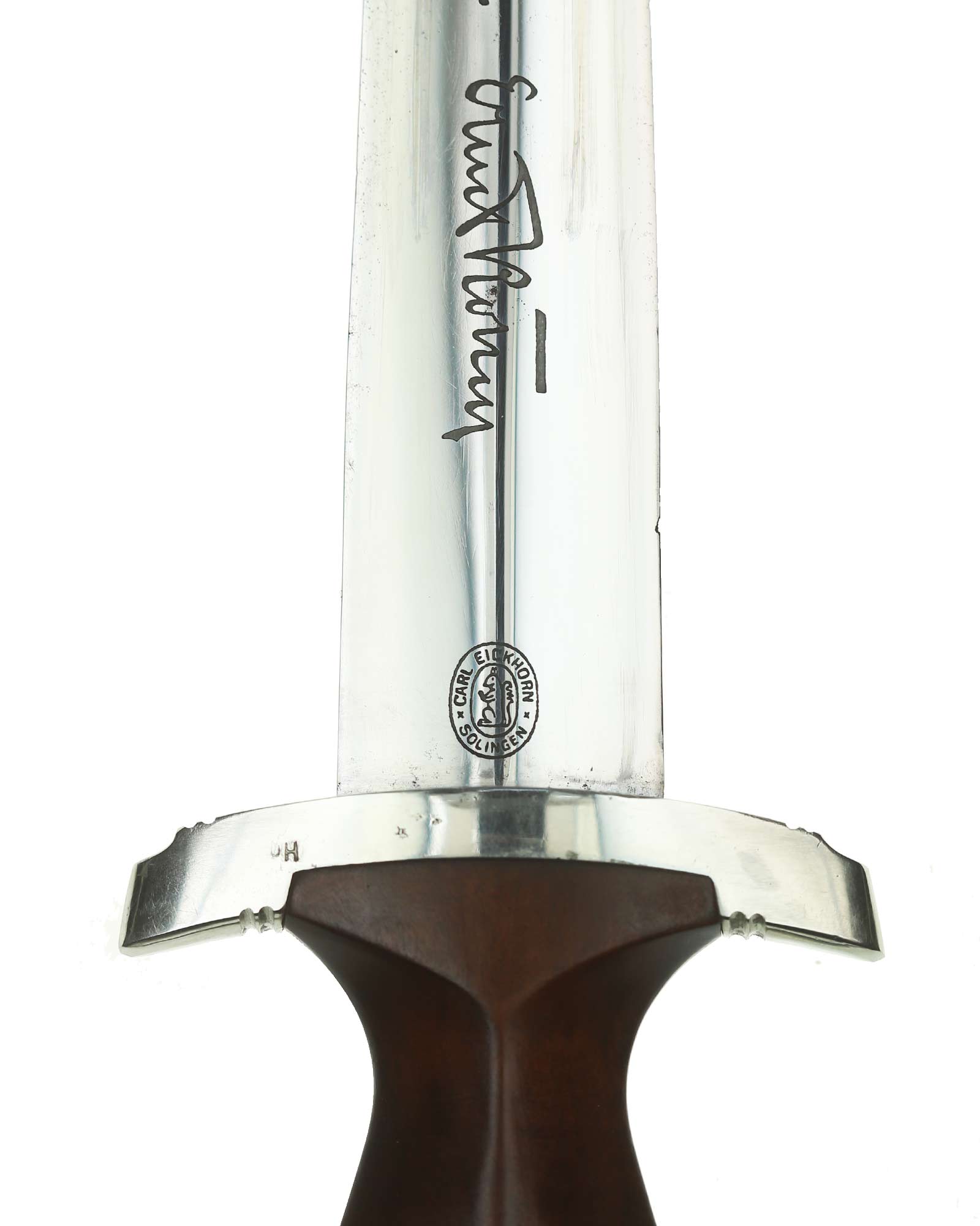 Клинок: Клинок стальной, прямой, двулезвийный, 4-гранный в сечении, без долов. На клинке готическим шрифтом нанесена надпись «Alles für Deutchland» ( «Всё для Германии»). На другой стороне нанесена надпись «ln herzlicher Kameradschaft Ernst Röhm» (В знак сердечной дружбы Эрнст Рём). Надписи и клейма: возле пяты клинка с тыльной стороны – травлёное клеймо «Carl Eickhorn Solingen» — клеймо немецкой фирмы «Карл Айкхорн Золинген».