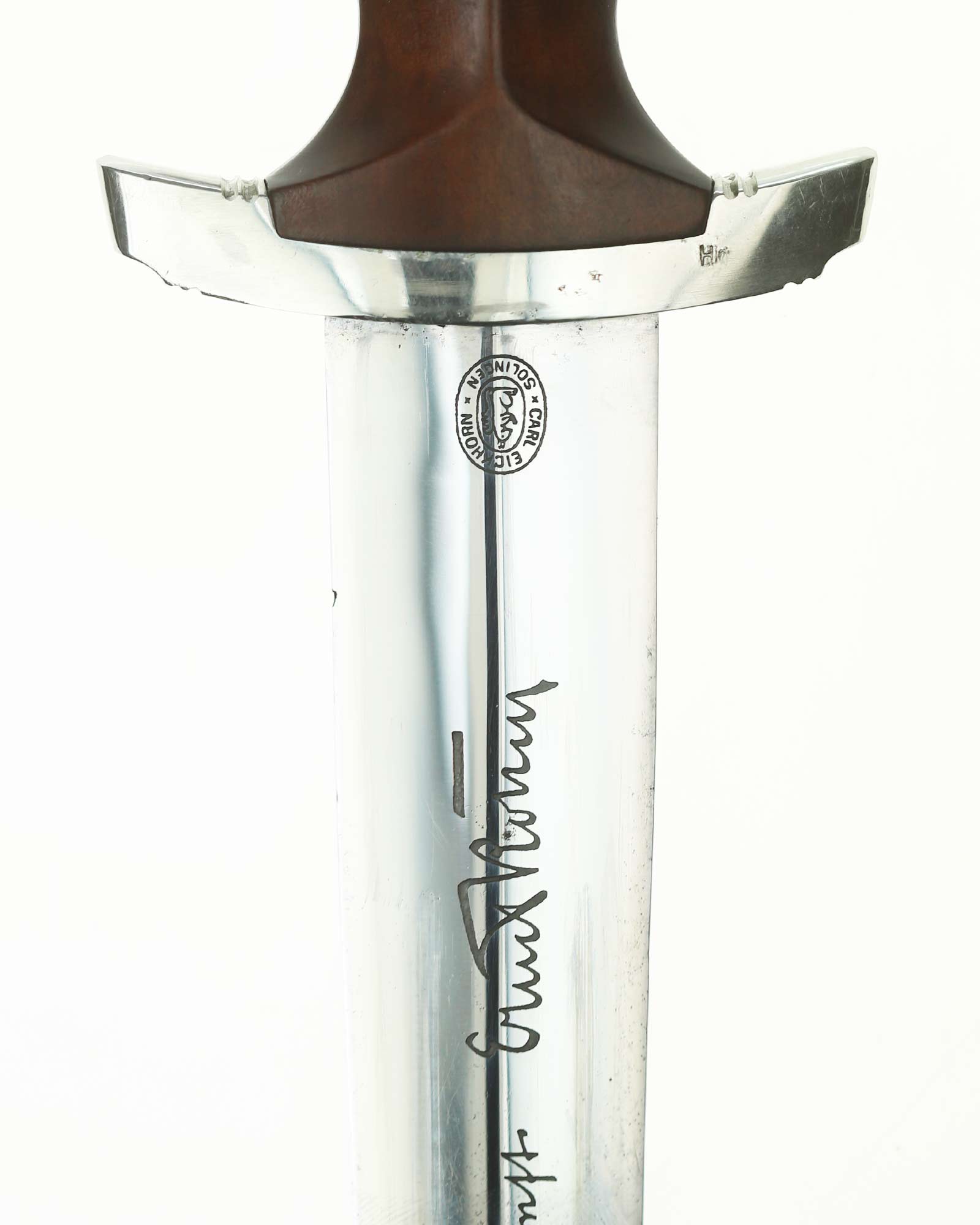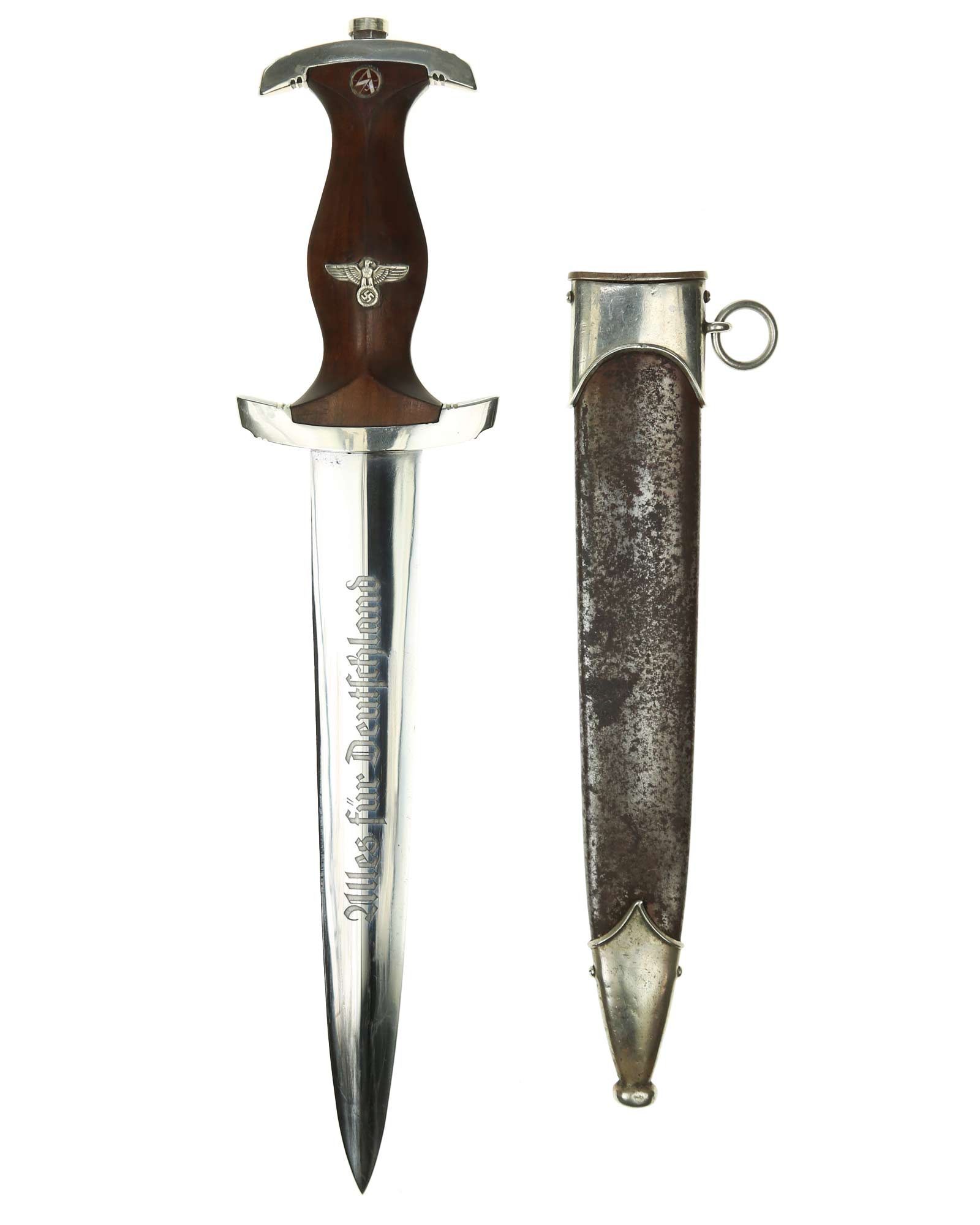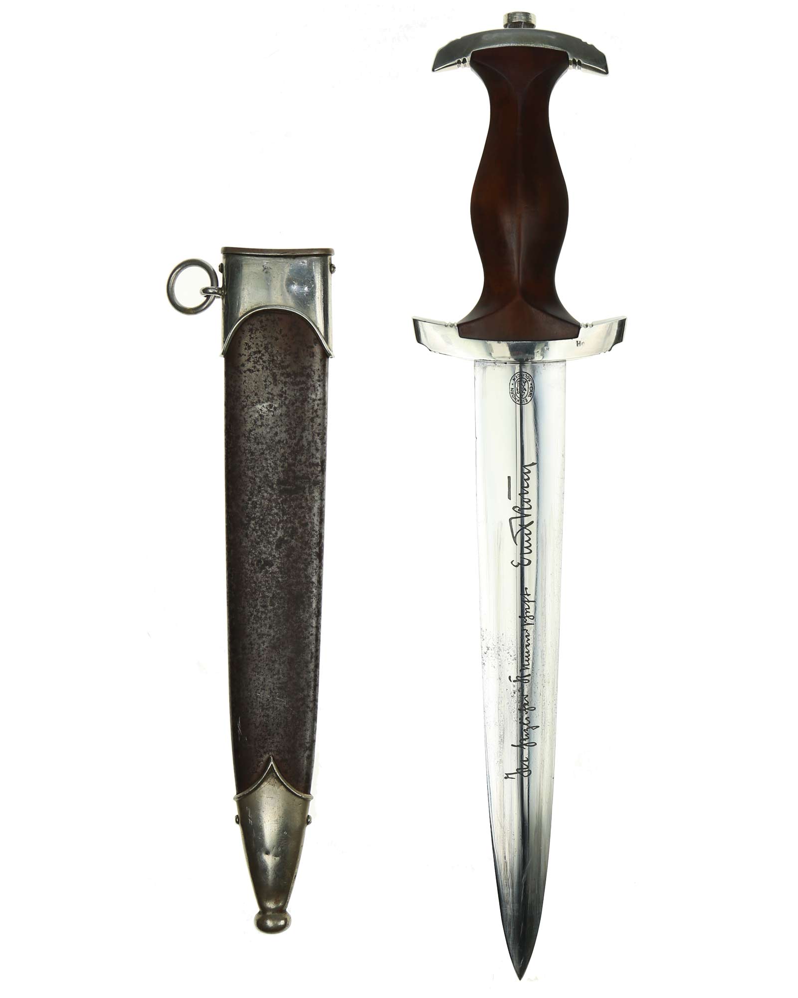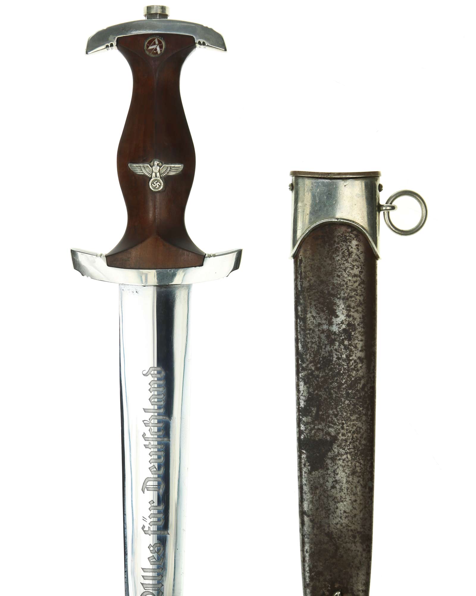Клинок: Клинок стальной, прямой, двулезвийный, 4-гранный в сечении, без долов. На клинке готическим шрифтом нанесена надпись «Alles für Deutchland» ( «Всё для Германии»). На другой стороне нанесена надпись «ln herzlicher Kameradschaft Ernst Röhm» (В знак сердечной дружбы Эрнст Рём). Надписи и клейма: возле пяты клинка с тыльной стороны – травлёное клеймо «Carl Eickhorn Solingen» — клеймо немецкой фирмы «Карл Айкхорн Золинген».