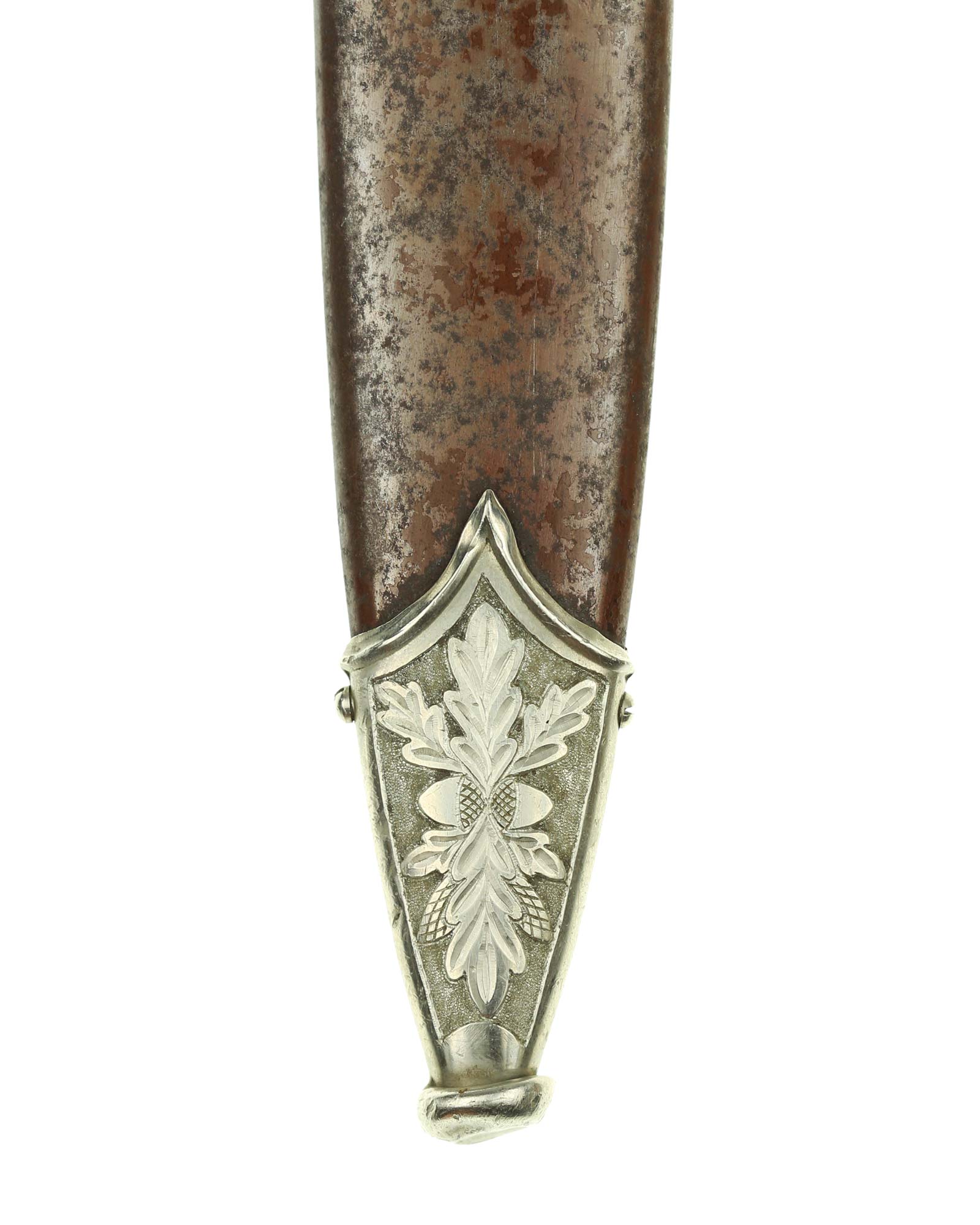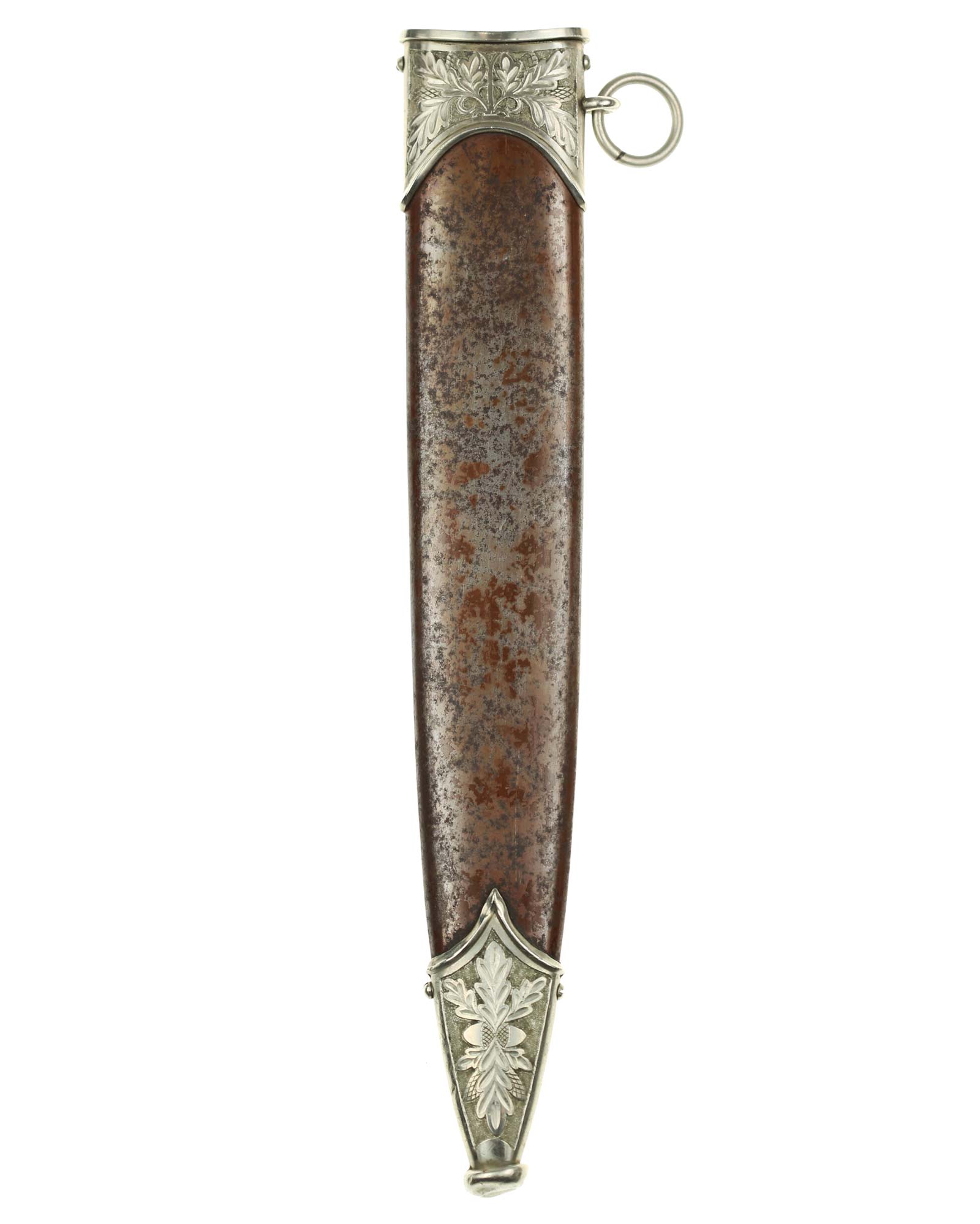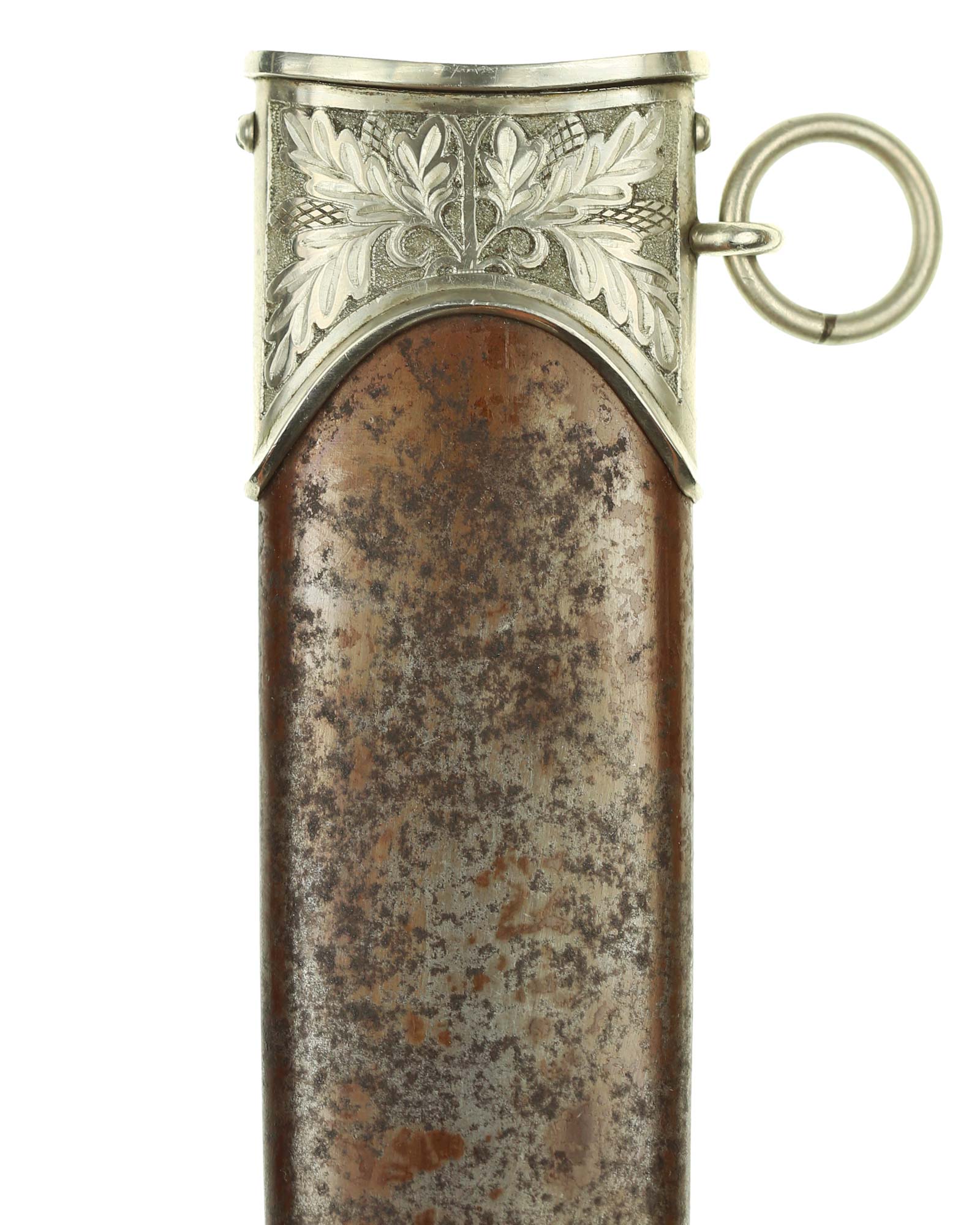 Ножны: Ножны стальные, окрашенные в коричневый цвет, с накладными наконечником и устьем с кольцом. Наконечник и устье ножен крепятся при помощи двух винтов. Ножны в оригинальном коричневом оксидировании.