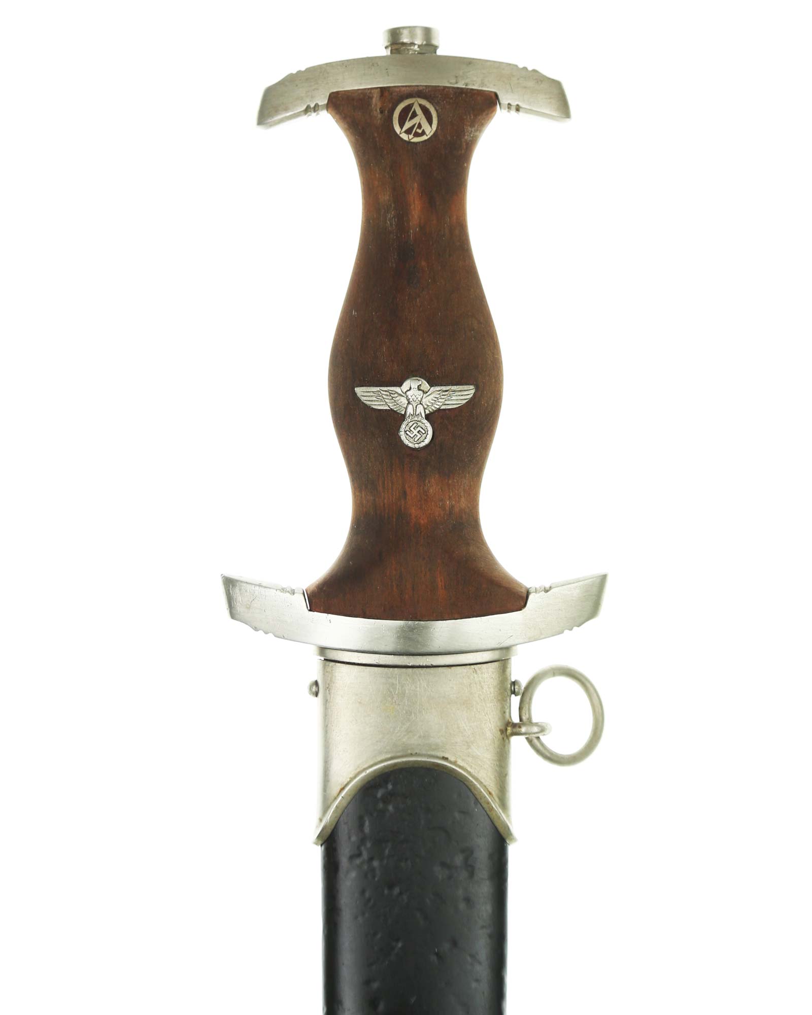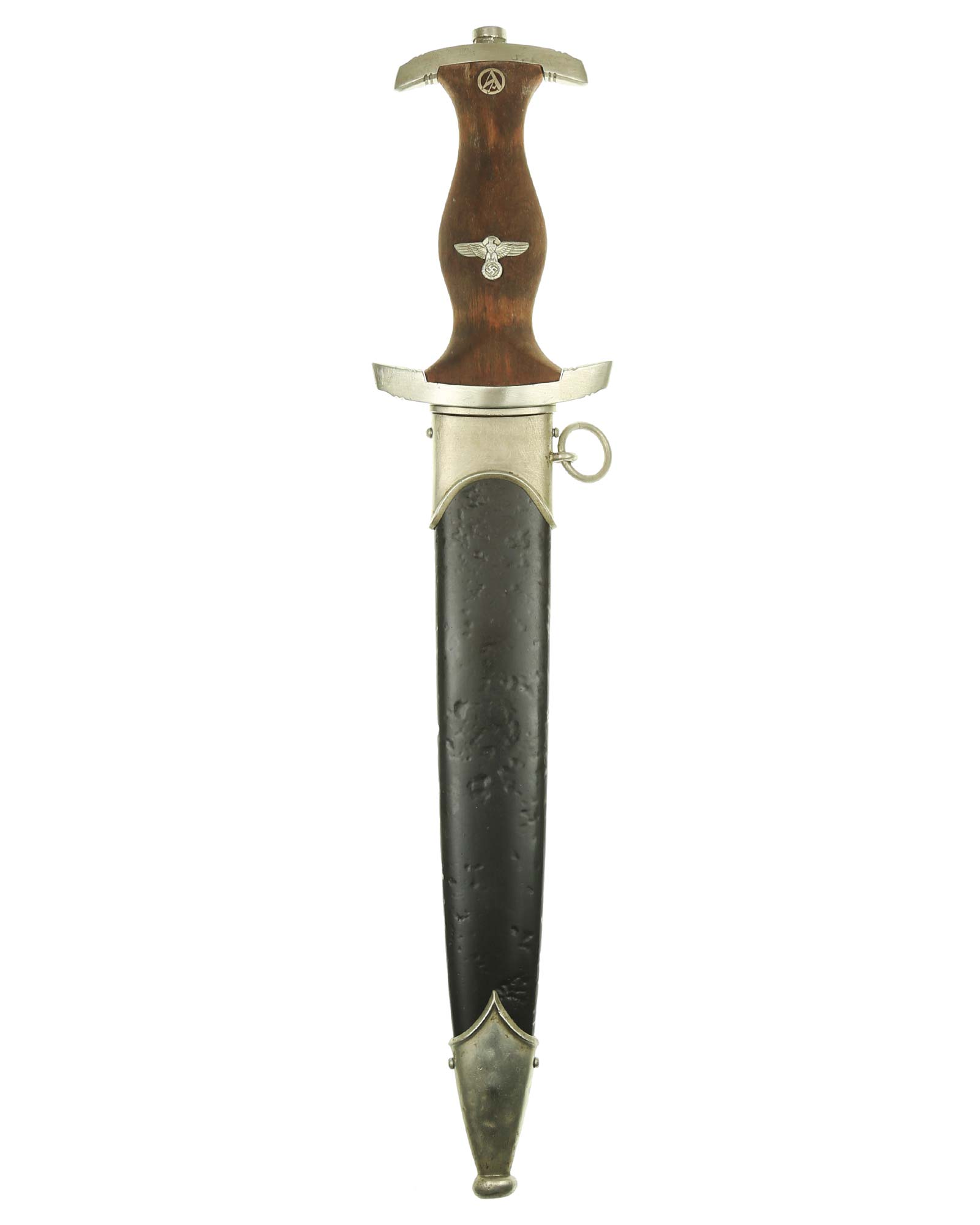 Наградной кинжал штурмовых отрядов СА образца 1933 года. Ранний период производства, 1933-1935 годы c подписью Эрнста Рема: ln herzlicher Kameradschaft. Производитель фирма Ed. Wüsthof Solingen (Эд. Вюстхоф Золинген). Длина в ножнах 37,2 см.