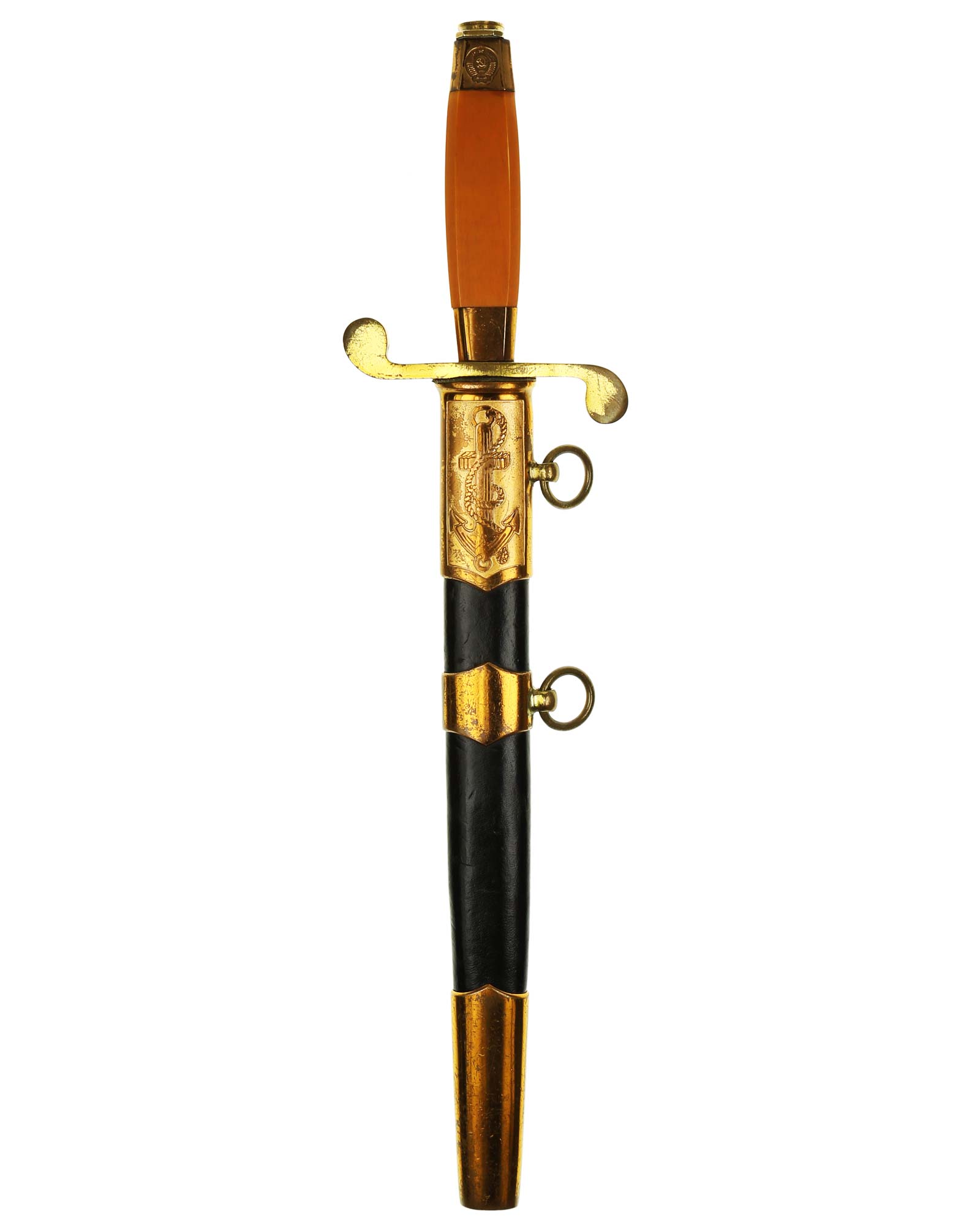 Морской офицерский кортик образца 1945 года, выпущен заводом "Булат" в 1977 году. Длина в ножнах 34,2 см.