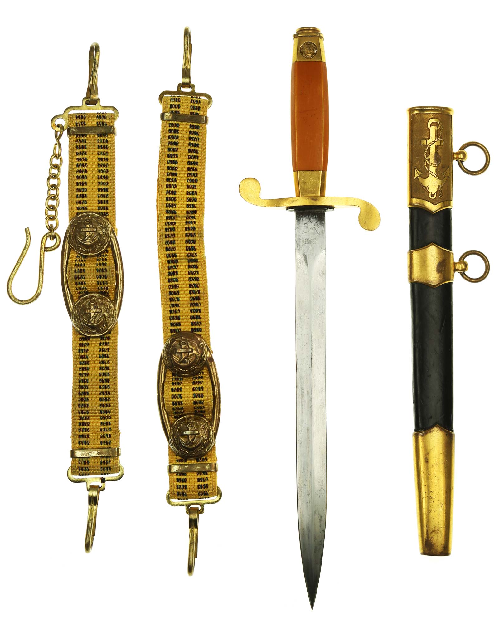Кортик советский морской офицерский образца 1949 года. Кортик ВМФ СССР с пасовыми ремнями подвесами.