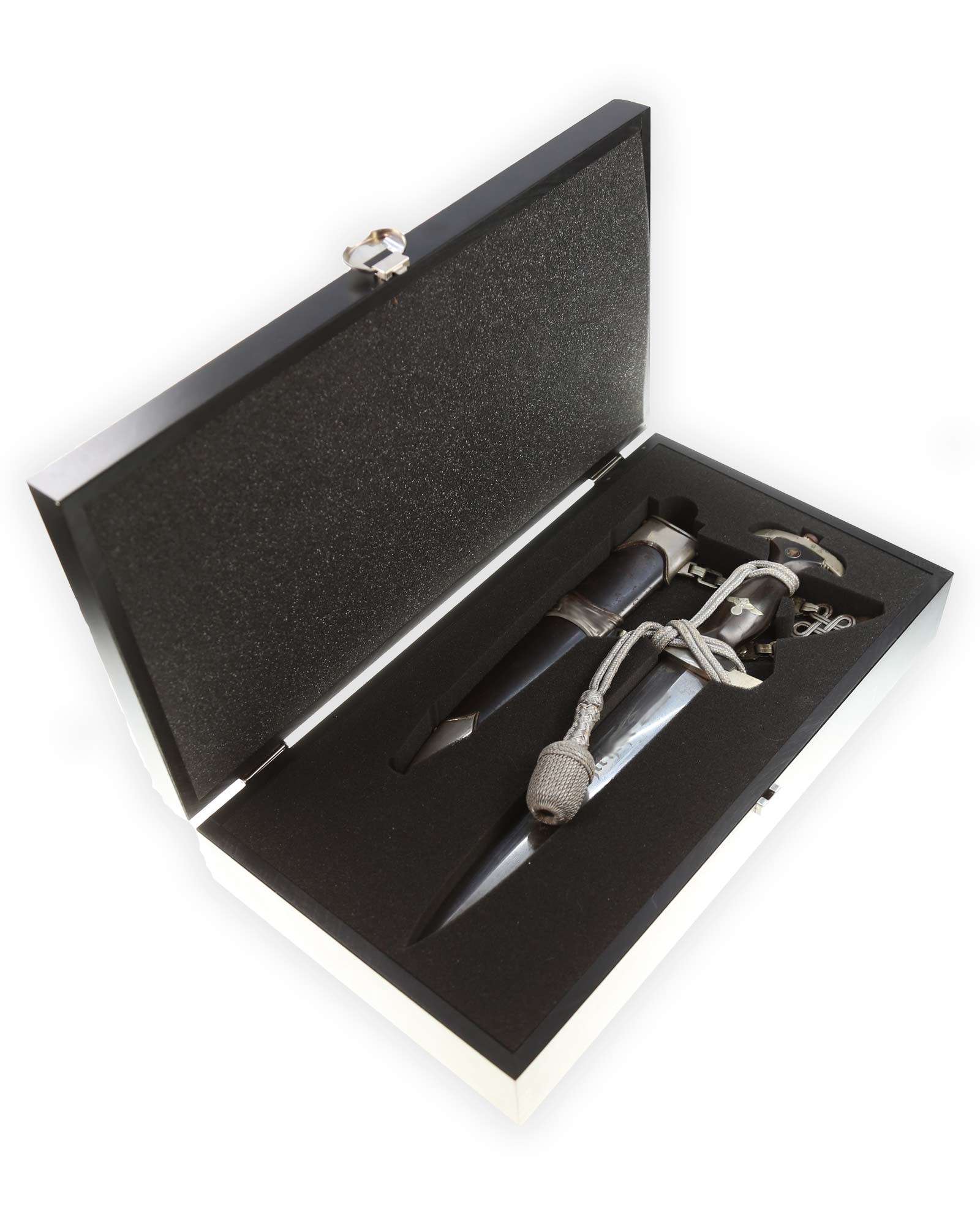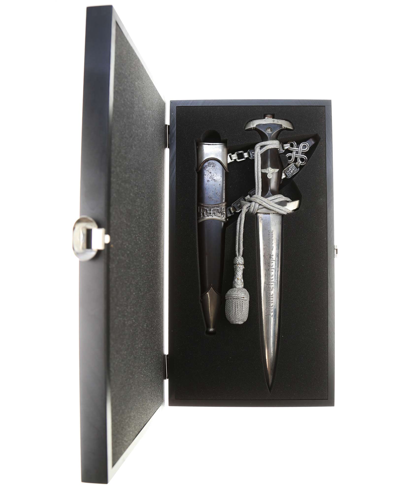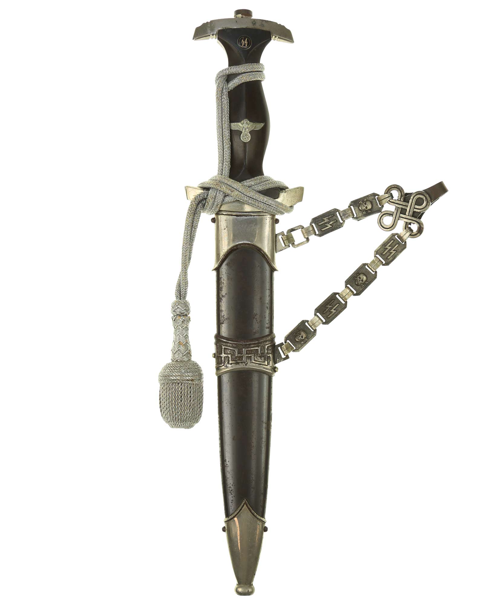 Парадный кинжал СС (Schutzstaffel) "Лидер" с цепным подвесом. Образца 1936 года. Тип цепи, в соответствии с Ральфа Зигерта типа-B2, в соответствии с Томаса Виттмана типа-II. Напрямую от семьи владельца Хельмута Стратмана (Helmut Stratmann).