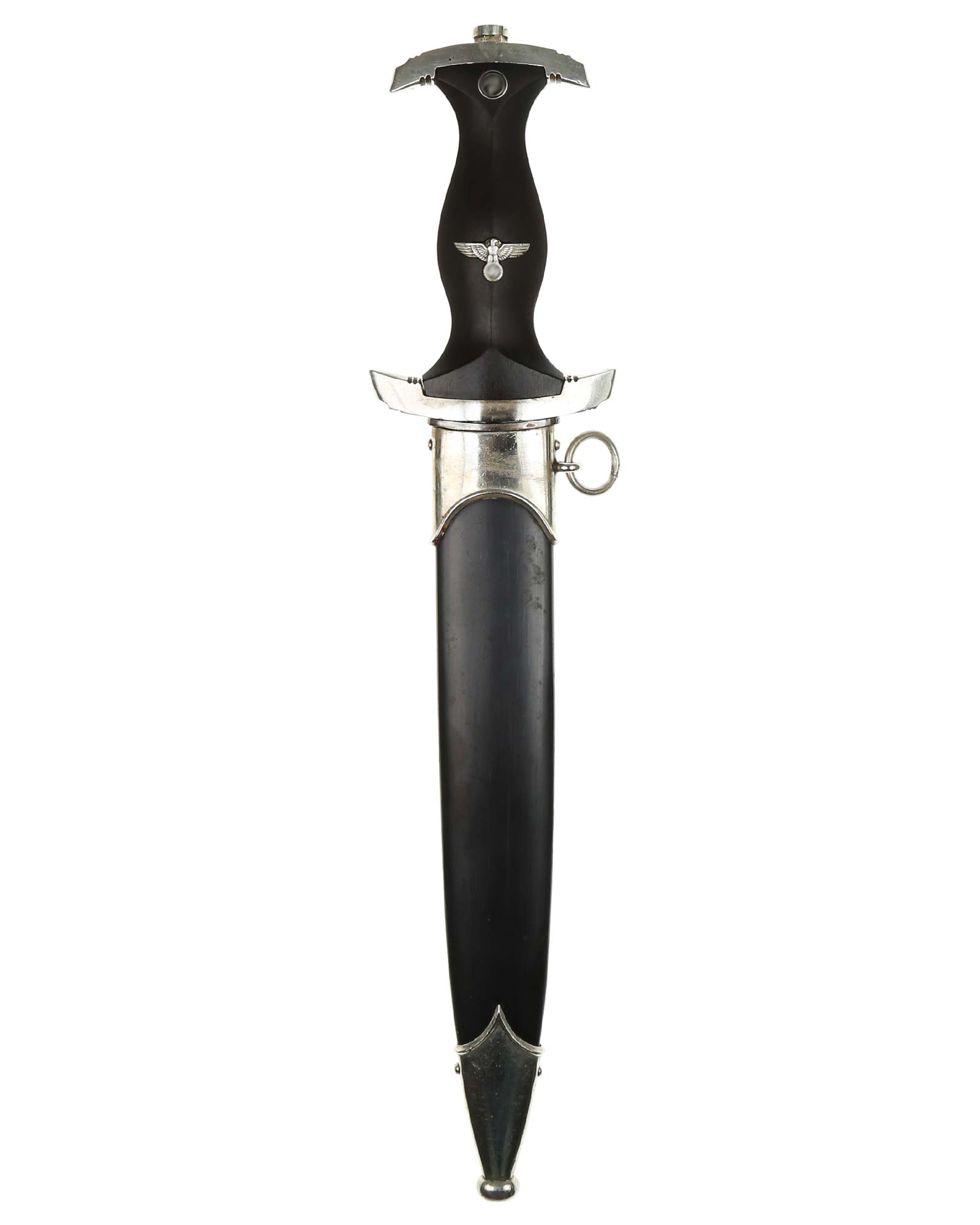 Ранний парадный кинжал СС [SS Schutzstaffel] образца 1933 года, период производства, 1933-1935 годы. Производитель фирма Карл Айкхорн Золинген (Carl Eickhorn Solingen). Длина в ножнах 37,2 см.