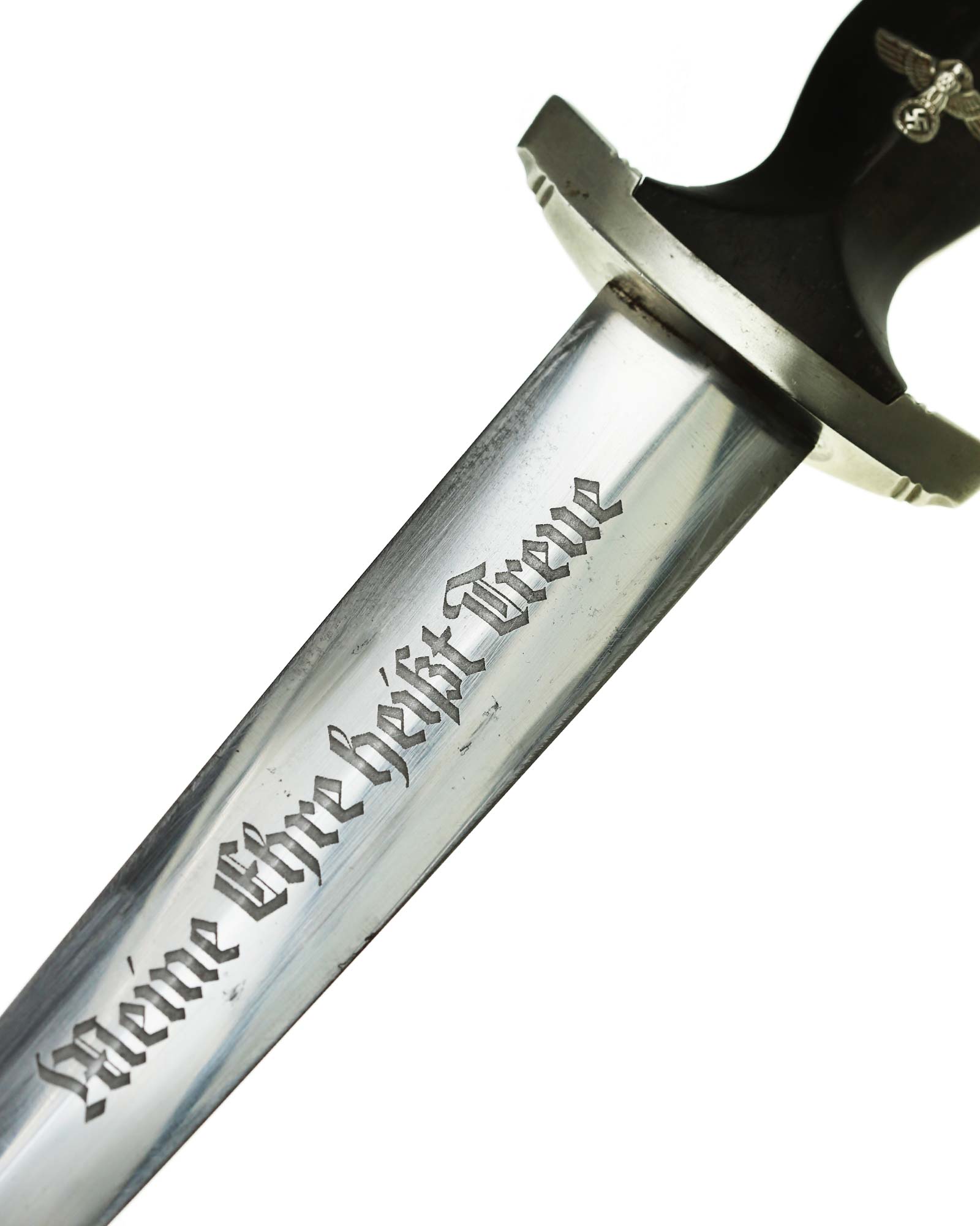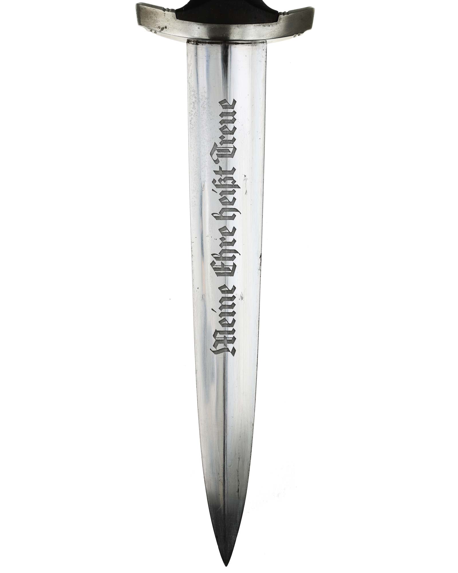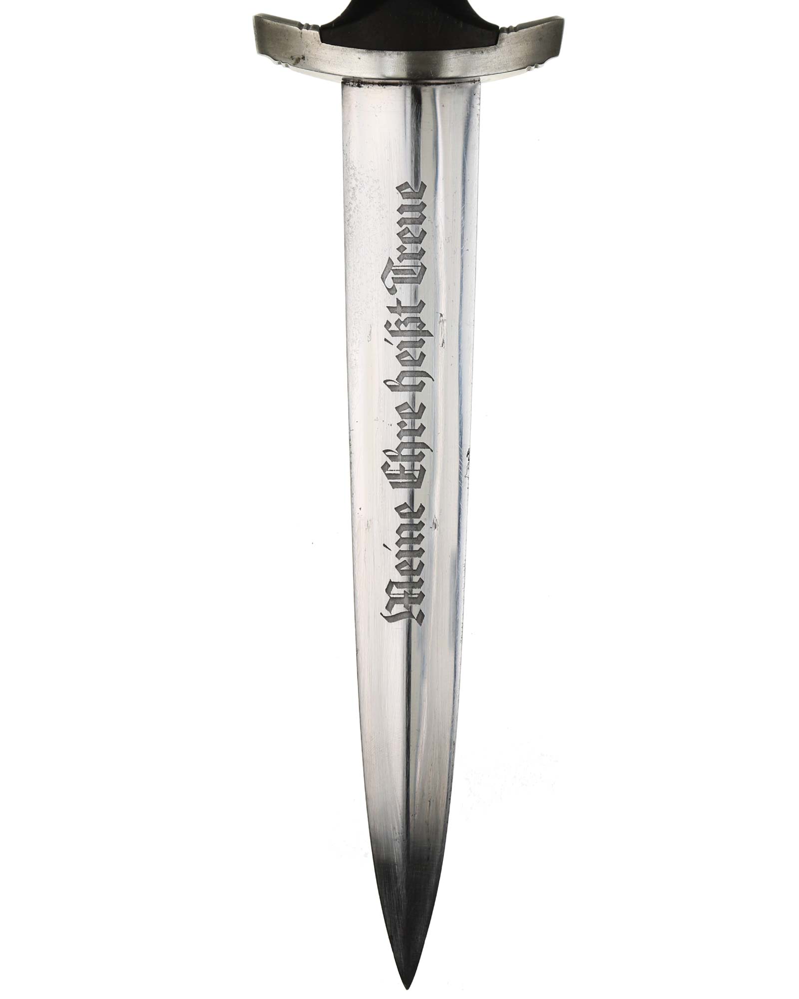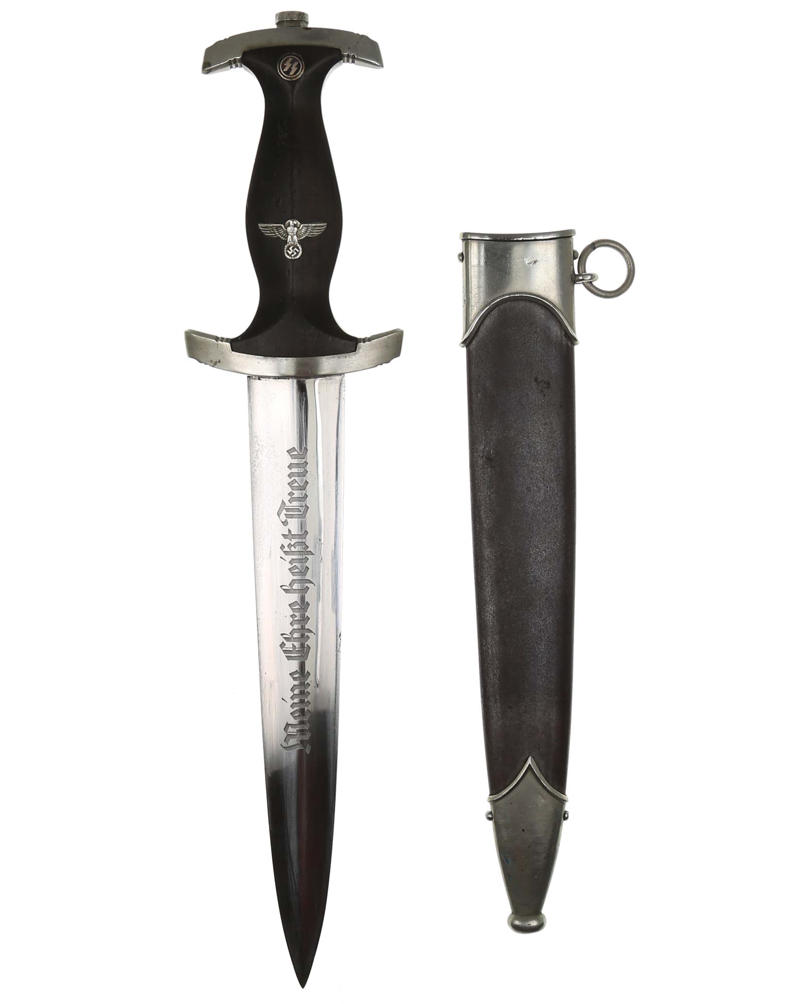 Клинок: Клинок кинжала прямой, стальной, двулезвийный, кинжального типа, с выраженным центральным ребром. На одной стороне клинка методом травления нанесен девиз СС «Meine Ehre heisst Treue» (Моя честь называется верностью). Клинок на оборотной стороне у основания стоит клеймо производителя Rich. A. Herder Solingen (Рихард А. Хердер Золинген).