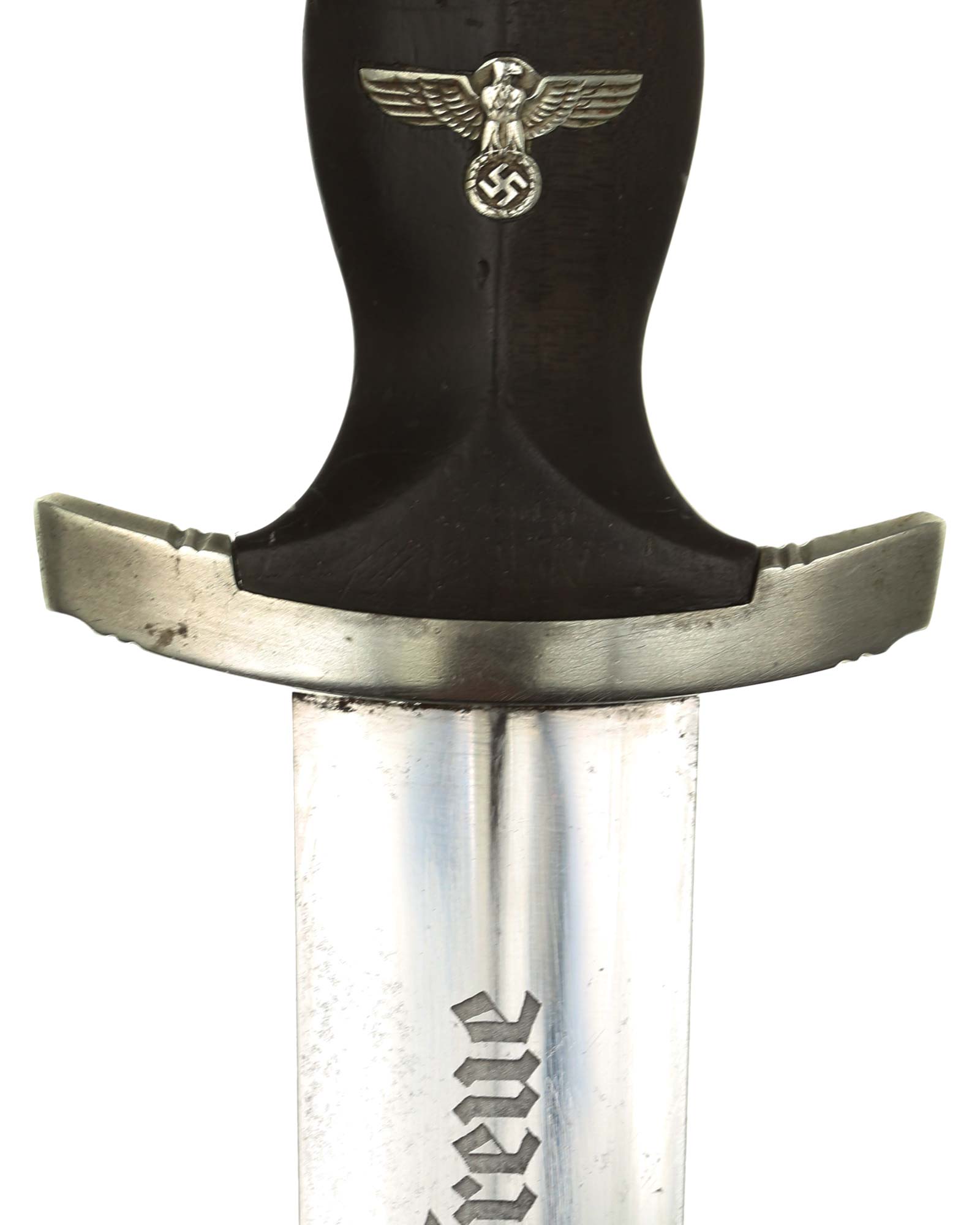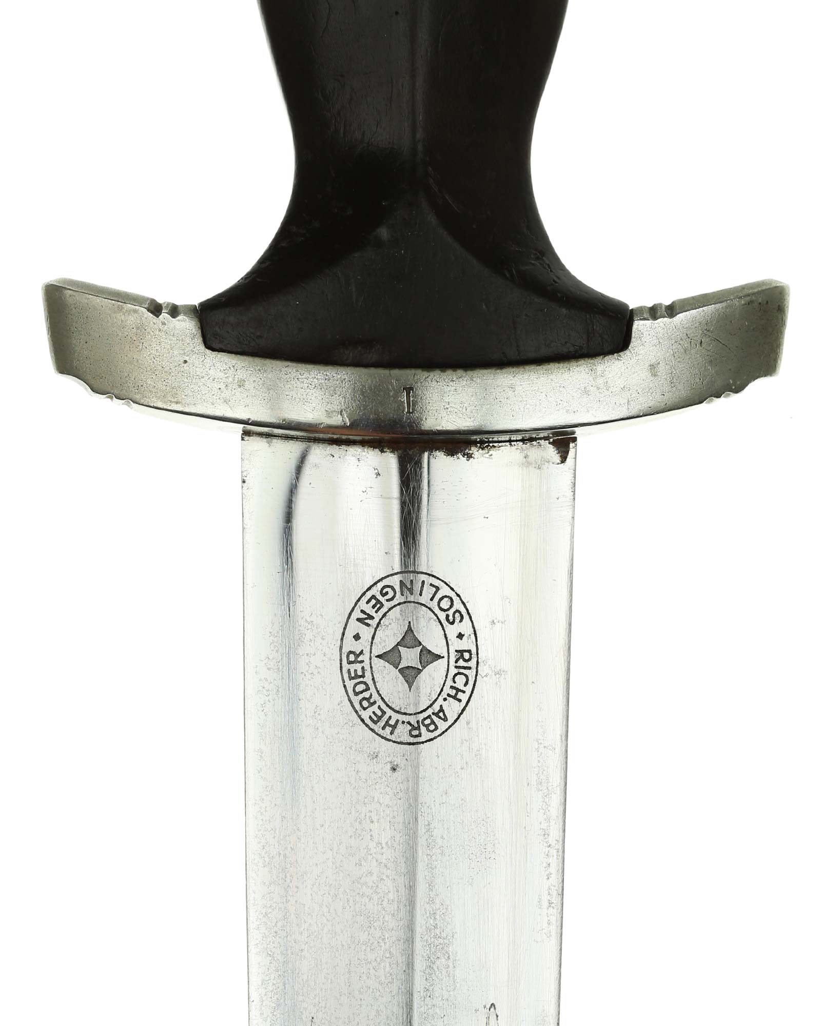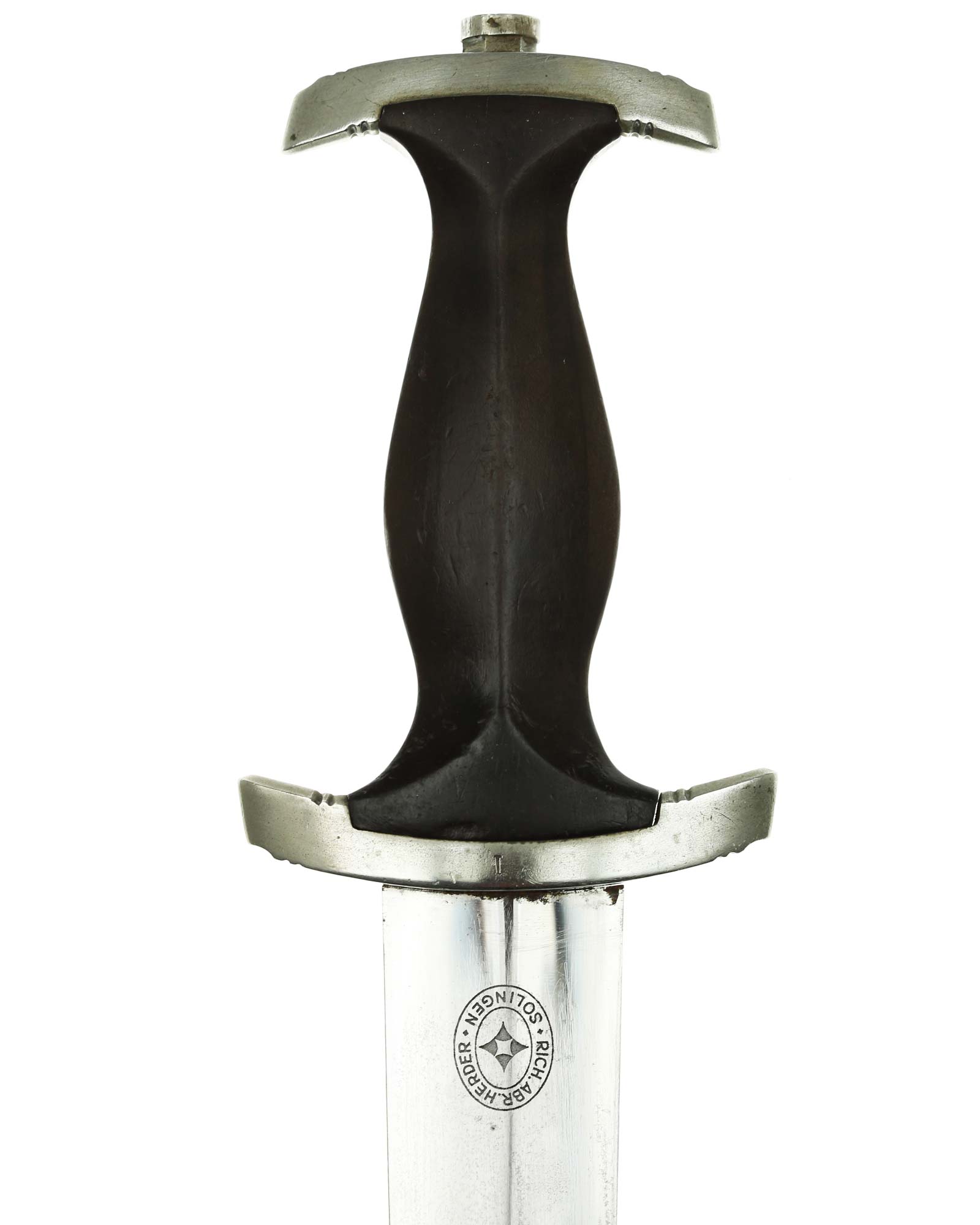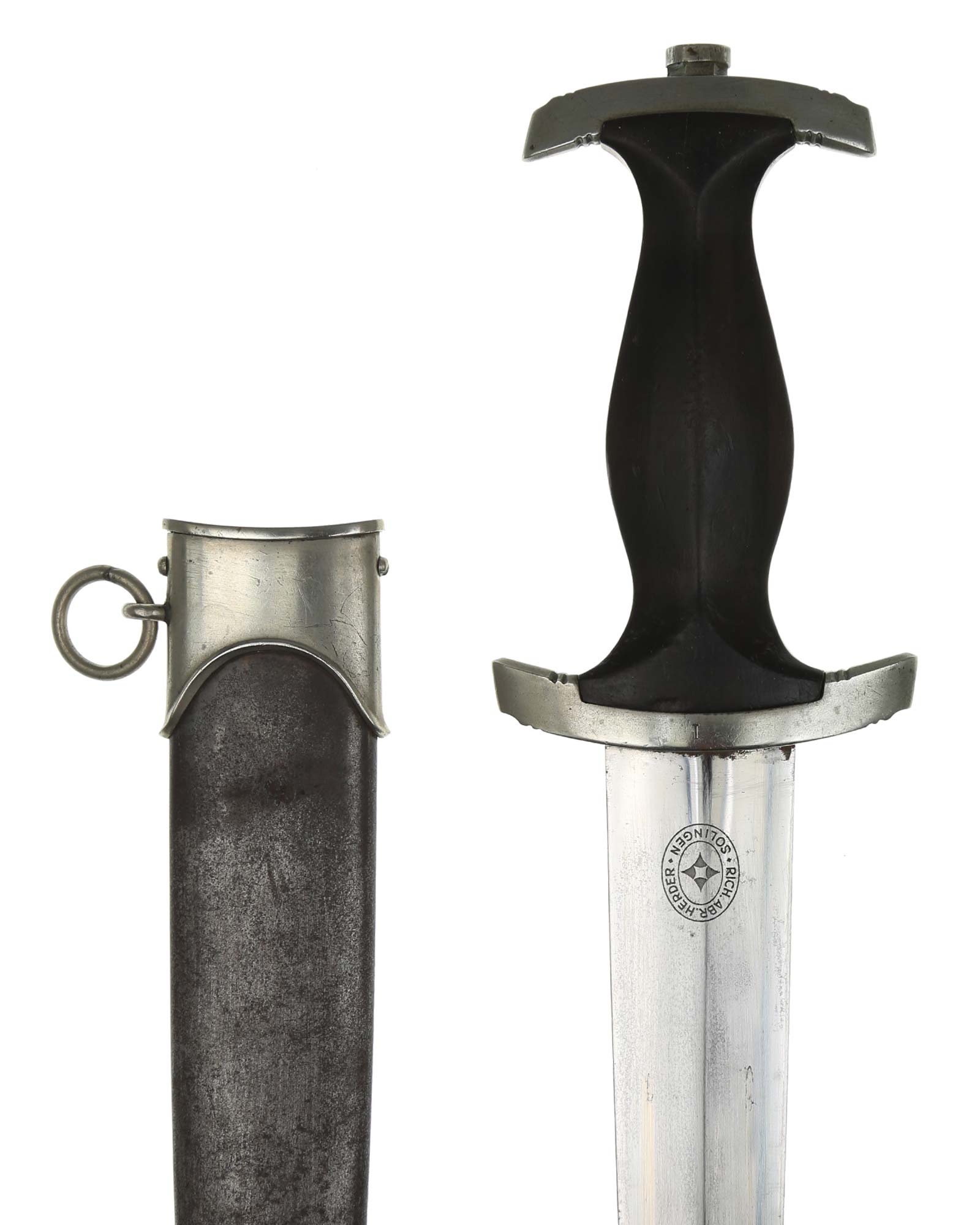Клинок: Клинок кинжала прямой, стальной, двулезвийный, кинжального типа, с выраженным центральным ребром. На одной стороне клинка методом травления нанесен девиз СС «Meine Ehre heisst Treue» (Моя честь называется верностью). Клинок на оборотной стороне у основания стоит клеймо производителя Rich. A. Herder Solingen (Рихард А. Хердер Золинген).