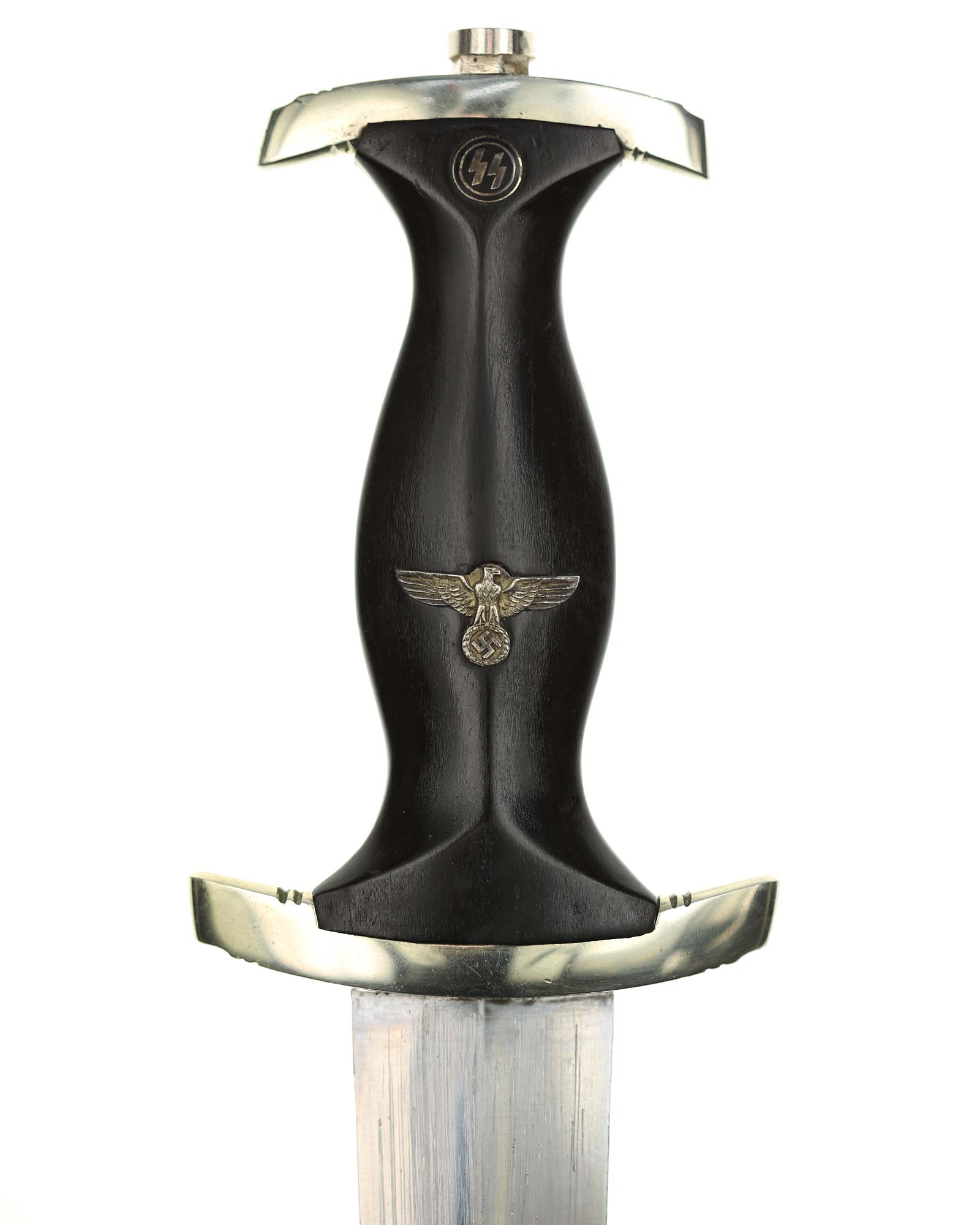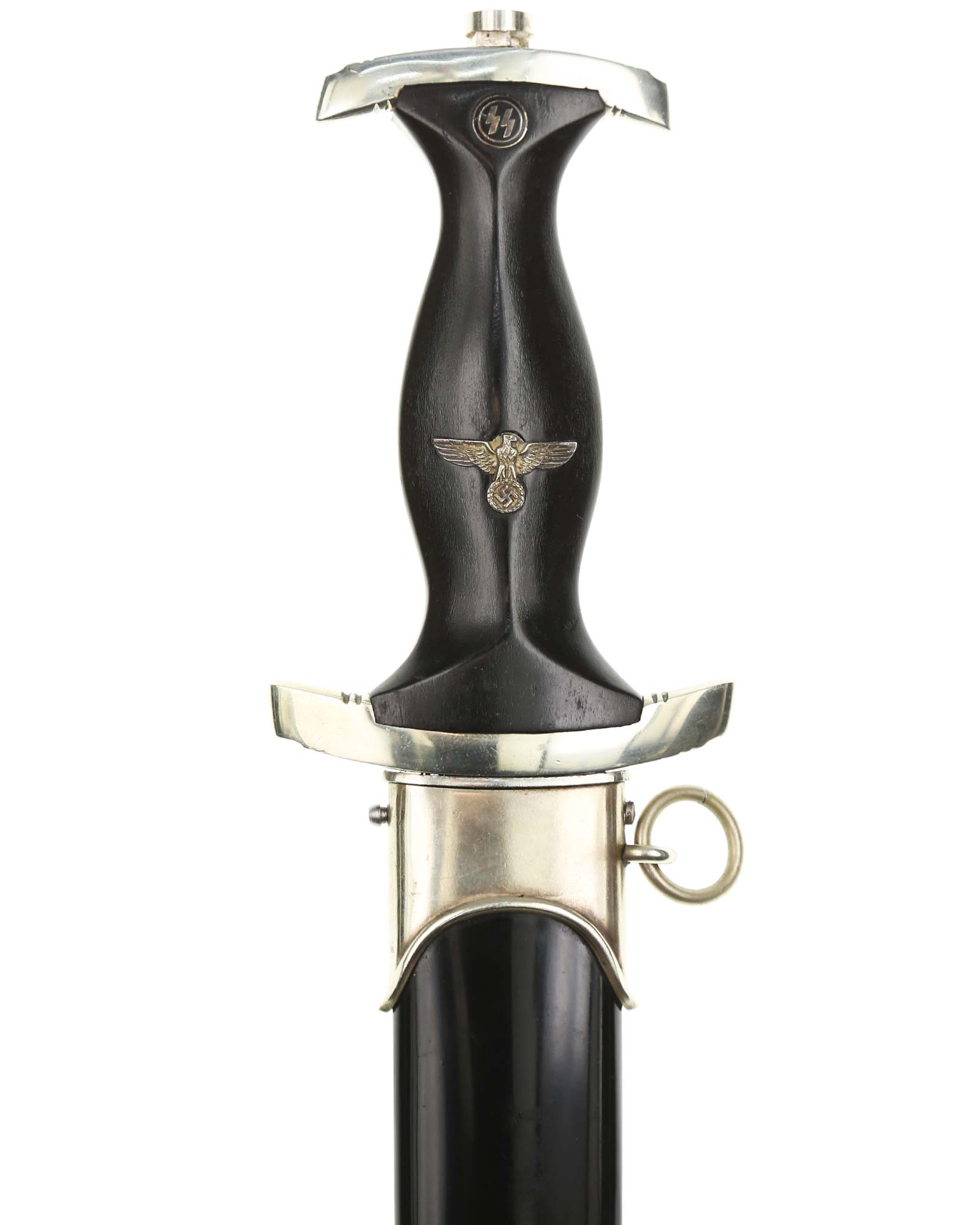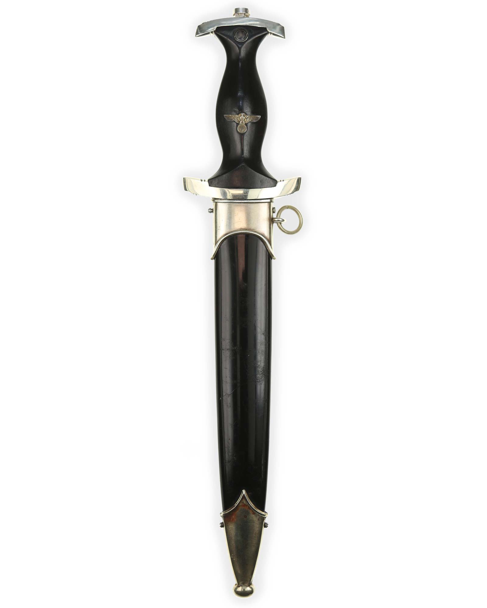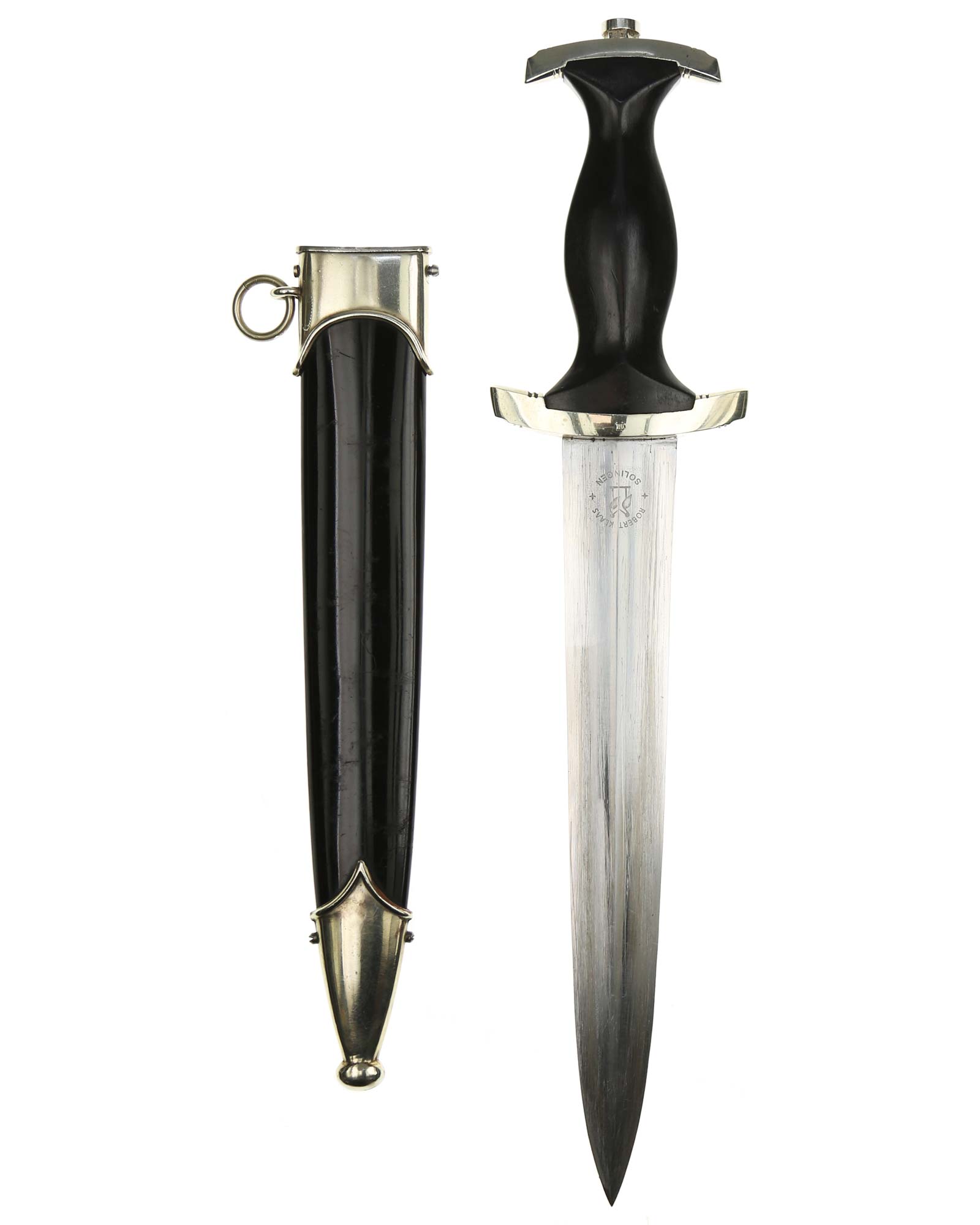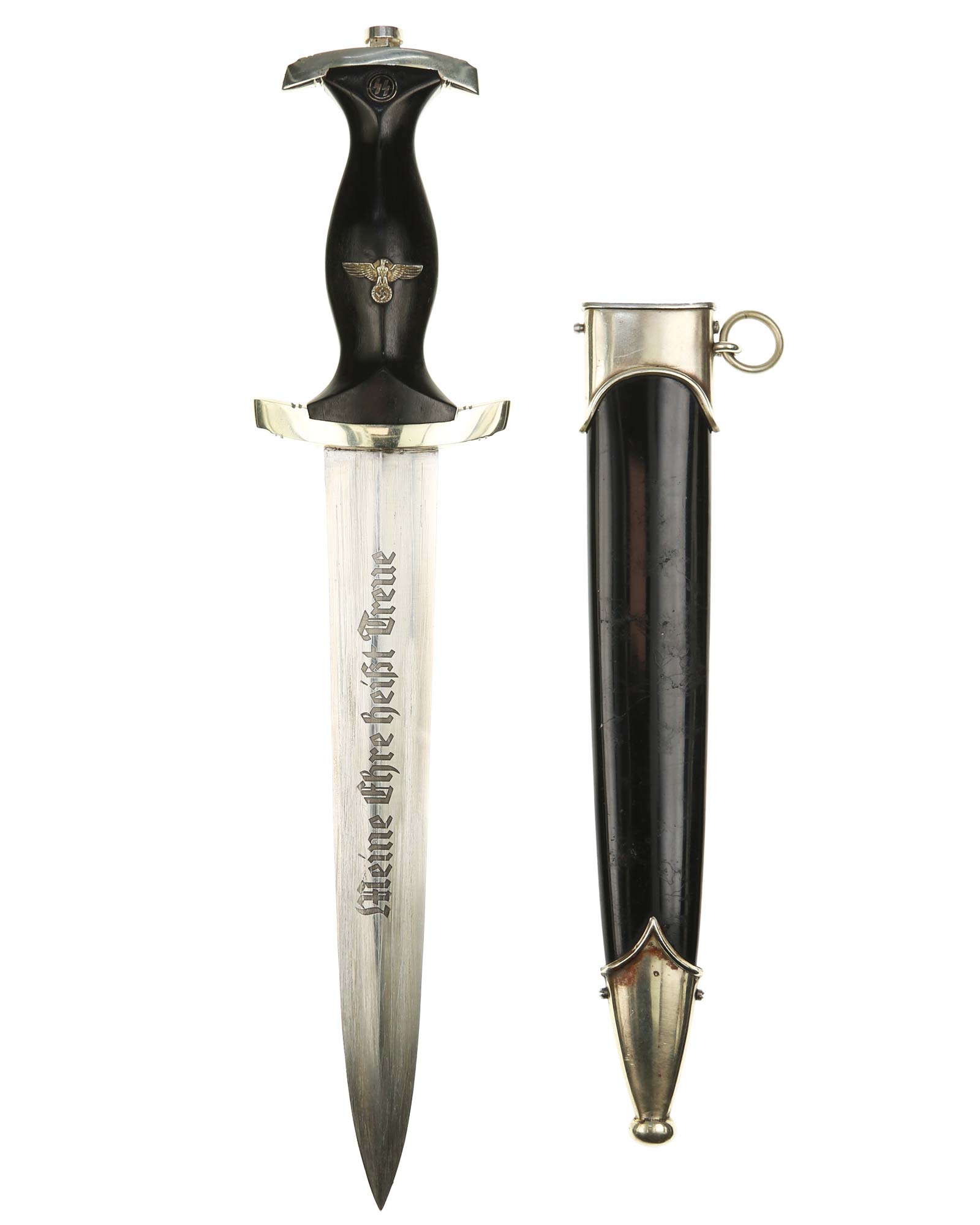 Клинок: Клинок кинжала прямой, стальной, двулезвийный, кинжального типа, с выраженным центральным ребром. На одной стороне клинка методом травления нанесен девиз СС «Meine Ehre heisst Treue» (Моя честь называется верностью). Клинок на оборотной стороне у основания стоит клеймо производителя Роберт Клаас Золинген (Robert Klaas Solingen).