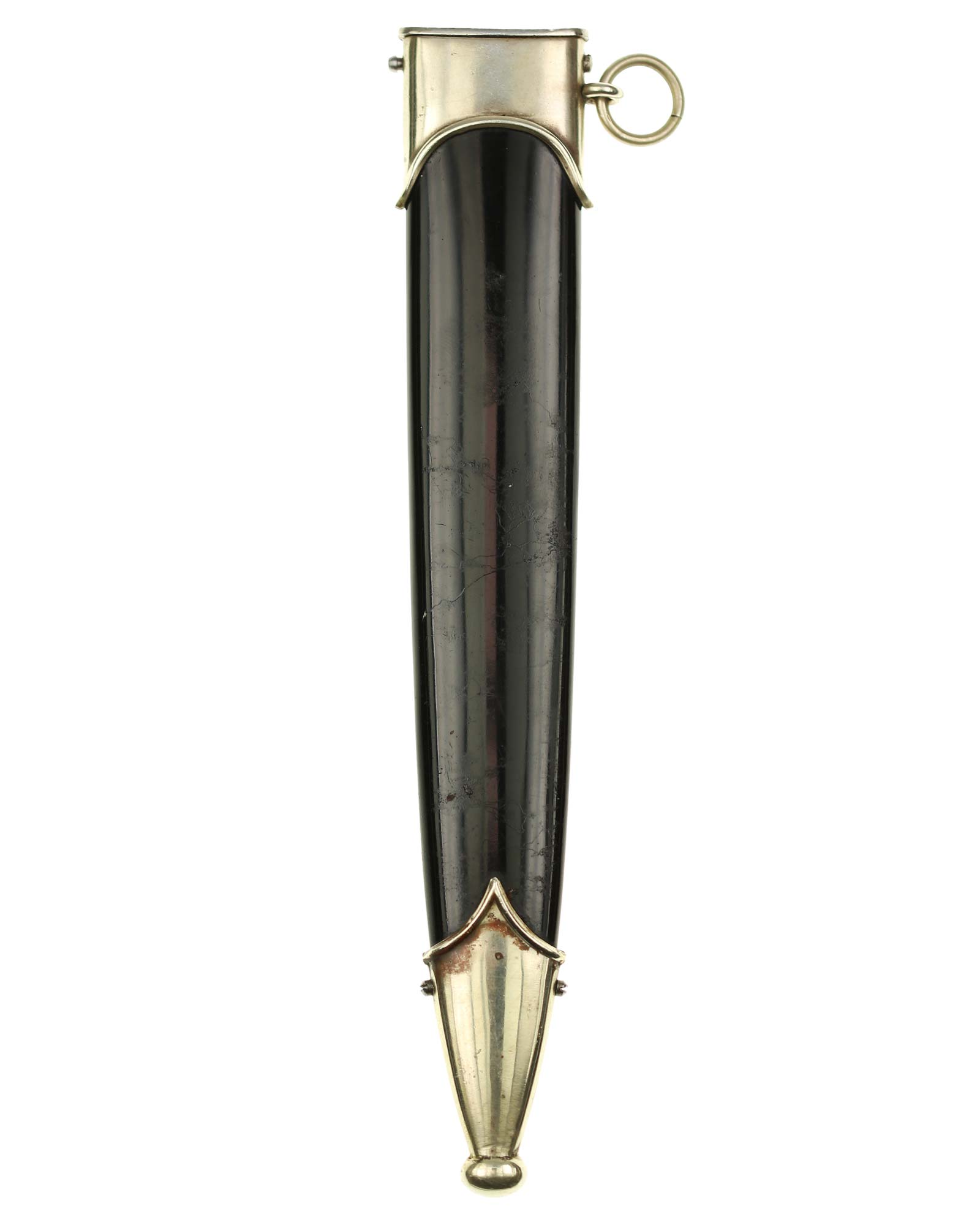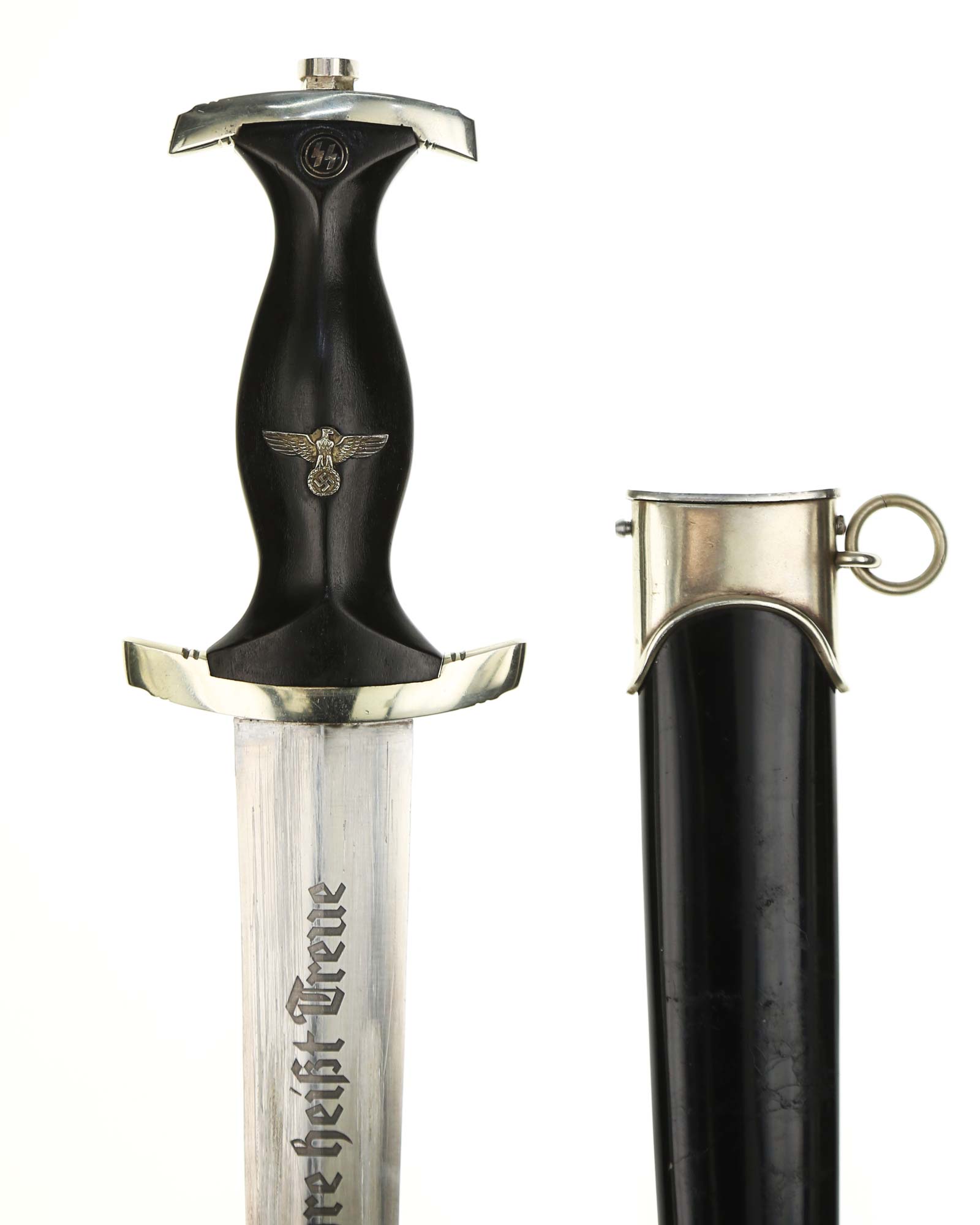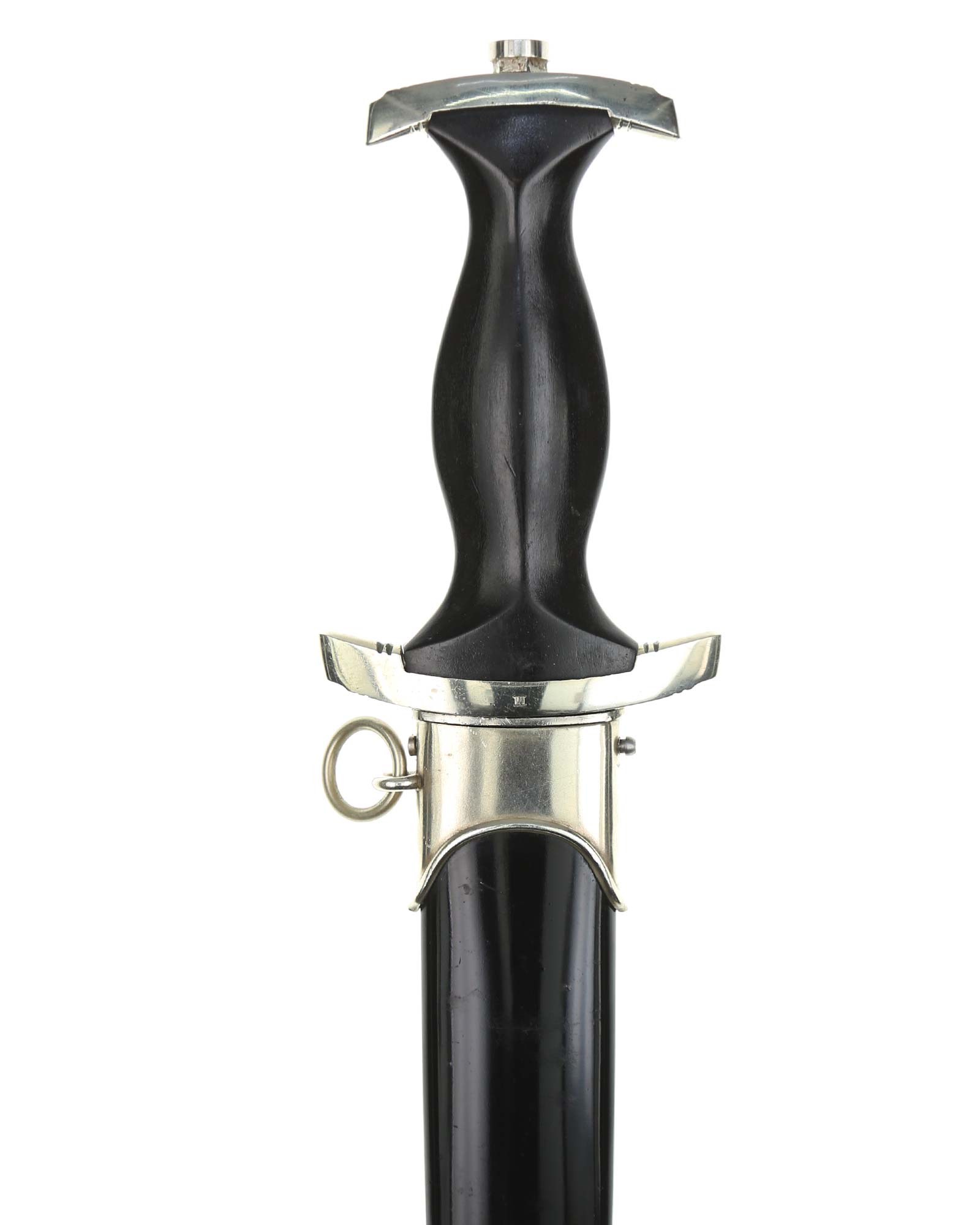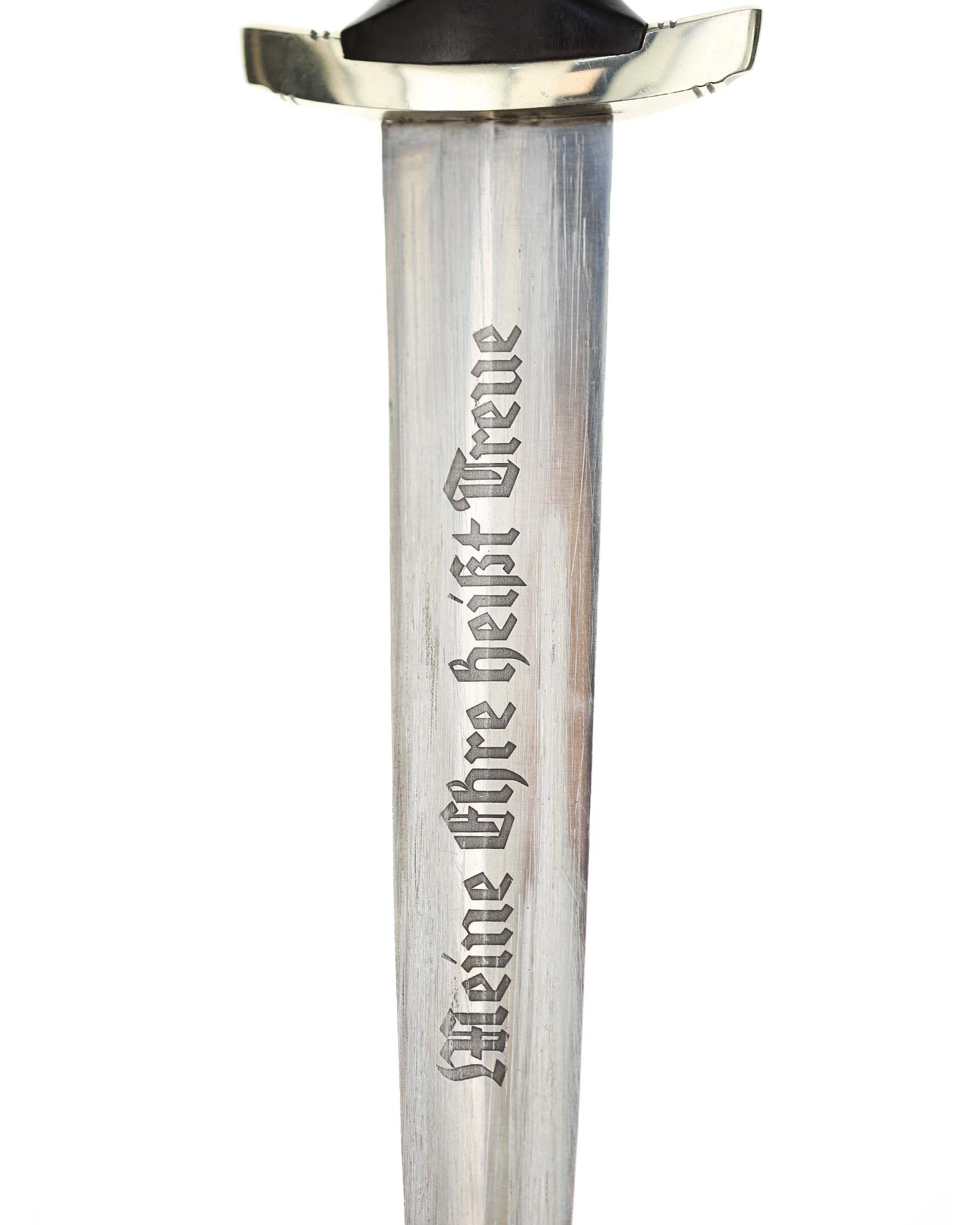 Клинок: Клинок кинжала прямой, стальной, двулезвийный, кинжального типа, с выраженным центральным ребром. На одной стороне клинка методом травления нанесен девиз СС «Meine Ehre heisst Treue» (Моя честь называется верностью). Клинок на оборотной стороне у основания стоит клеймо производителя Роберт Клаас Золинген (Robert Klaas Solingen).