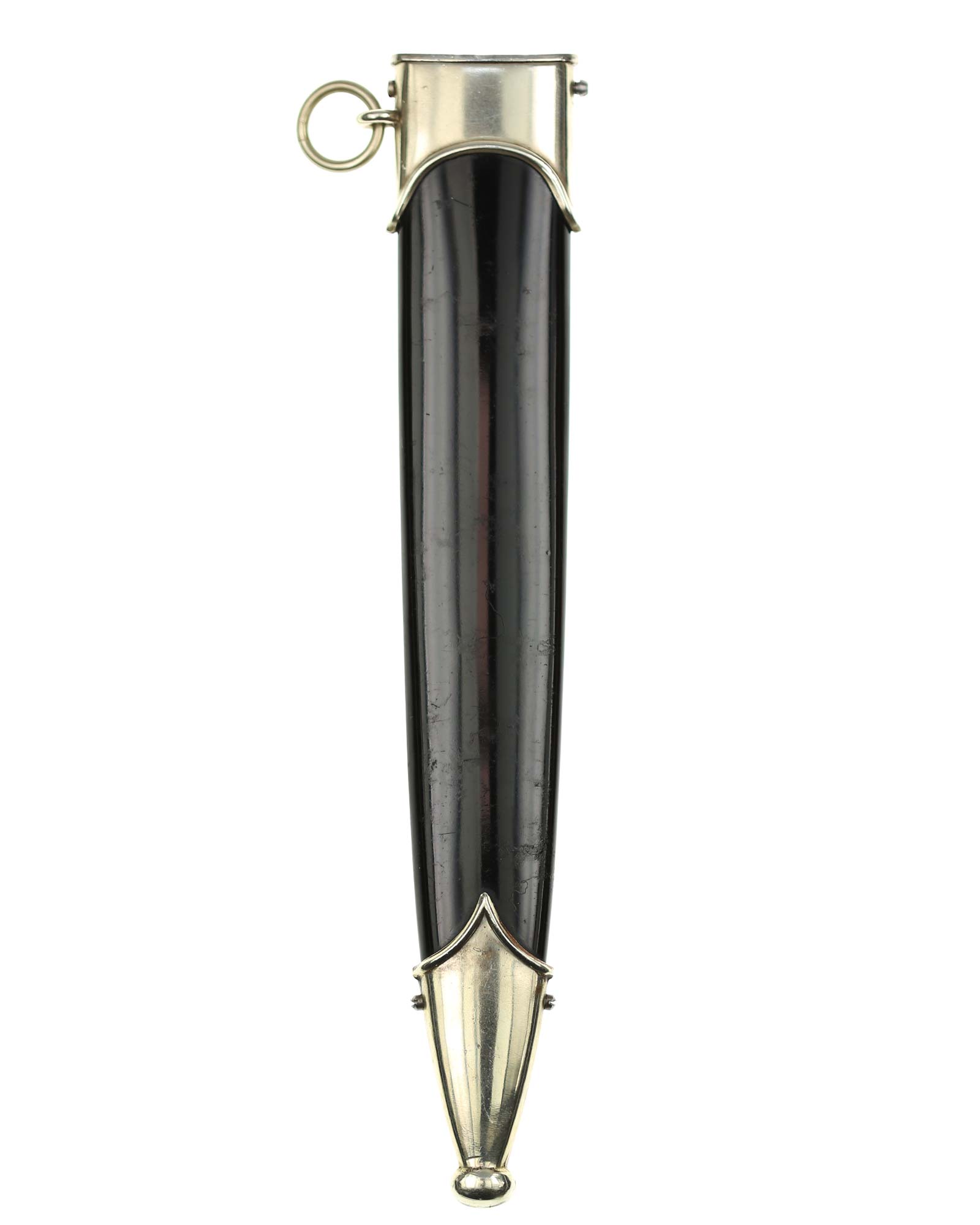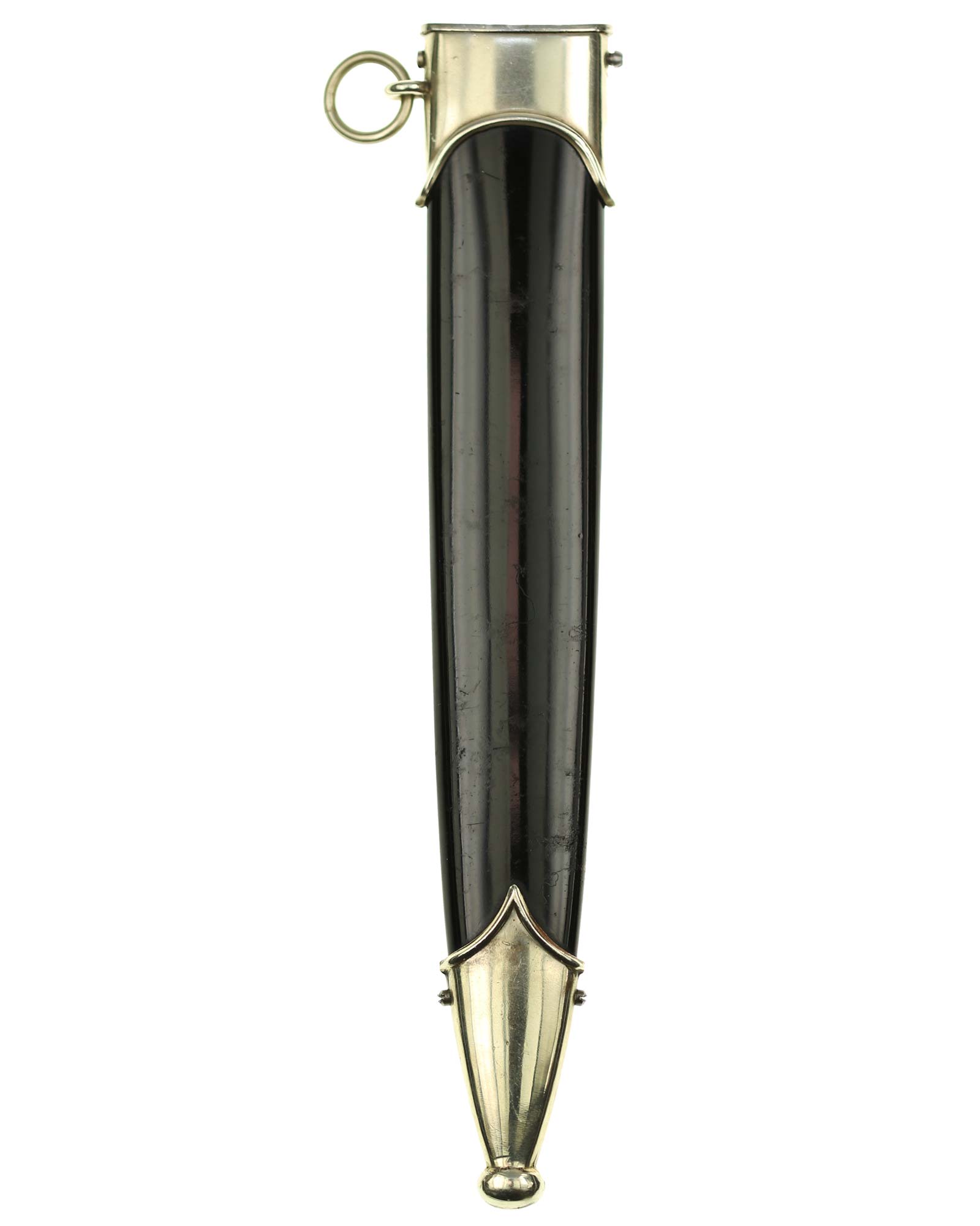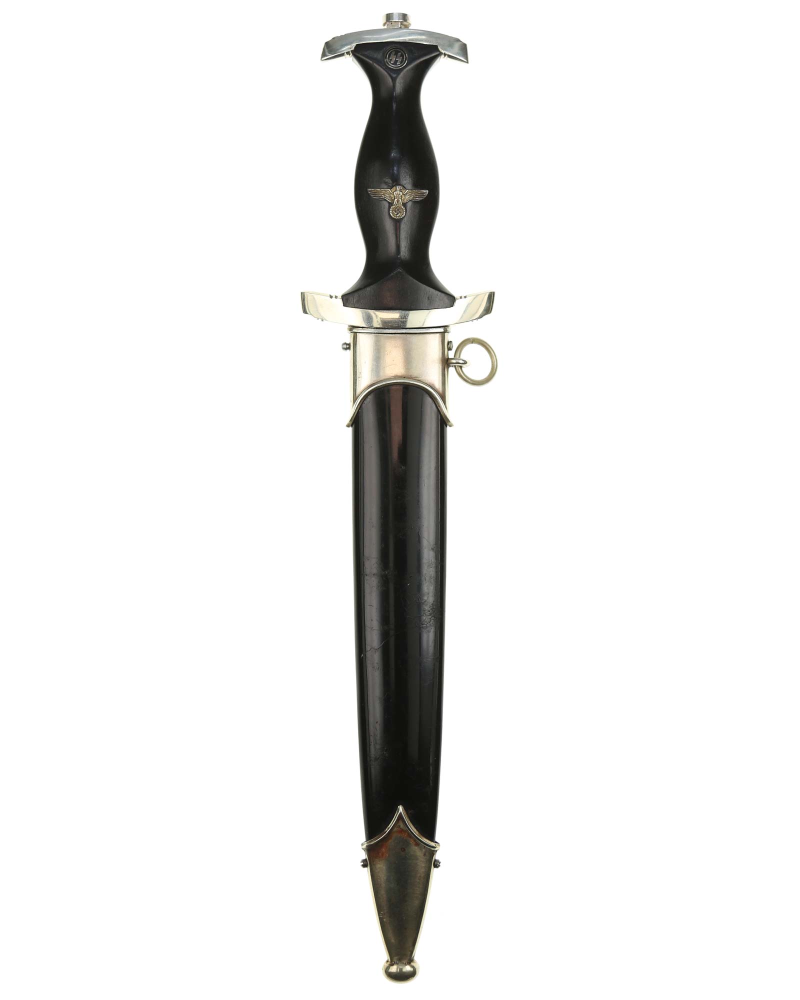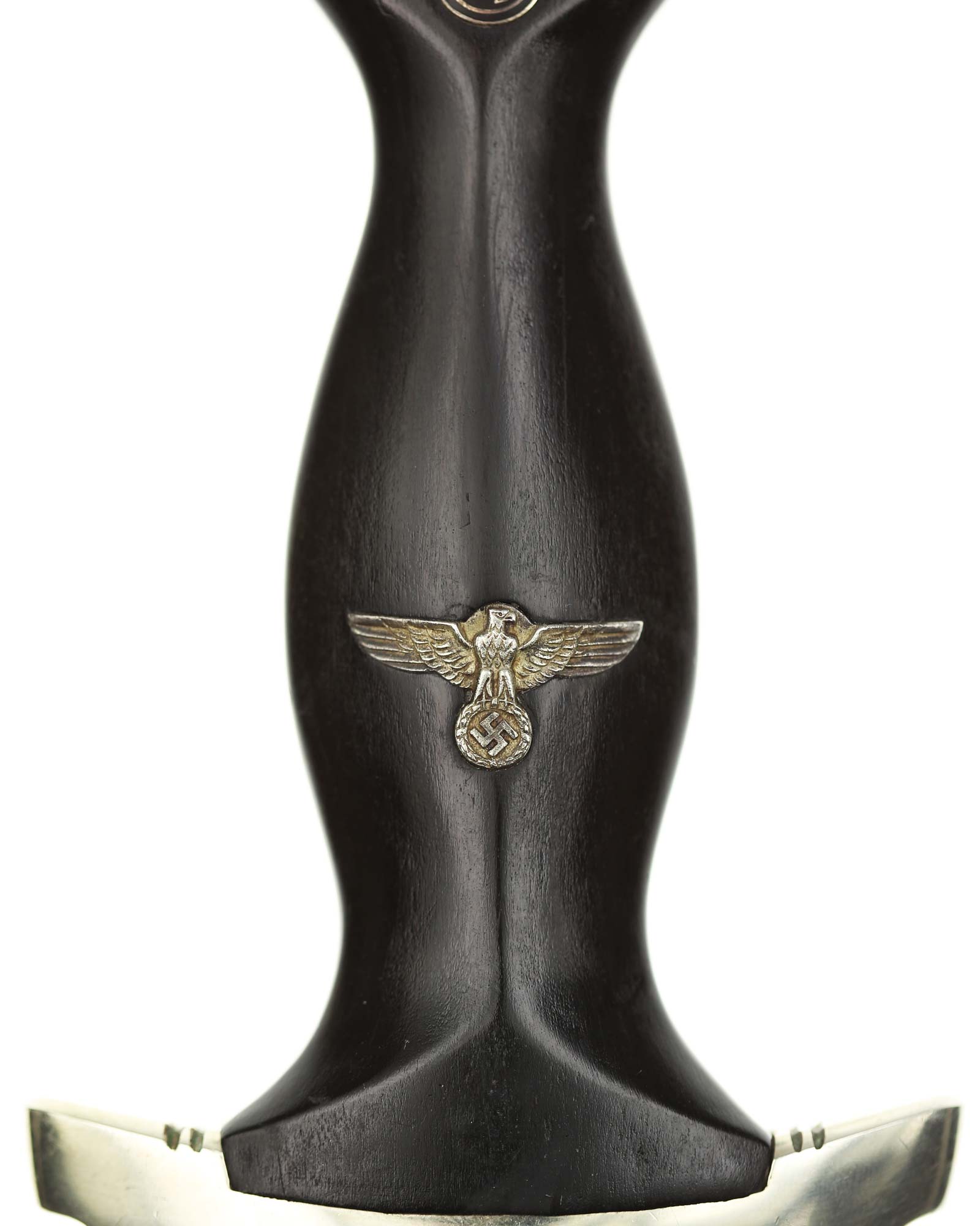 Ранний парадный кинжал СС [SS Schutzstaffel] образца 1933 года. Ранний период производства, 1933-1935 годы. Производитель фирма Роберт Клаас Золинген (Robert Klaas Solingen). Длина в ножнах 37,3 см.