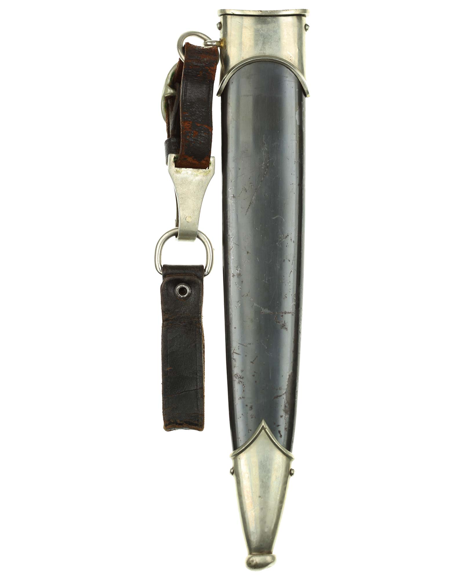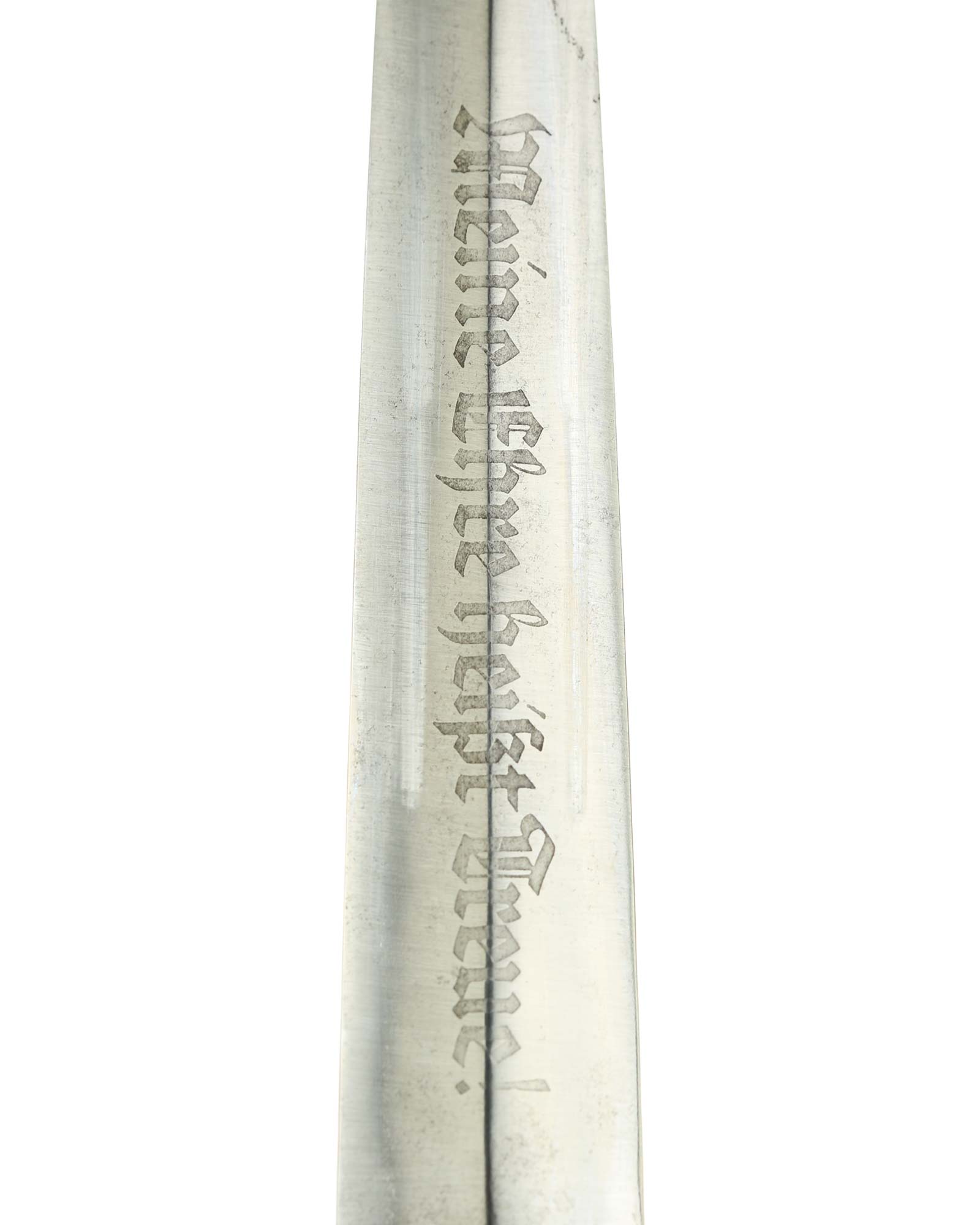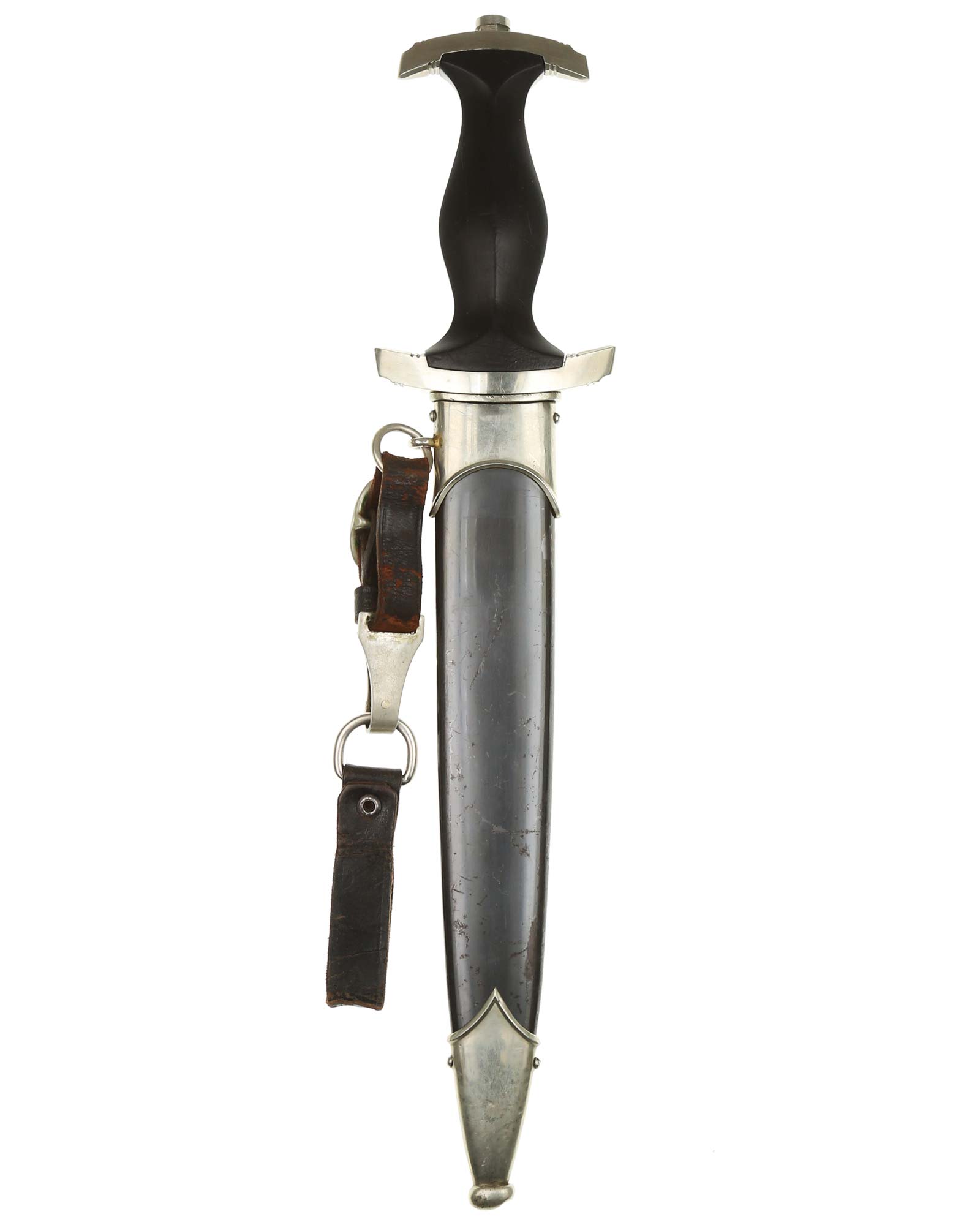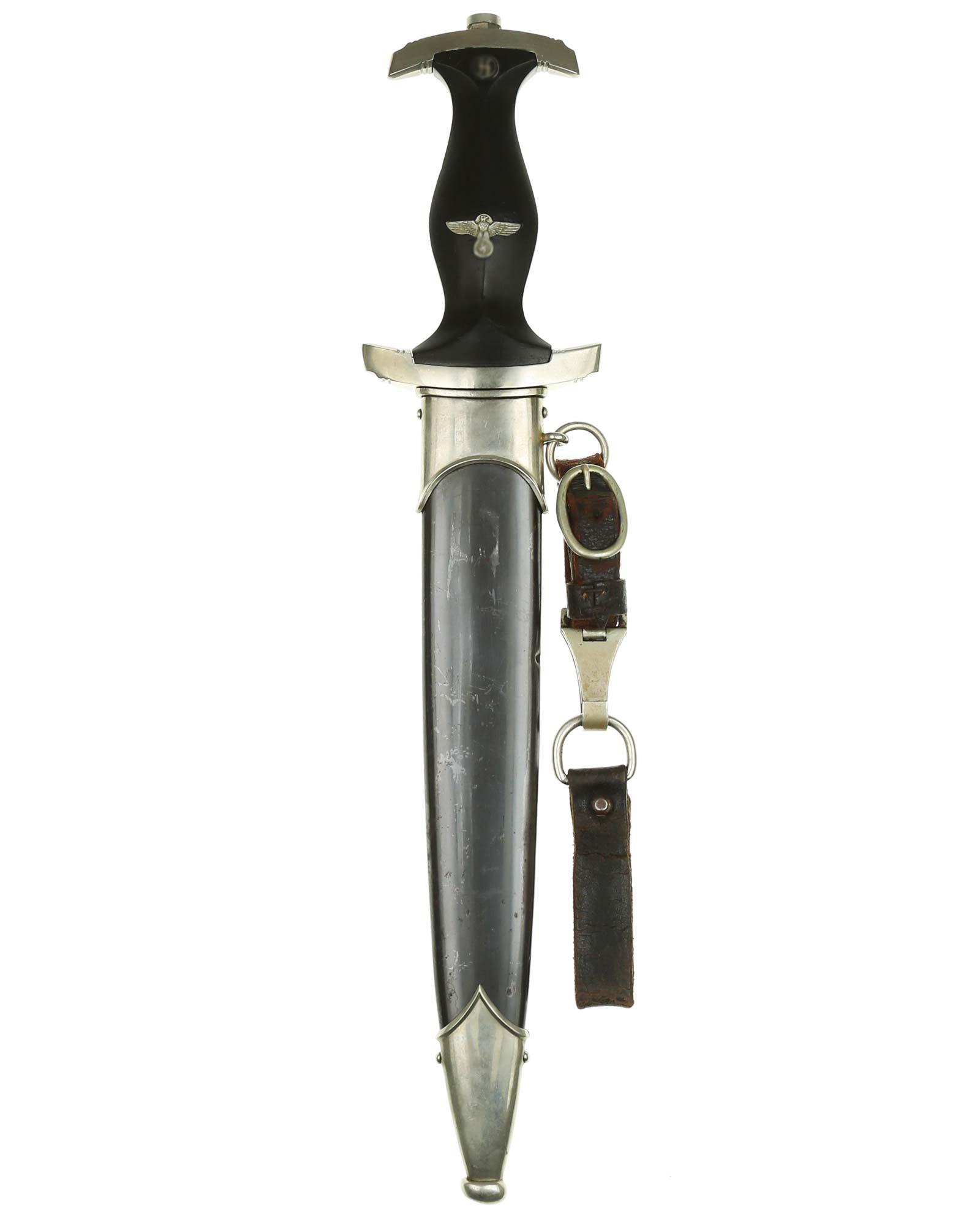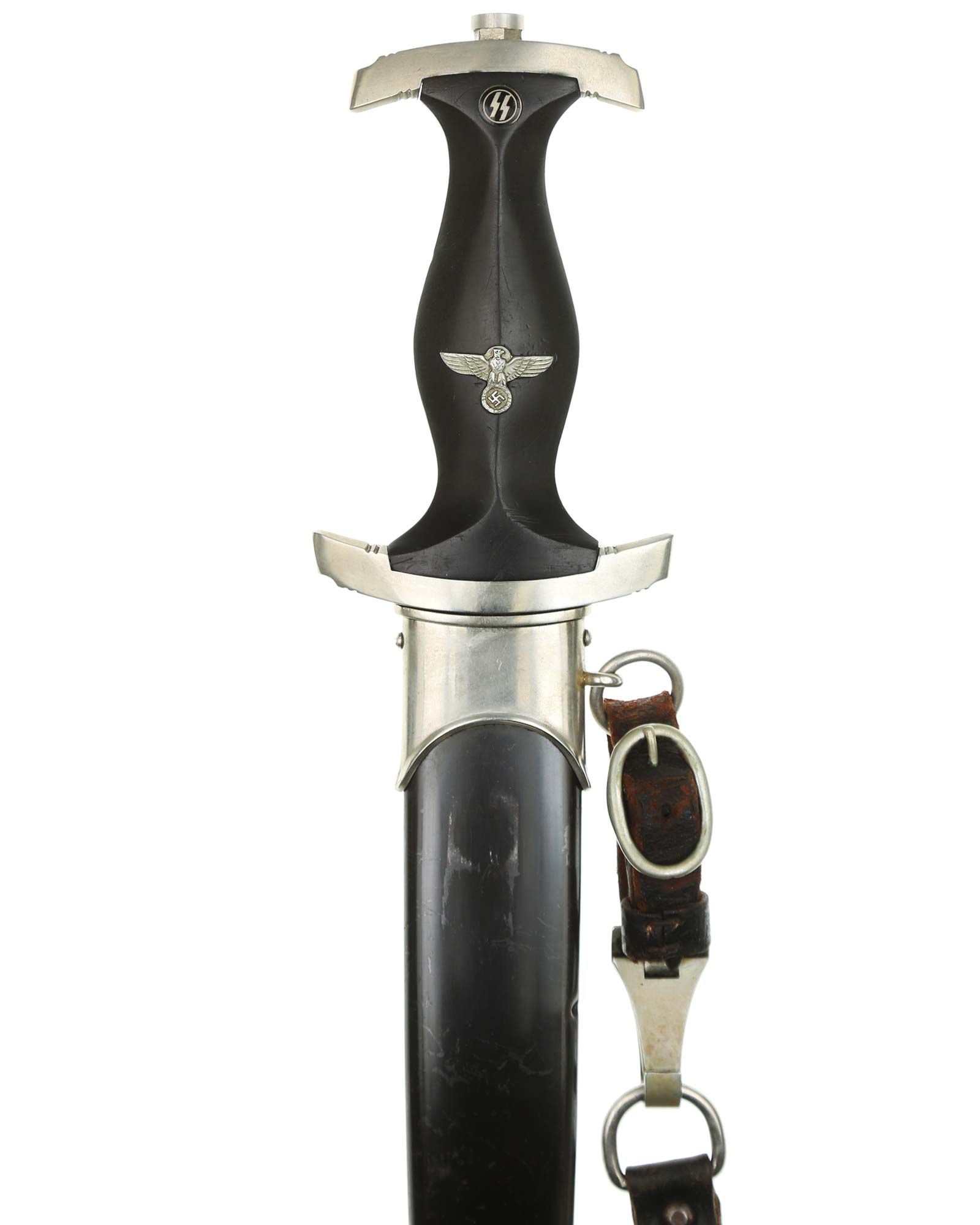 Клинок: Клинок кинжала прямой, стальной, двулезвийный, кинжального типа, с выраженным центральным ребром. На одной стороне клинка методом травления нанесен девиз СС «Meine Ehre heisst Treue !» (Моя честь называется верностью !). Клинок на оборотной стороне у основания стоит клеймо производителя Jacobs & Co. Solingen-Gräfrath (Якобс и Ко. Золинген).