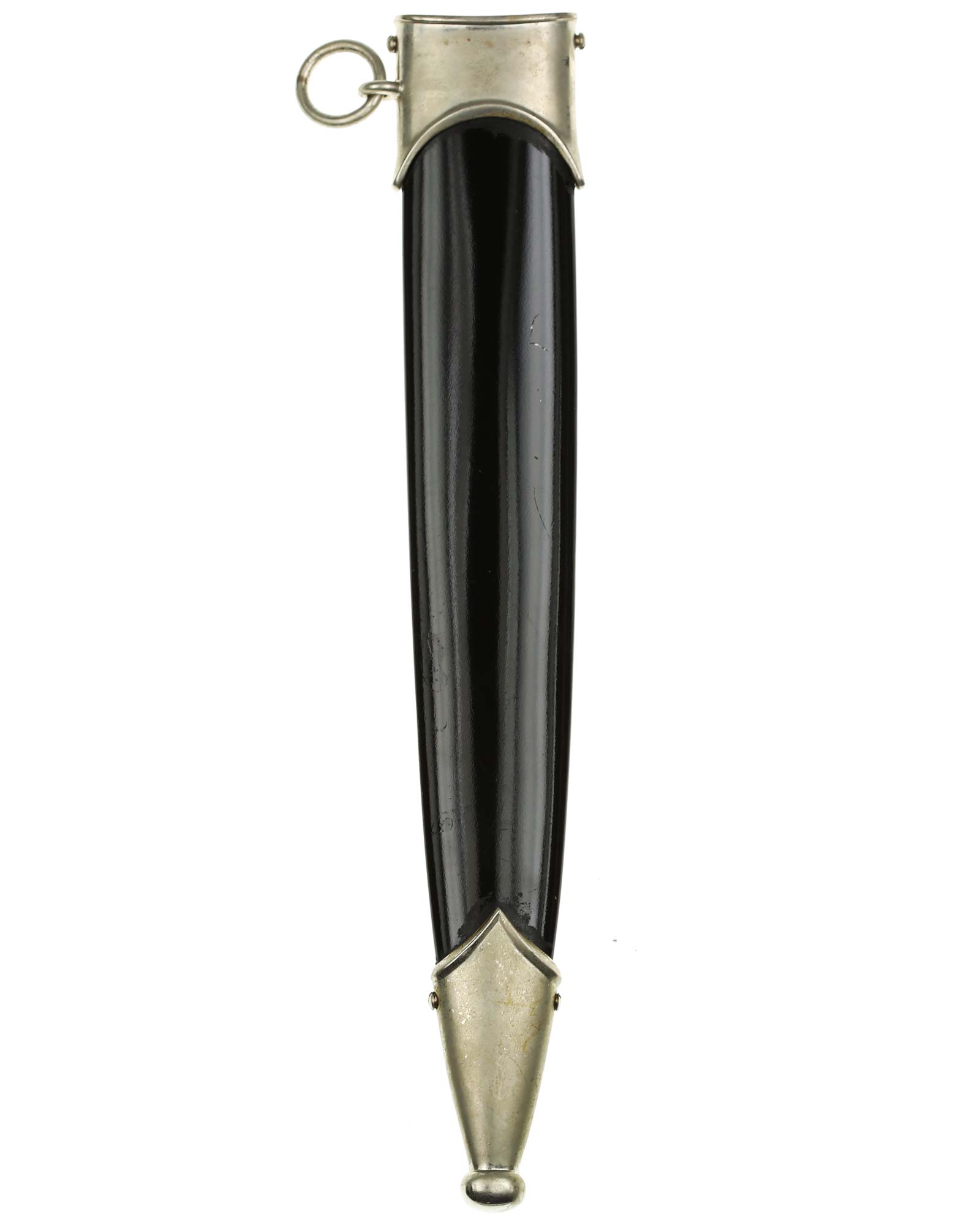 Поздний парадный кинжал СС образца 1938-1942 года. Производитель RZM M7/91 (1221/39 SS) Мальш-Шпитцер Карл, Штайнбах. Длина в ножнах 37,8 см.