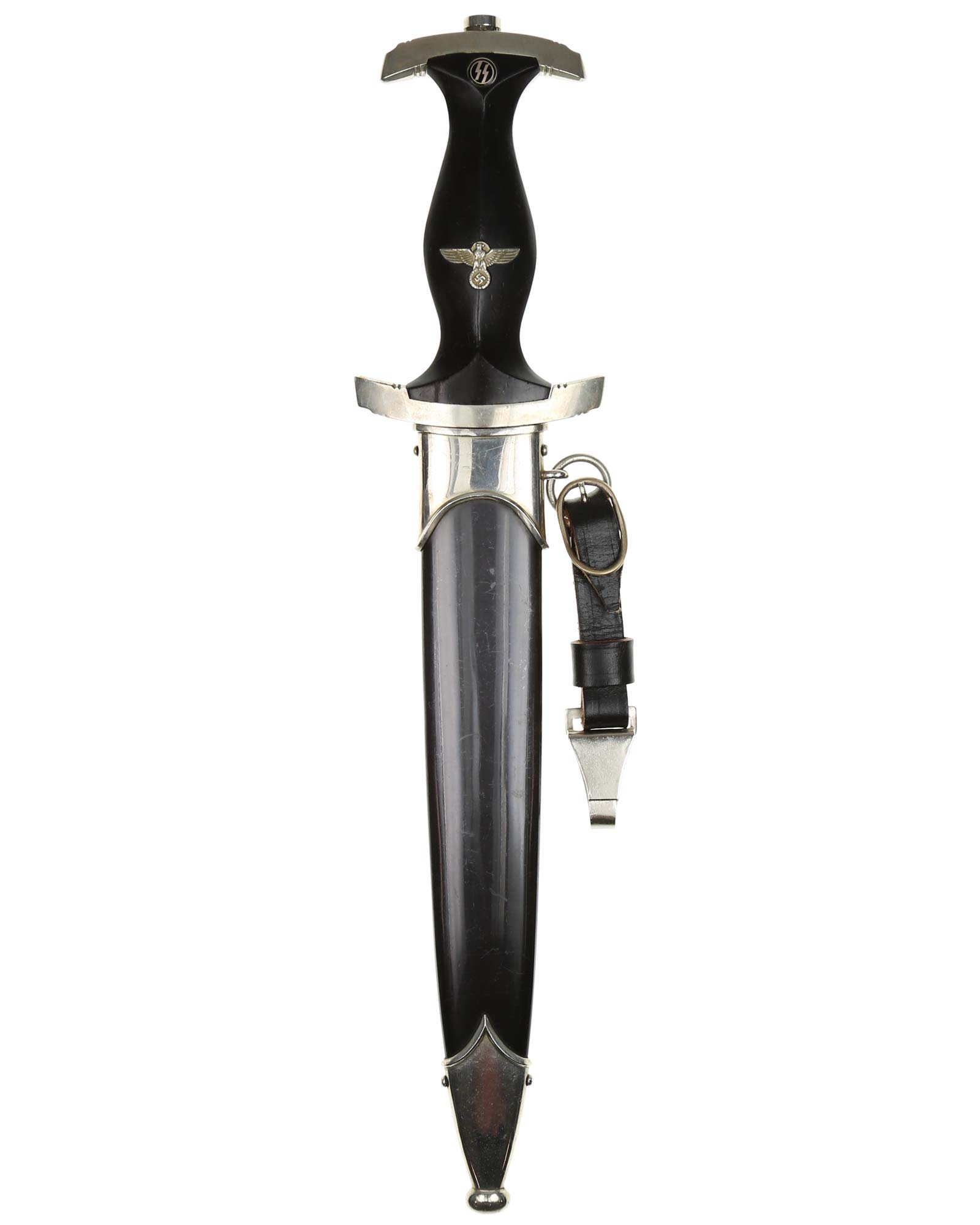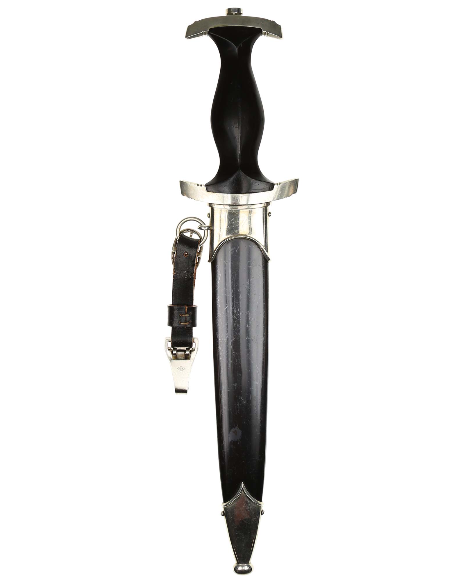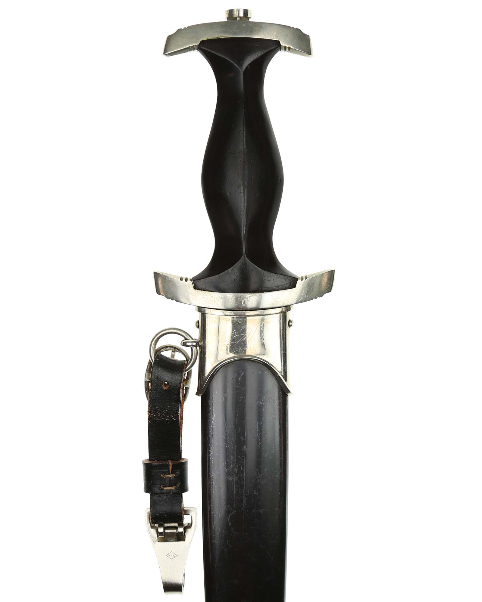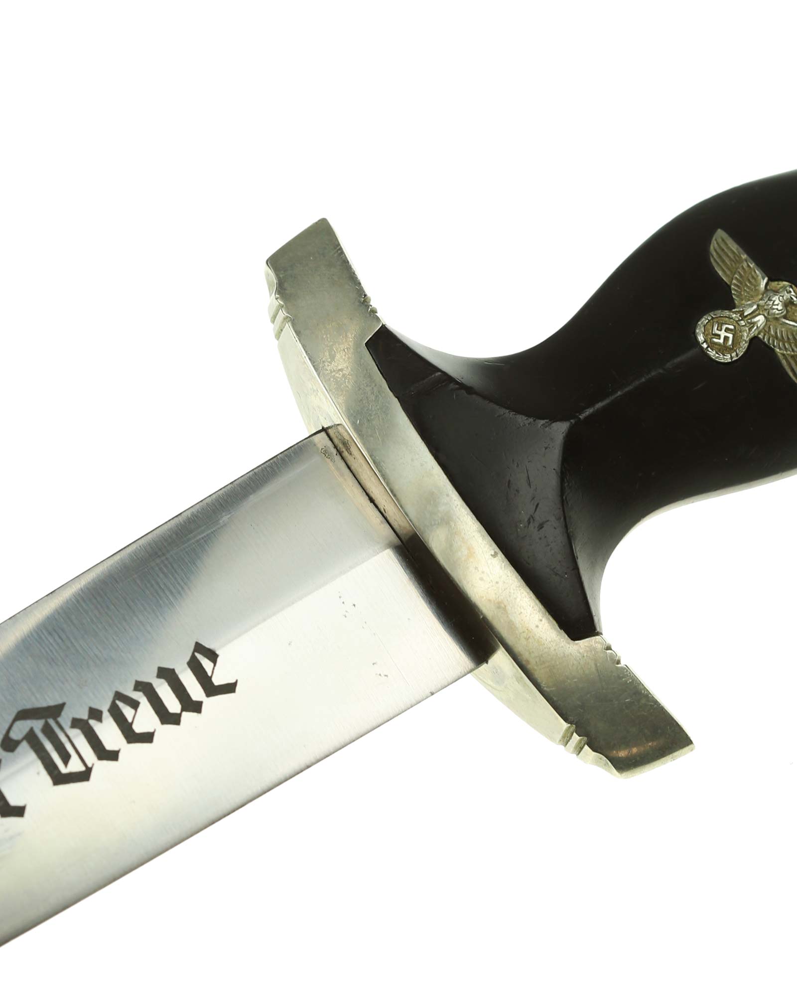 Клинок: Клинок кинжала прямой, стальной, двулезвийный, кинжального типа, с выраженным центральным ребром. На одной стороне клинка методом травления нанесен девиз СС «Meine Ehre heisst Treue» (Моя честь называется верностью). Клинок на оборотной стороне у основания стоит клеймо производителя Robert Klaas Solingen (Клаас Роберт Золинген).