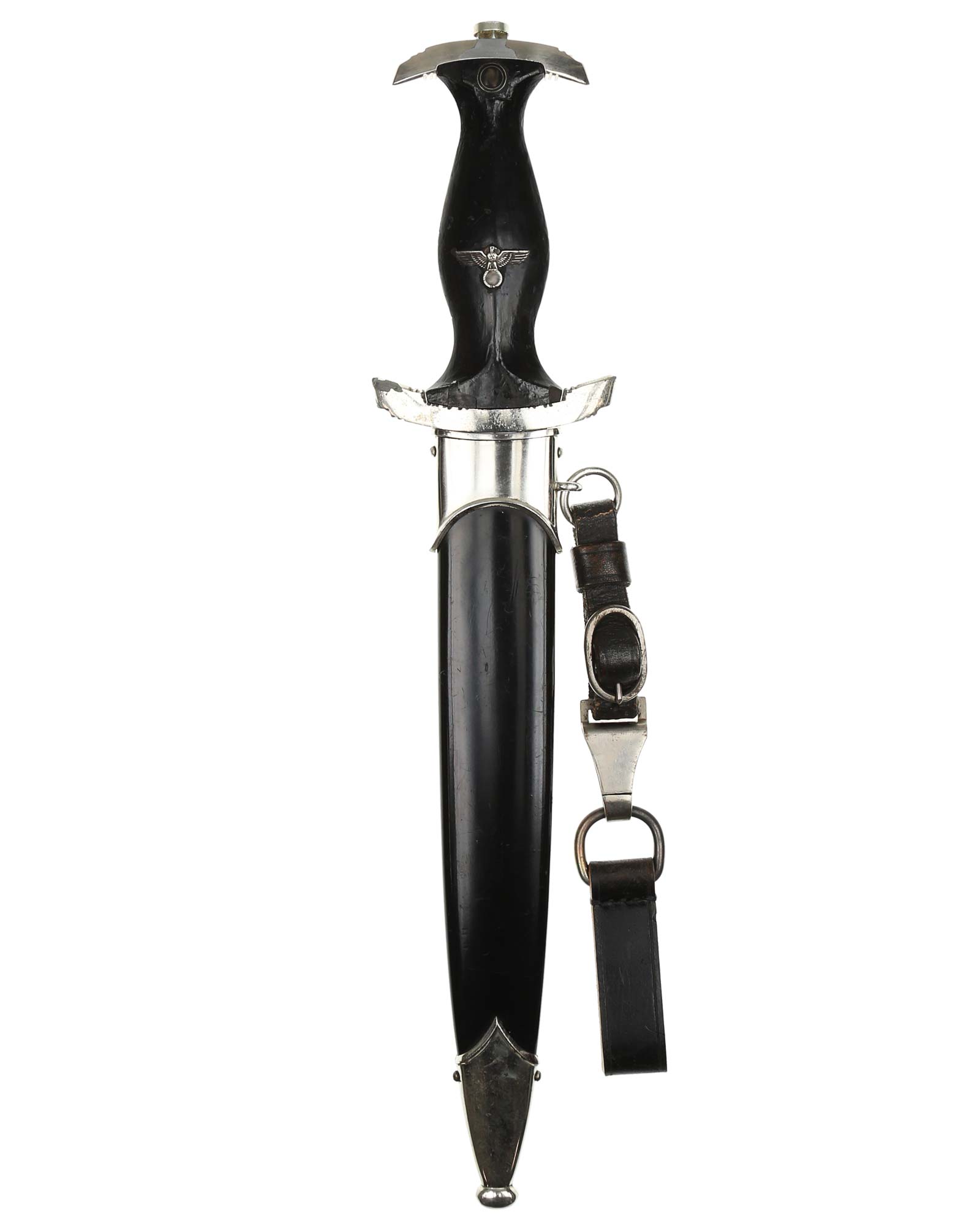 Клинок: Клинок кинжала прямой, стальной, двулезвийный, кинжального типа, с выраженным центральным ребром. На одной стороне клинка методом травления нанесен девиз СС «Meine Ehre heisst Treue» (Моя честь называется верностью). Клинок на оборотной стороне у основания стоит клеймо с кодом RZM 941/38 SS.