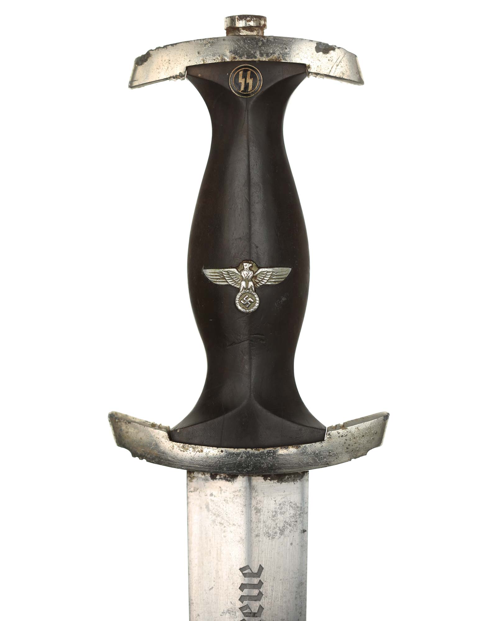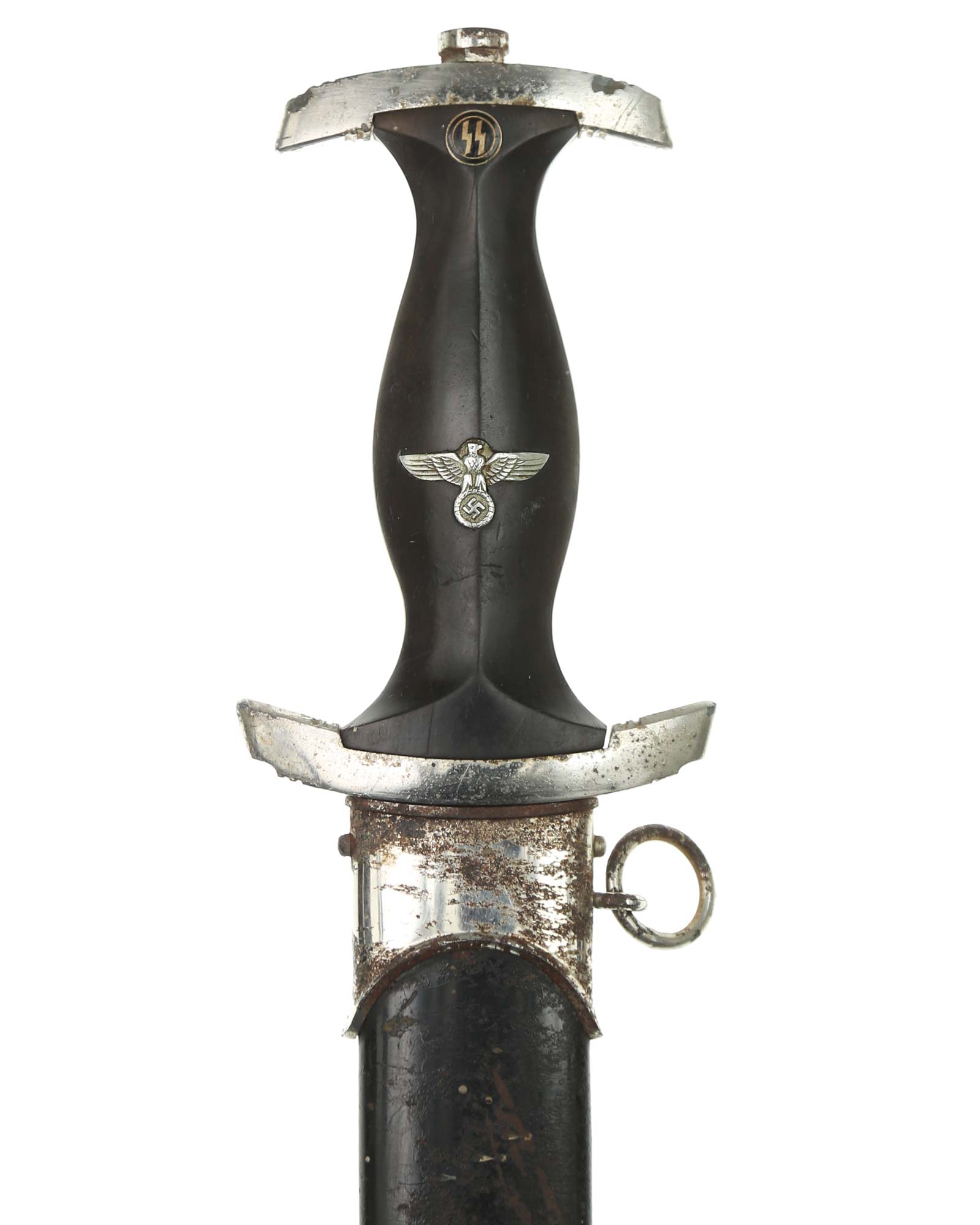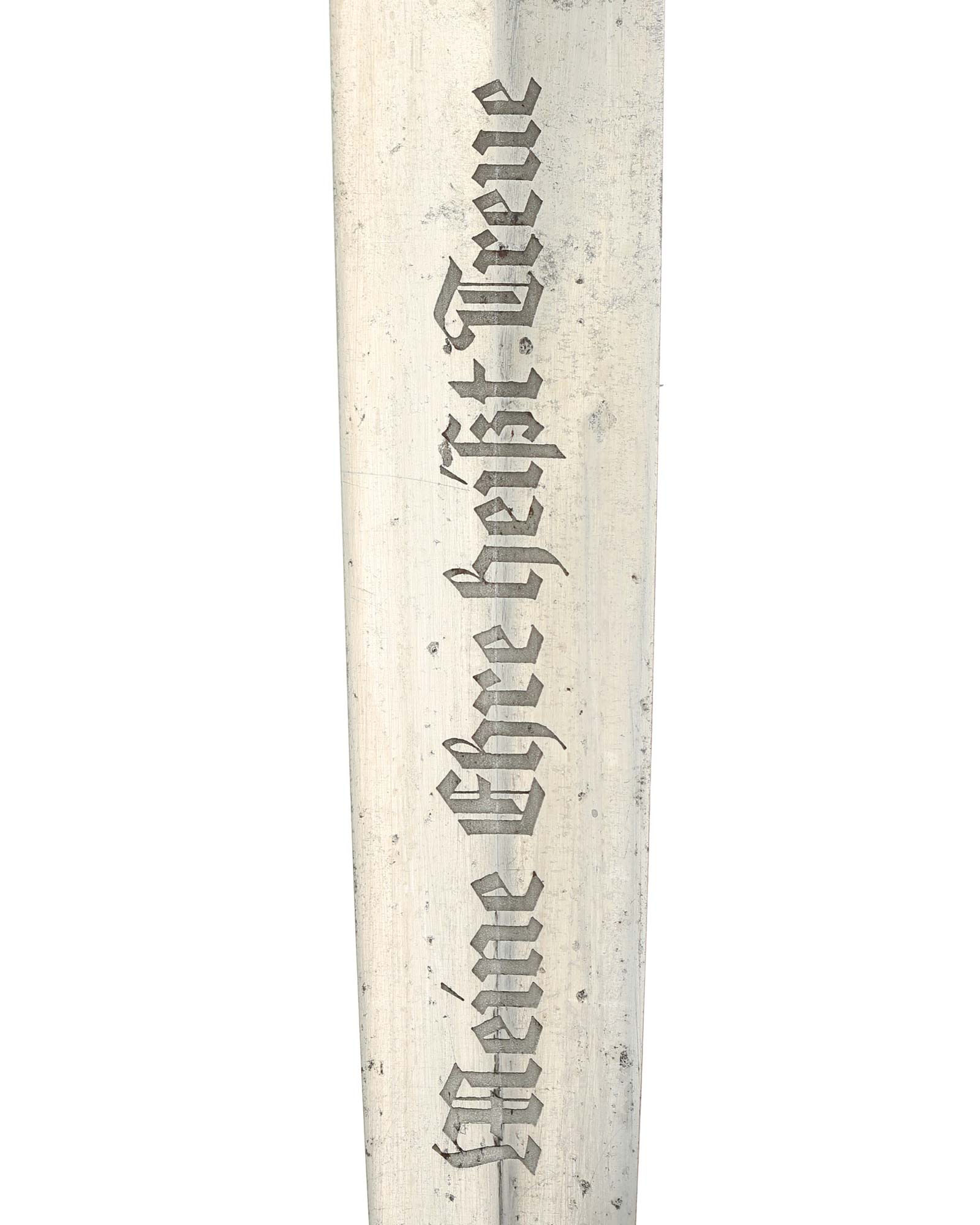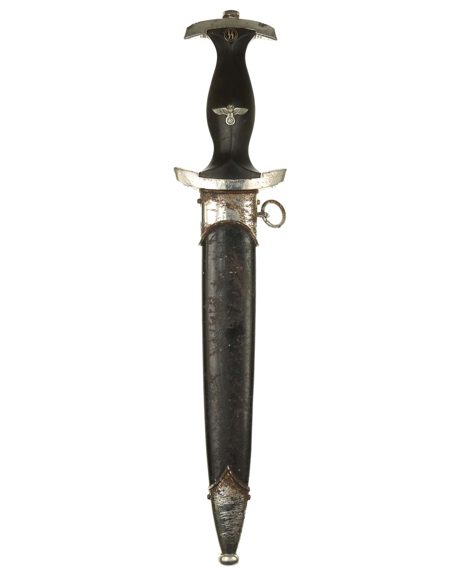Клинок: Клинок кинжала прямой, стальной, двулезвийный, кинжального типа, с выраженным центральным ребром. На одной стороне клинка методом травления нанесен девиз СС «Meine Ehre heisst Treue» (Моя честь называется верностью). Клинок на оборотной стороне у основания стоит клеймо производителя RZM 1198/39 SS (F.W. Höller Solingen).
