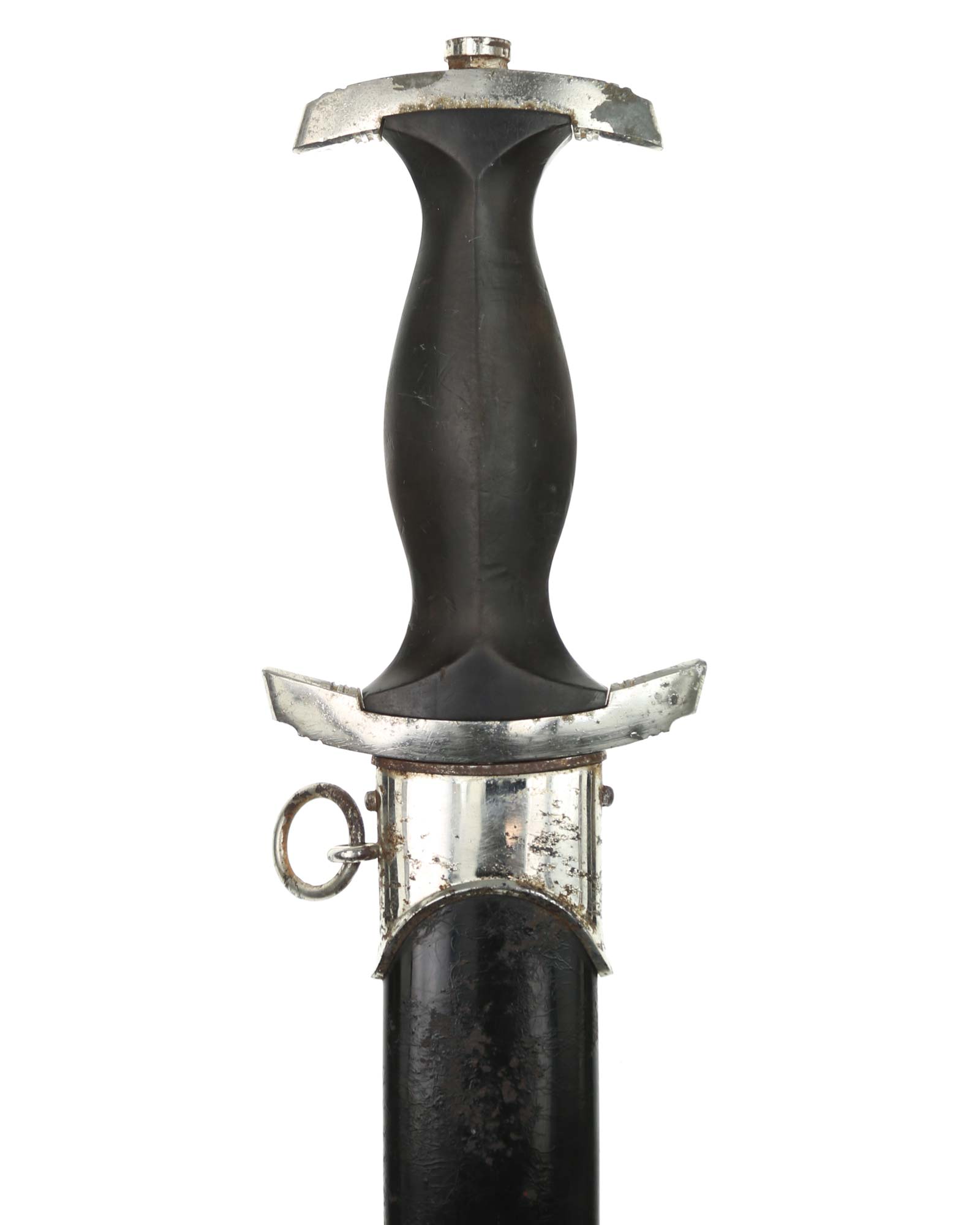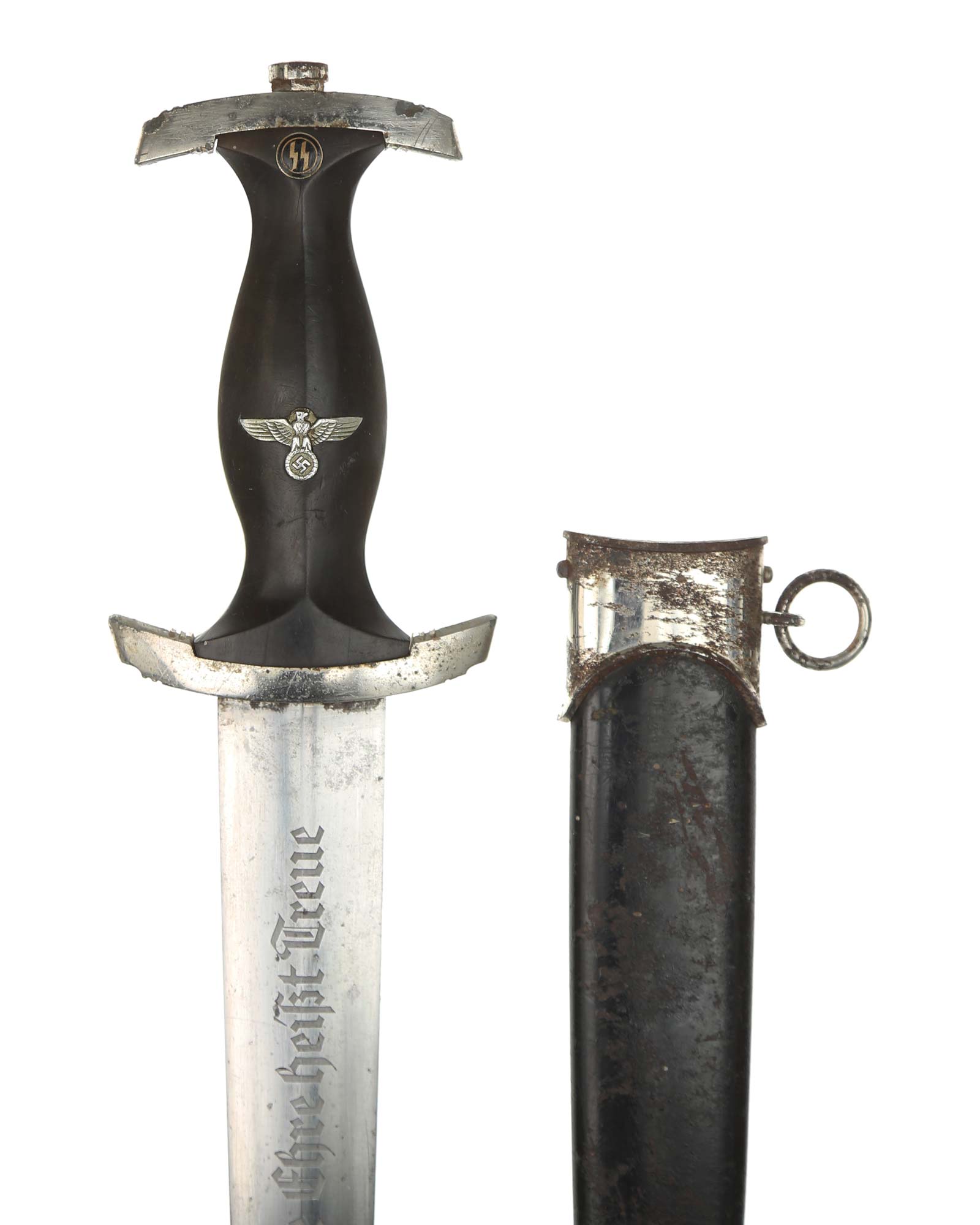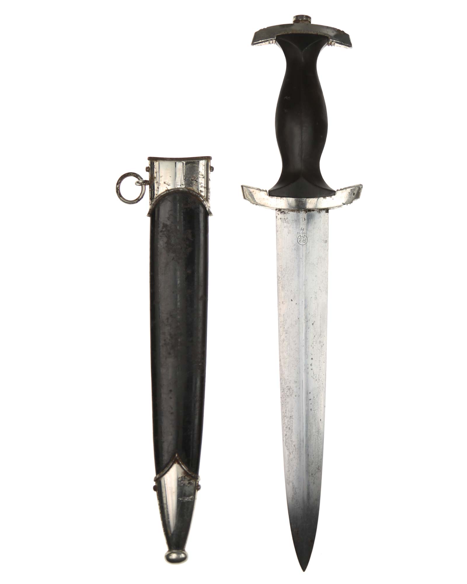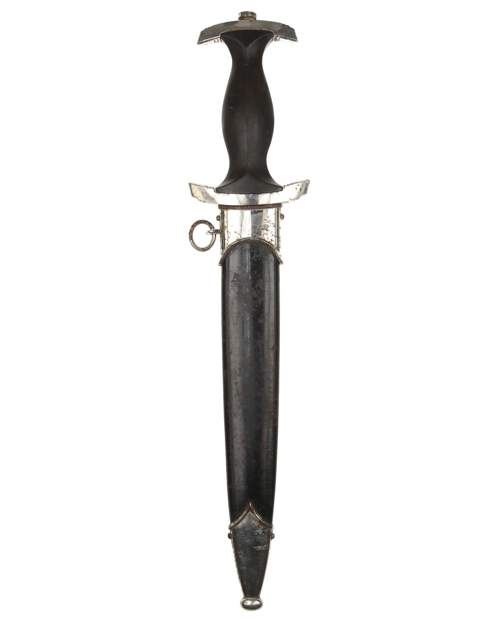 Клинок: Клинок кинжала прямой, стальной, двулезвийный, кинжального типа, с выраженным центральным ребром. На одной стороне клинка методом травления нанесен девиз СС «Meine Ehre heisst Treue» (Моя честь называется верностью). Клинок на оборотной стороне у основания стоит клеймо производителя RZM 1198/39 SS (F.W. Höller Solingen).