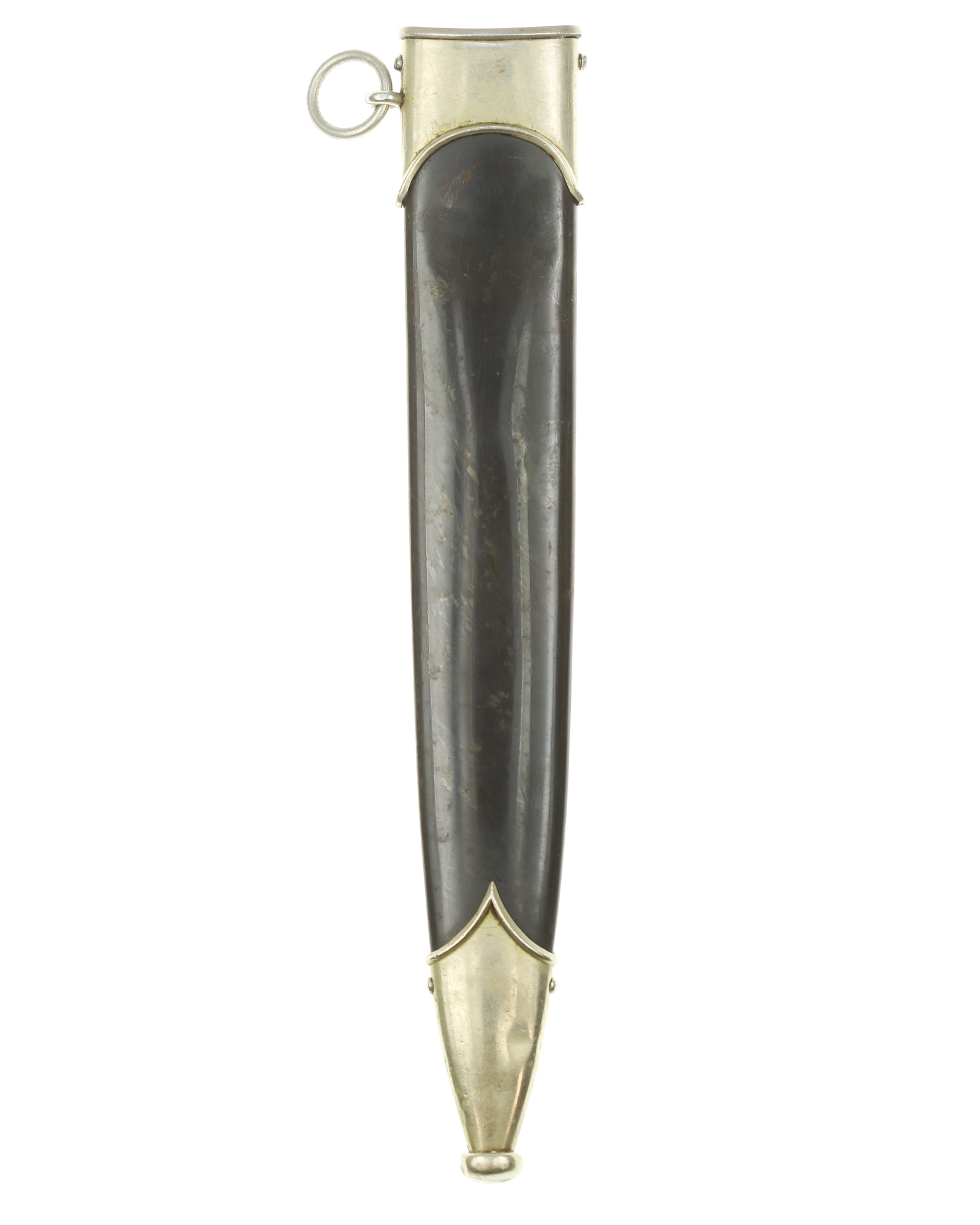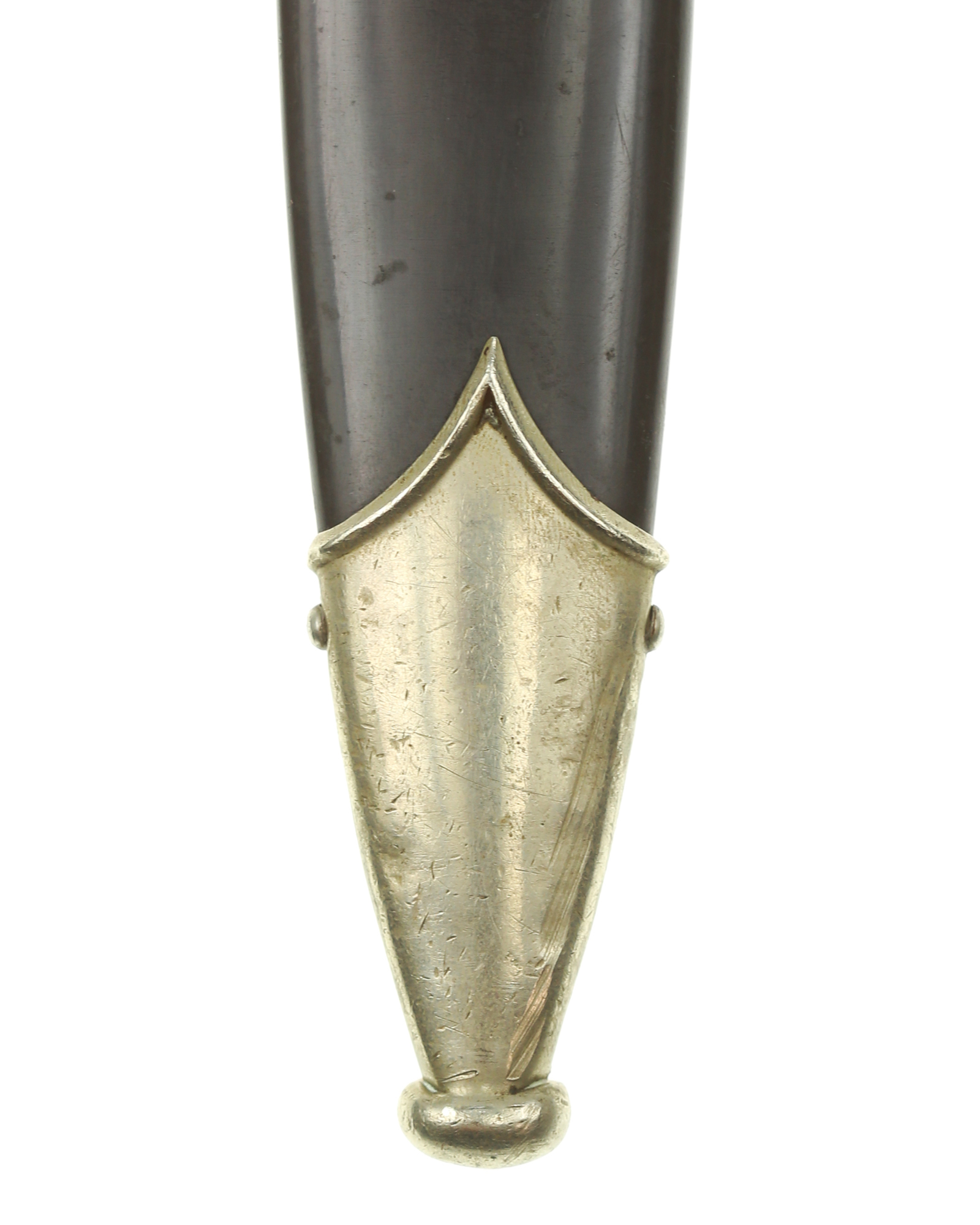 Рукоять: Металлические элементы гарды мельхиоровые, вмонтированный в рукоять орел также изготовлен из мельхиора, что свидетельствует о раннем выпуске кинжала. Рукоять изготовлена из мореного в черный цвет дерева. На нижнем крестовине выбит номер «III» [Берлин].