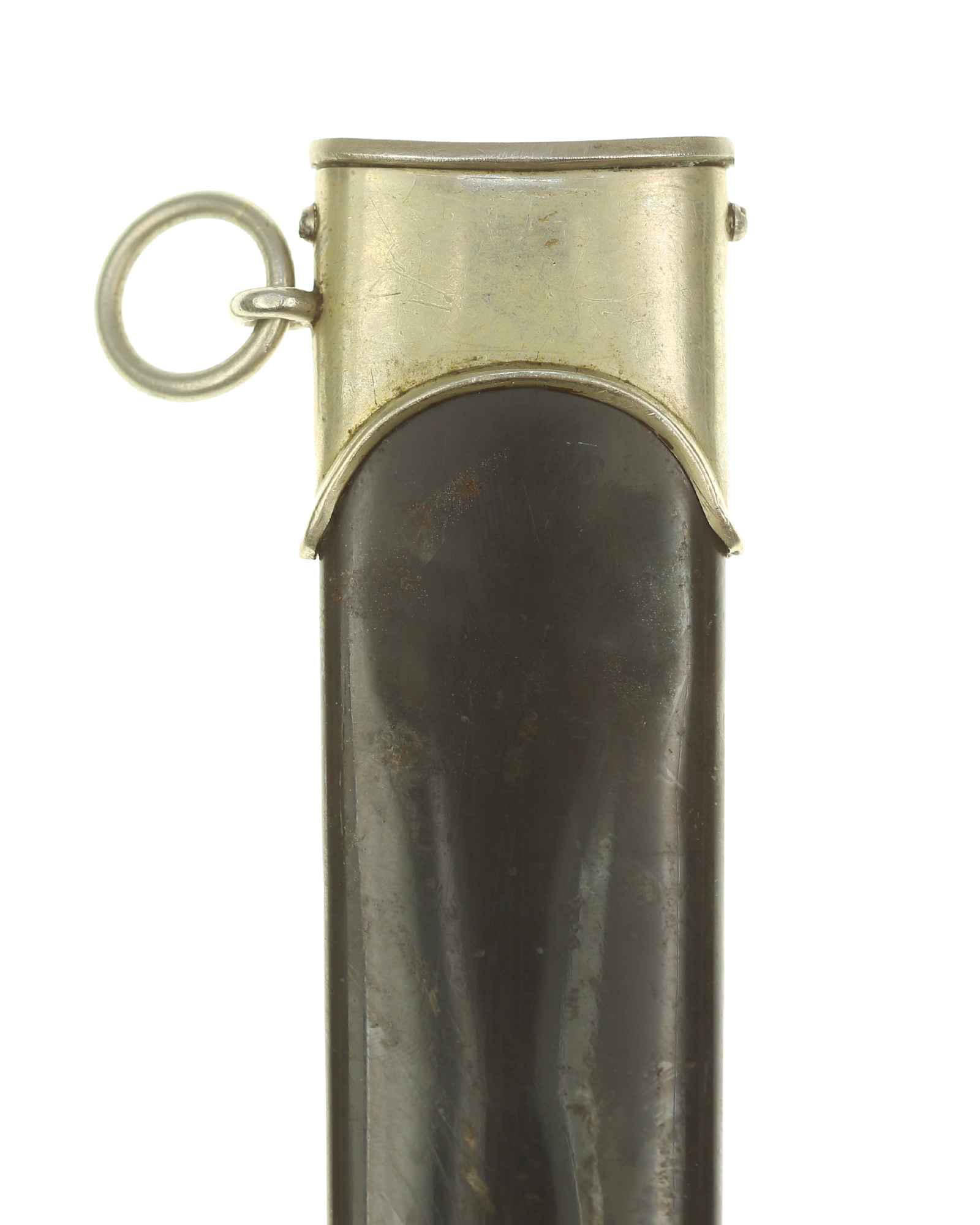 Ножны: Ножны металлические. Черные вороненные ножны с посеребренным прибором и одним подвижным кольцом для крепления к подвесу.